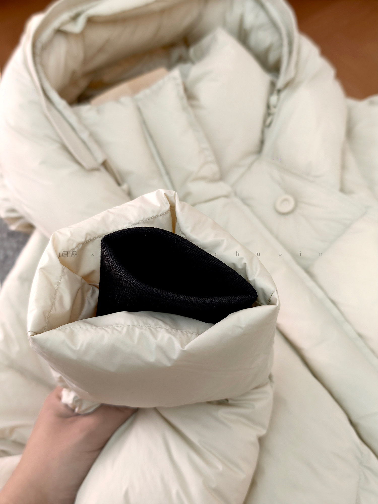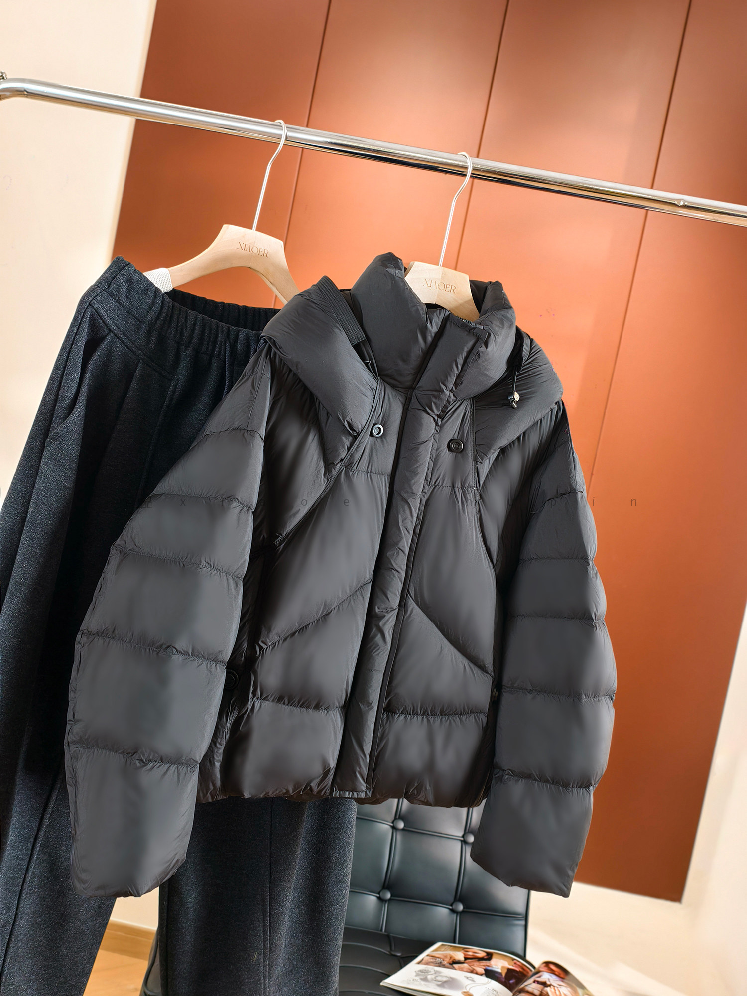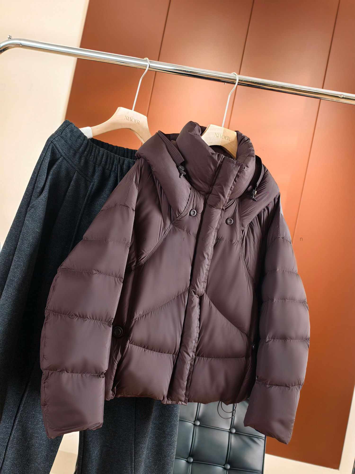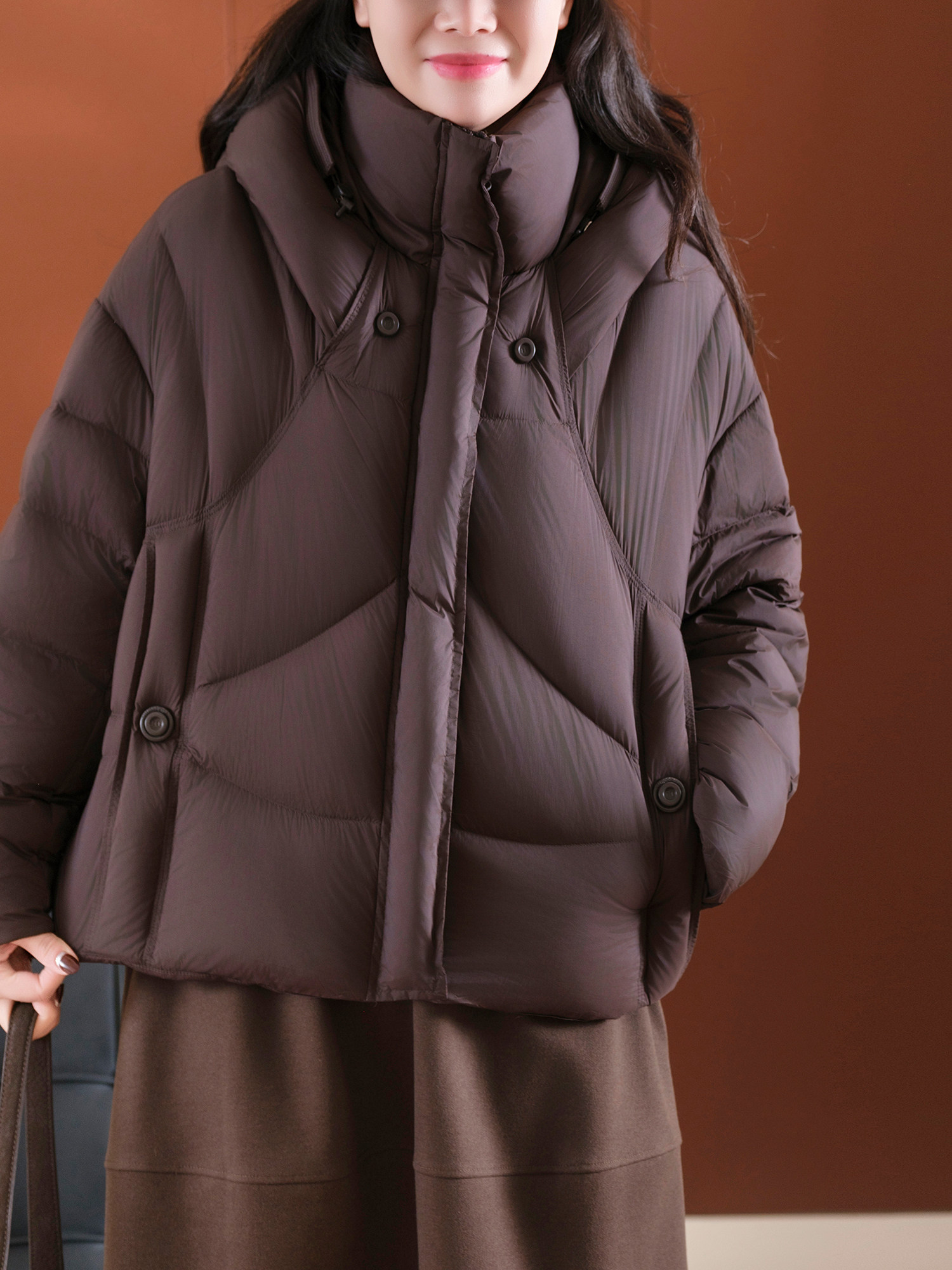 Produced by Xiaoer, fluffy and full! New national standard 90 duck down/cut and split/round button stand collar hooded down jacket