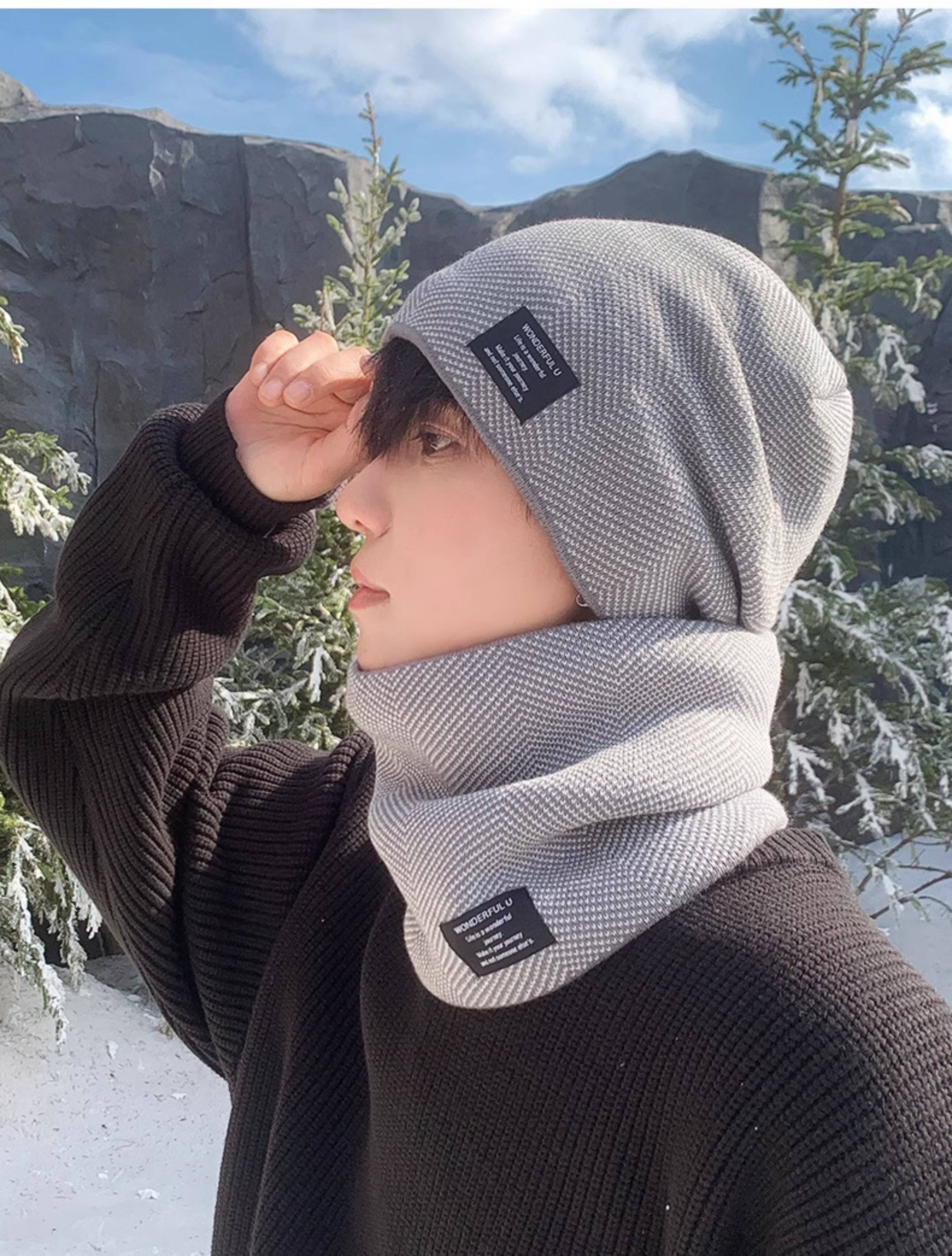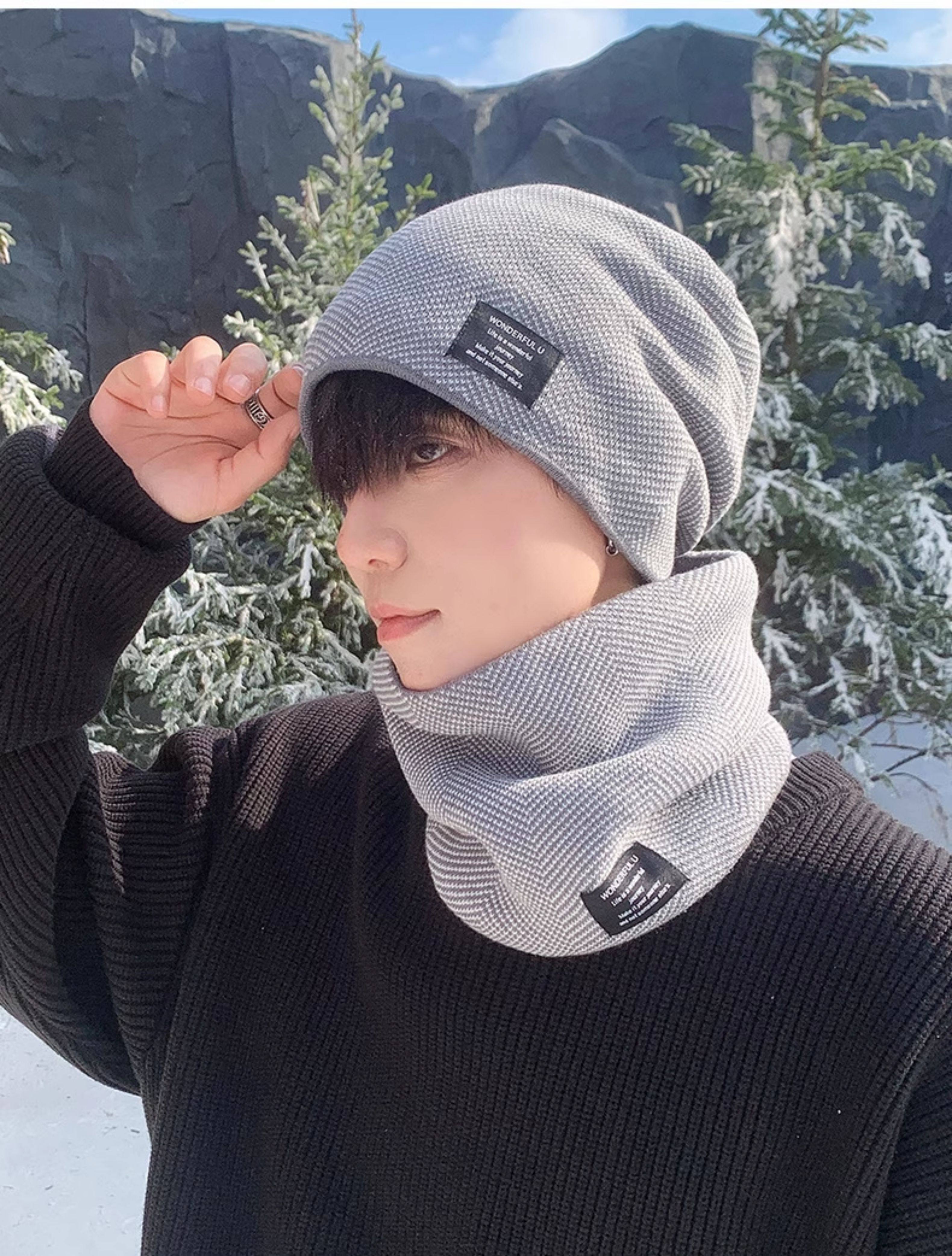 Fleece-Lined Knitted Wool Hat 2025 New Winter Outdoor Pullover Korean Style Windproof Thickened Men's Hat and Scarf Set