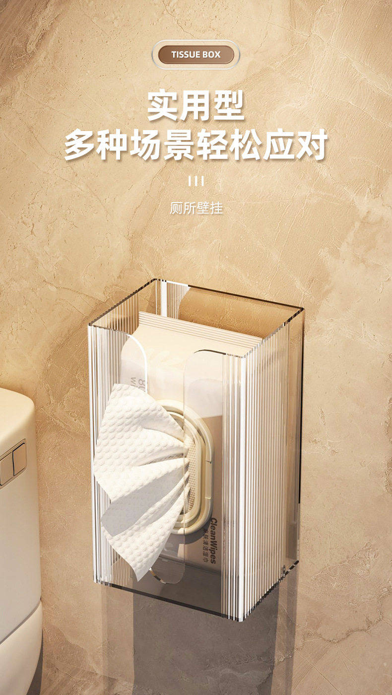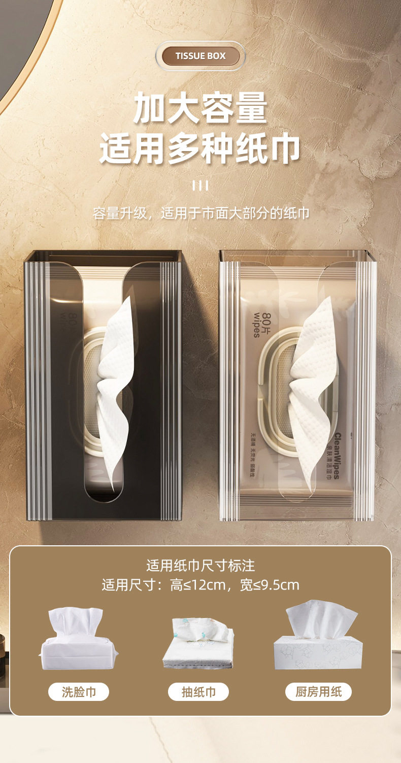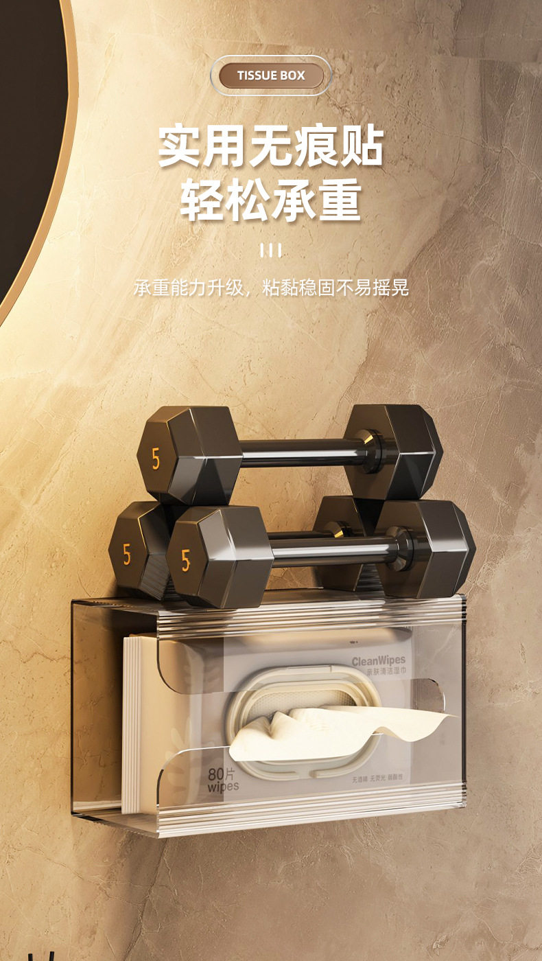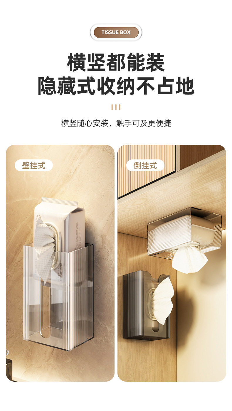 Tissue box wall-mounted facial tissue washing towel storage box toilet bathroom kitchen upside-mounted paper box without hole punching