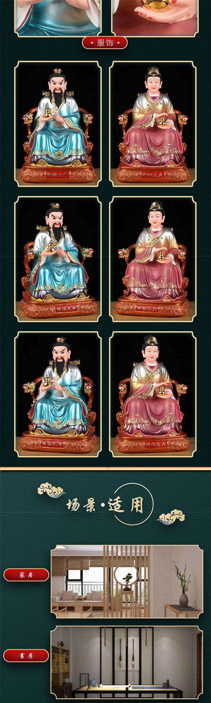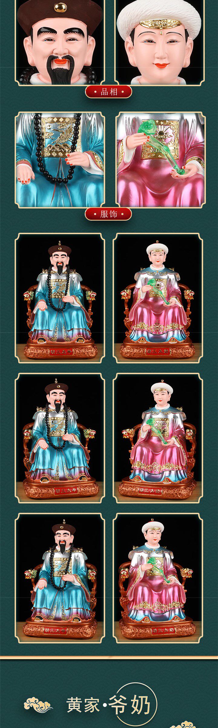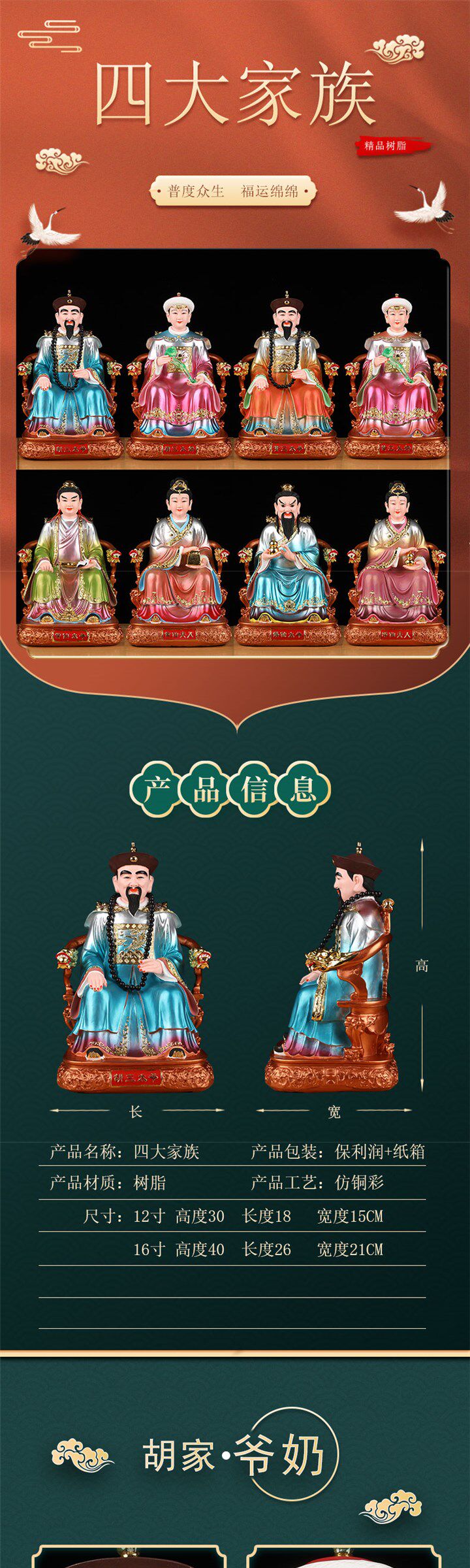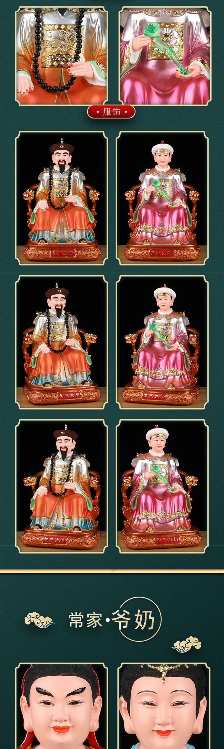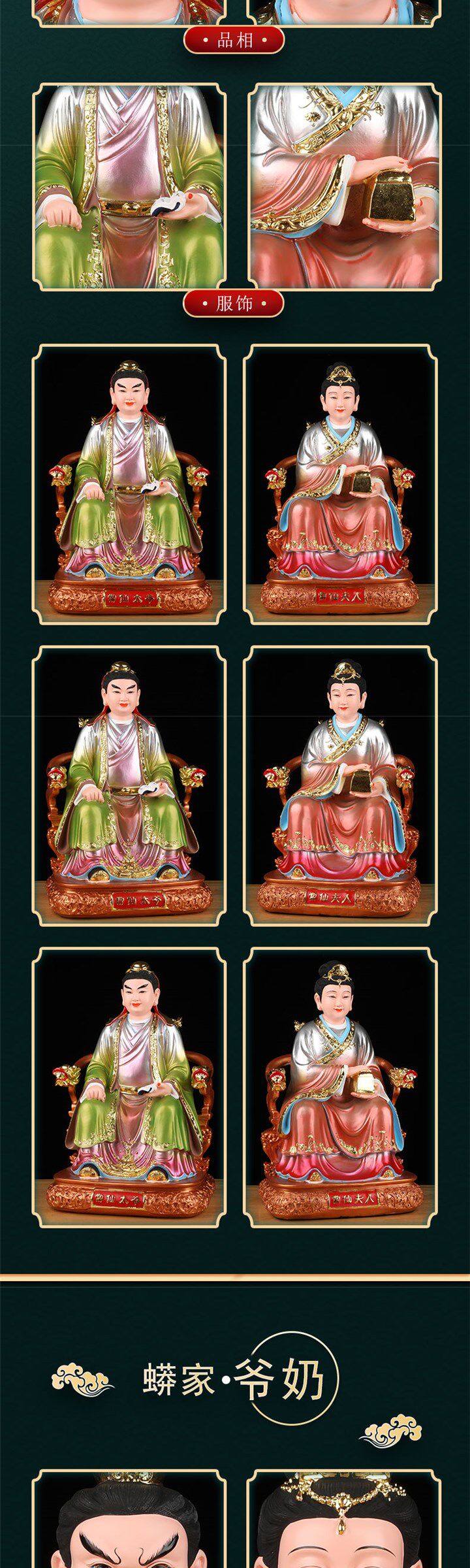 Popular Copper-Colored Statues of the Three Grandmasters and Three Grandmothers, Realistic Statues of the Four Great Families, and Divine Statues for Worship