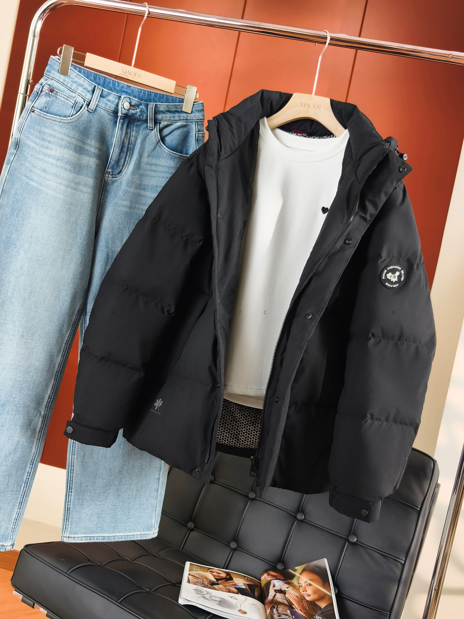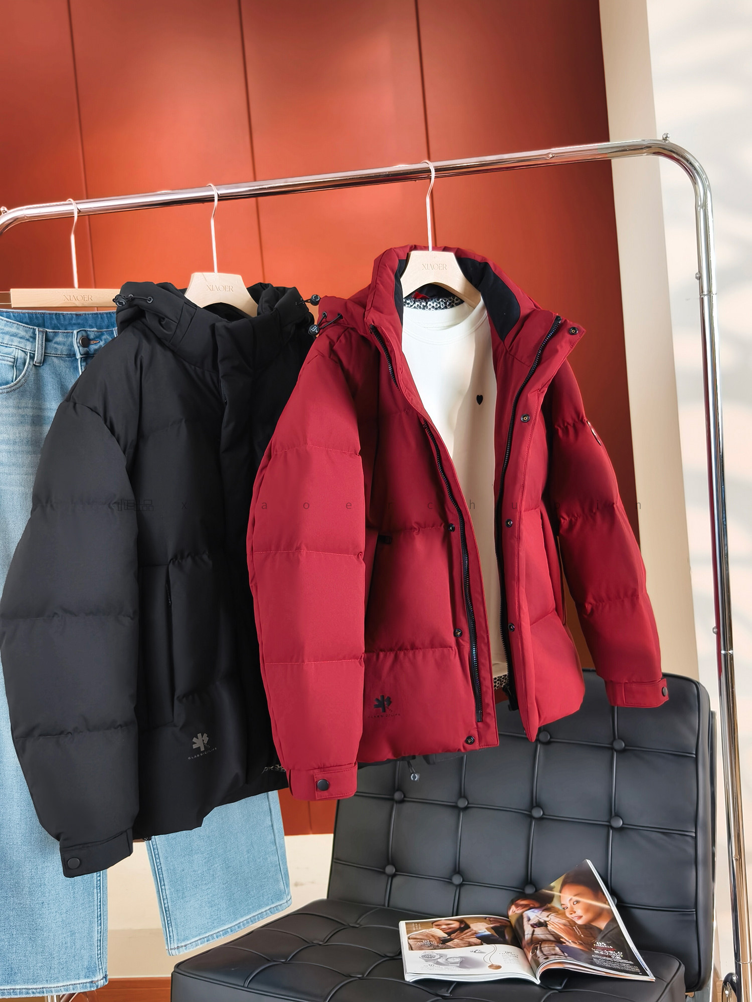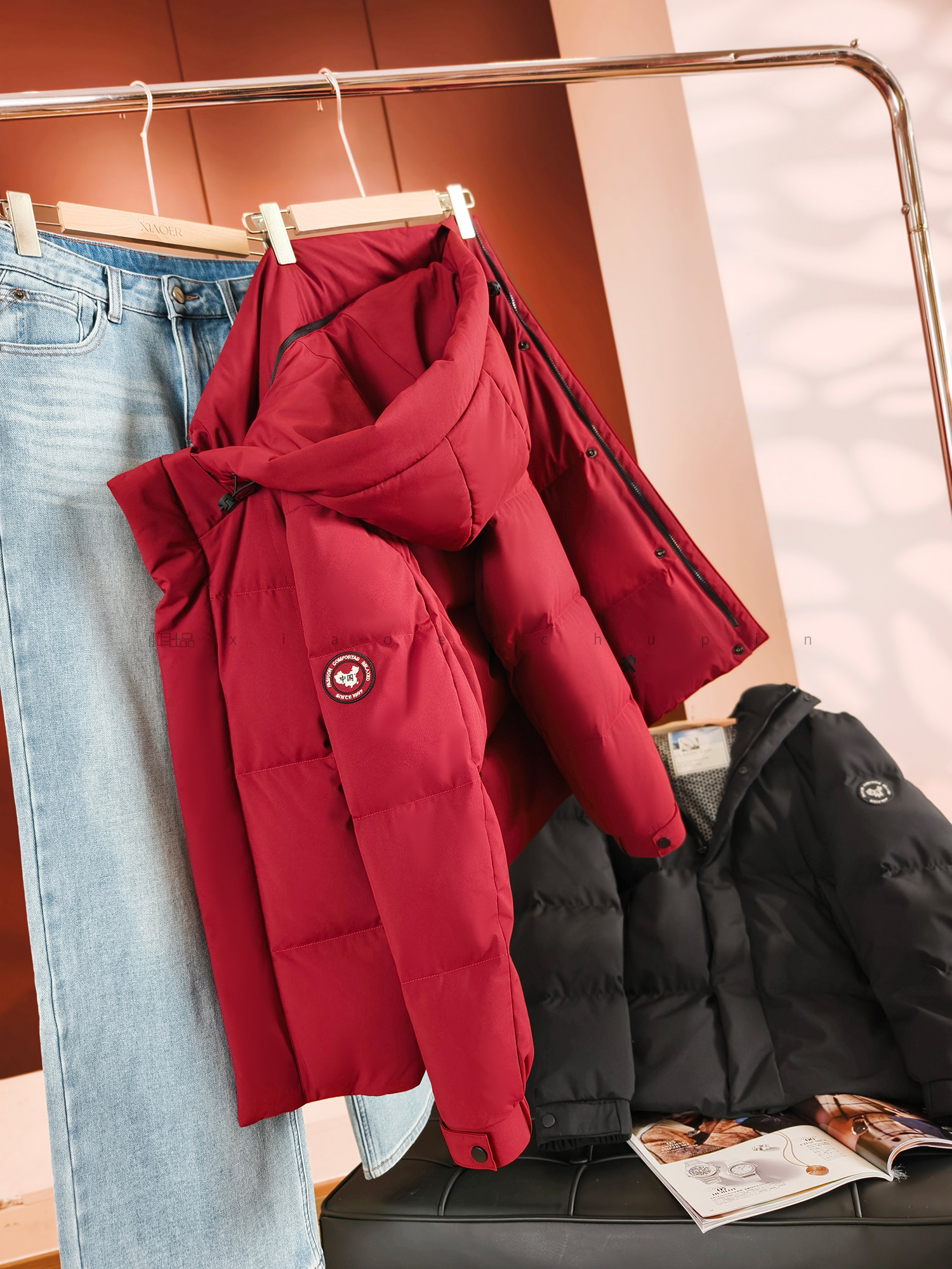 Produced by Xiaoer, brick cabinet quality! Men’s and women’s models! Thick and windproof! 90 duck down hooded zipper down jacket