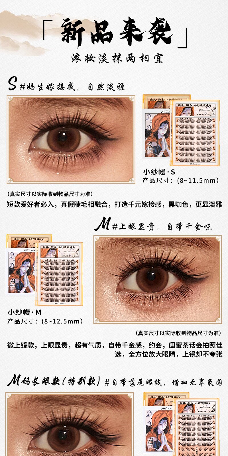 False eyelash style Glue type small gauze curtain S (48 clusters),Glue type small gauze curtain M (48 clusters),Glue type small gauze curtain M long eyes 4 clusters (48 clusters),Glue type small gauze curtain L (48 clusters)
