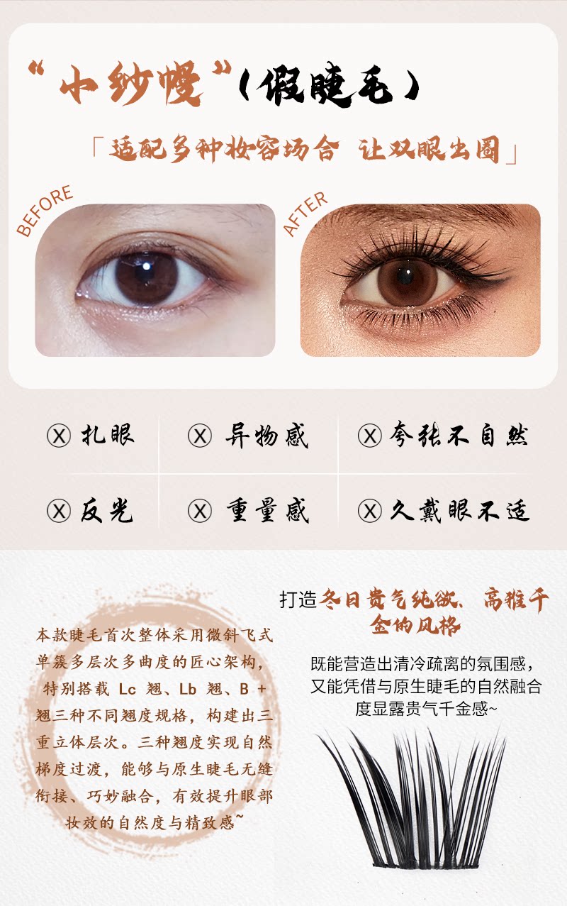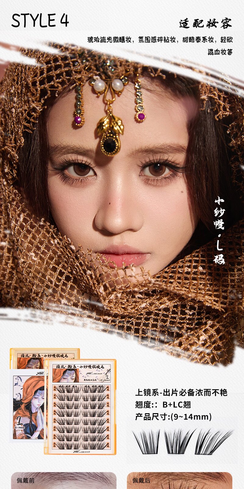 YOLO shakes up a summer small gauze curtain false eyelashes new product Chinese style pony series grafting dense single cluster simulation segmented YYX
