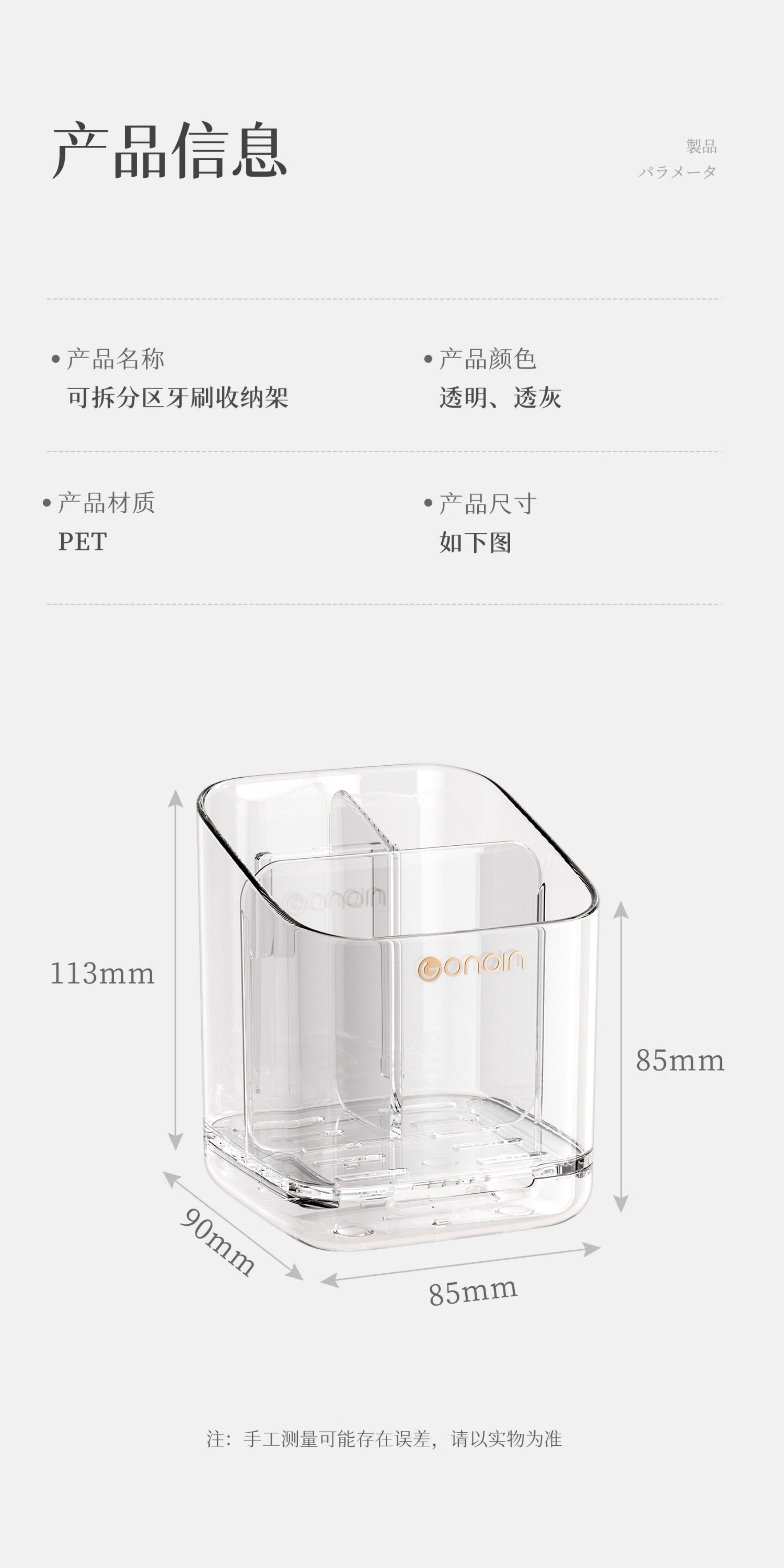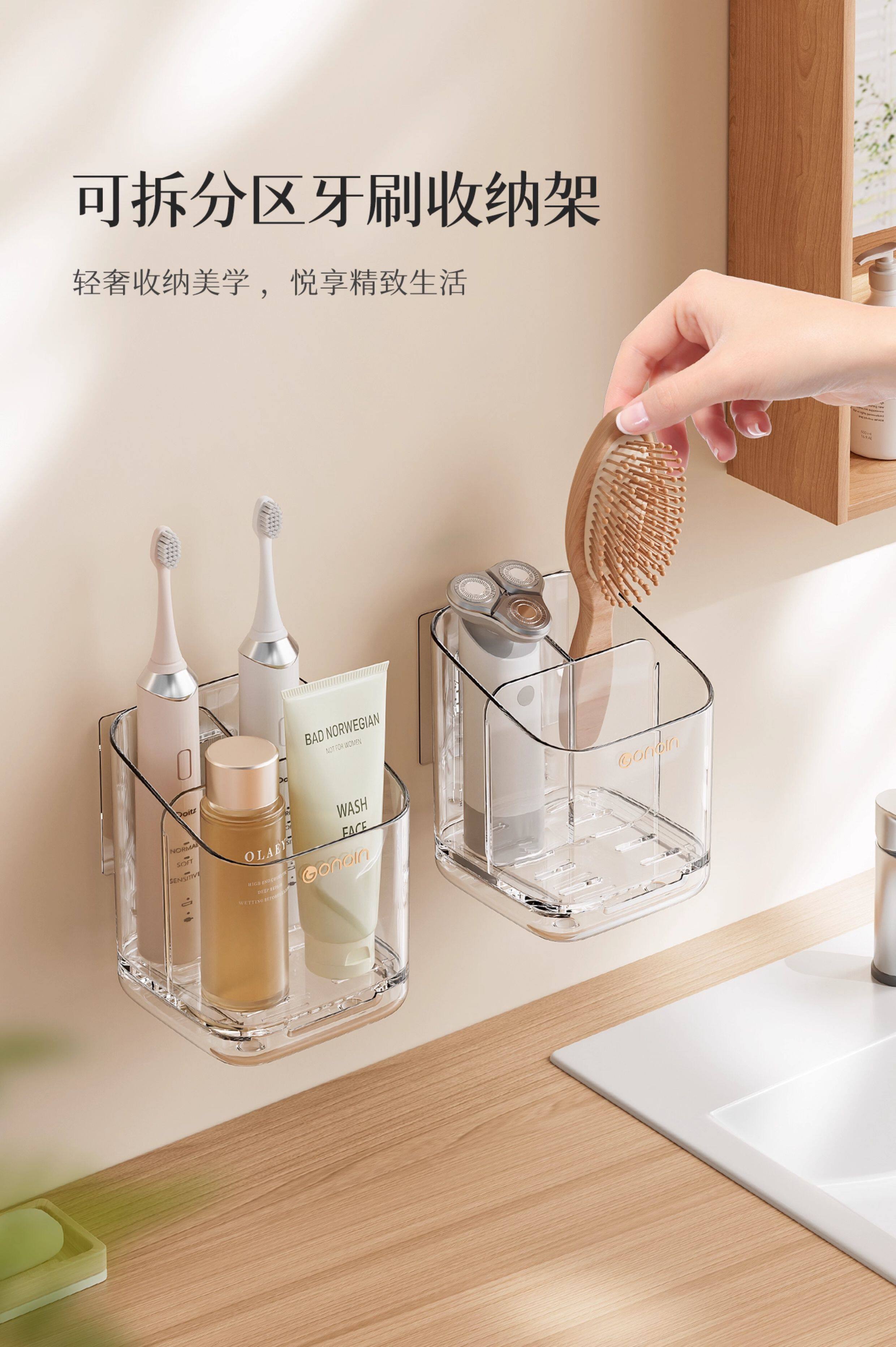 Sort by color Transparent compartment toothbrush storage rack (1 piece),Transparent gray partitioned toothbrush storage rack (1 piece),Transparent compartment toothbrush storage rack (2 pieces),Transparent gray partitioned toothbrush storage rack (2 pieces),Mixed pack of divided toothbrush storage racks (pack of 2)