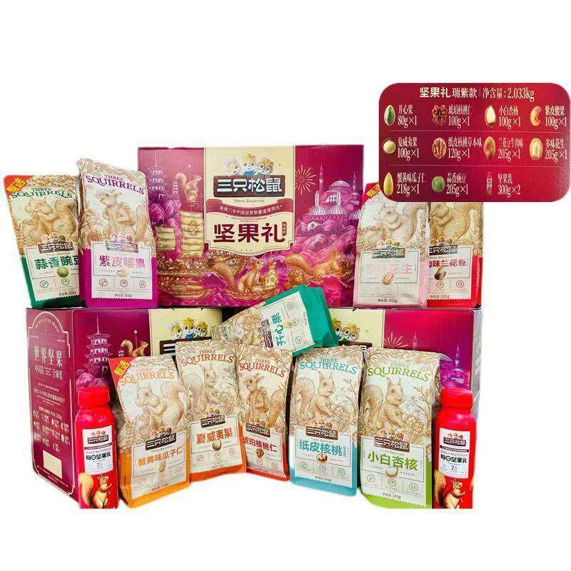 Three Squirrels Daily Nuts 750g 30 Packs Whole Box Mixed Healthy Snacks for Pregnant Women Gift Box 4+4 Ready-To-Eat