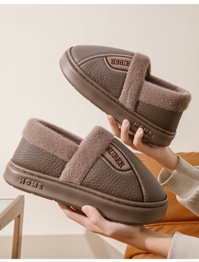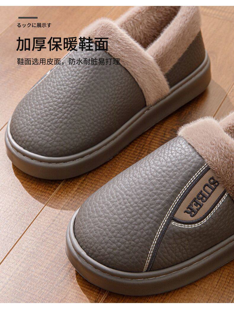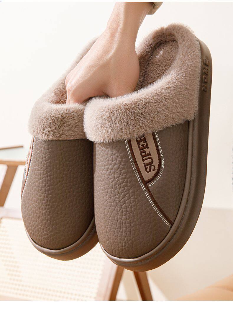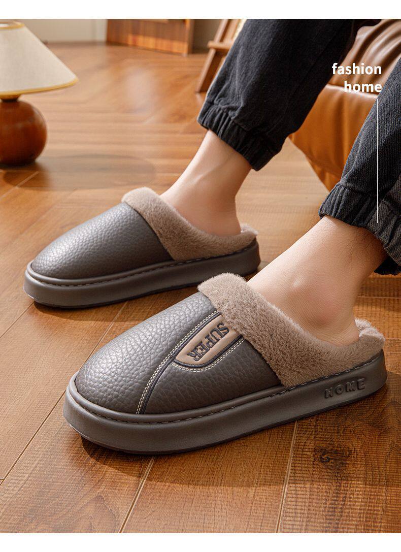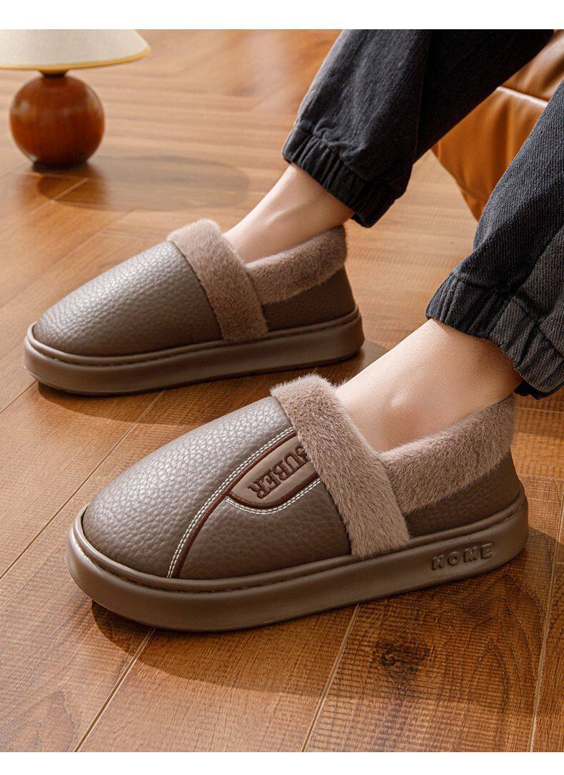 2025 New Model Men's and Women's Winter Waterproof Leather Slippers, Fleece-Lined and Thickened, for Home Use, Indoor Non-Slip, Warm, Suitable for Outdoor Wear in Winter