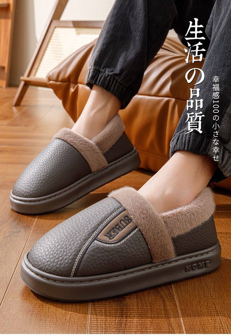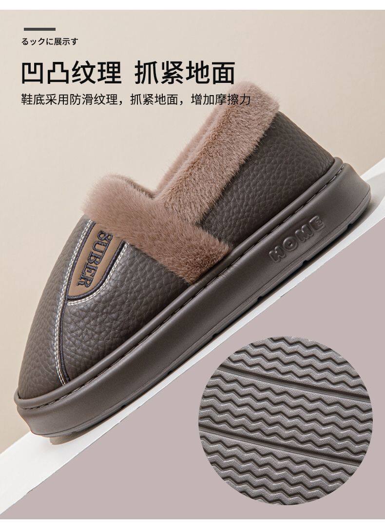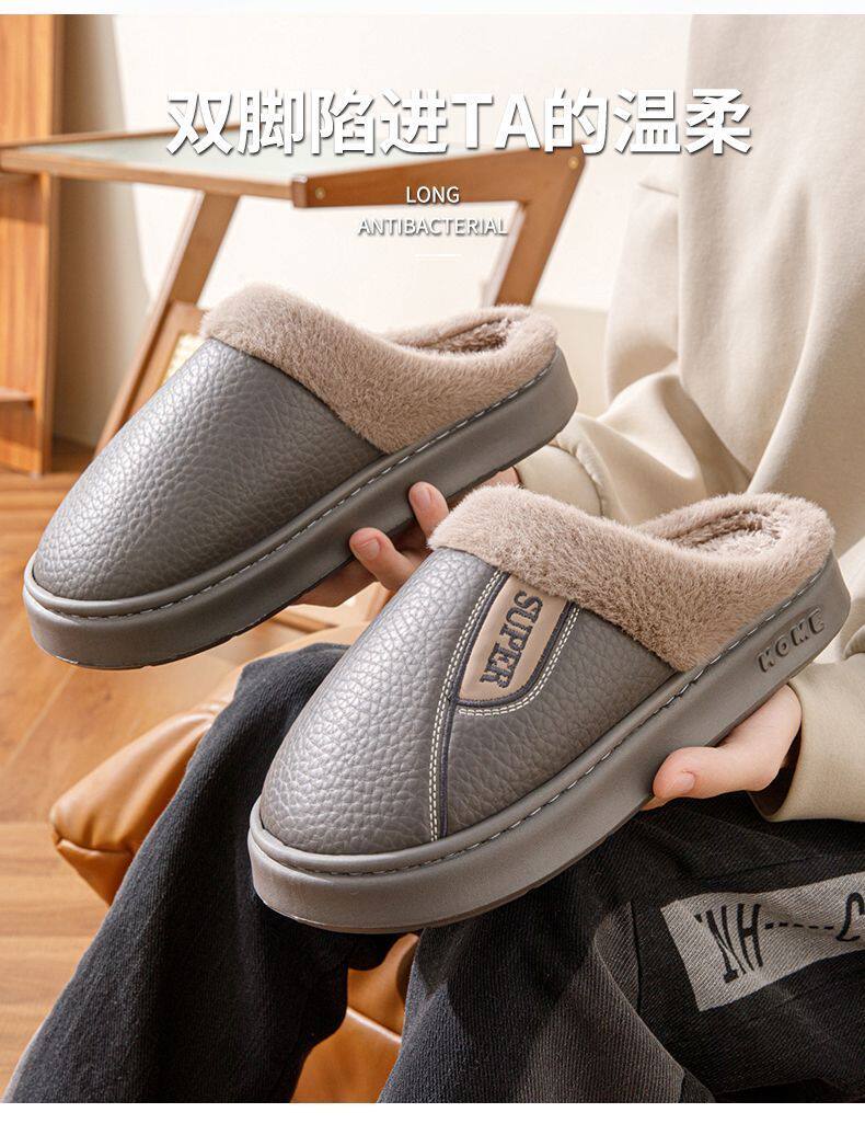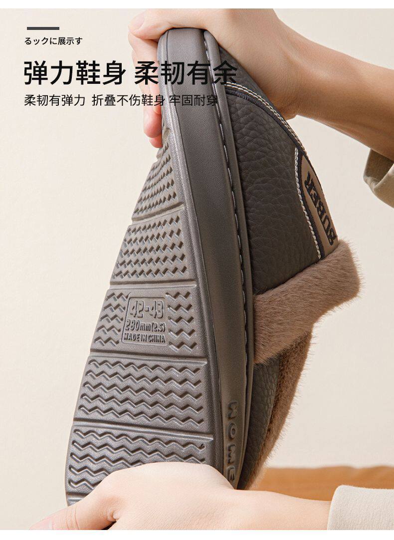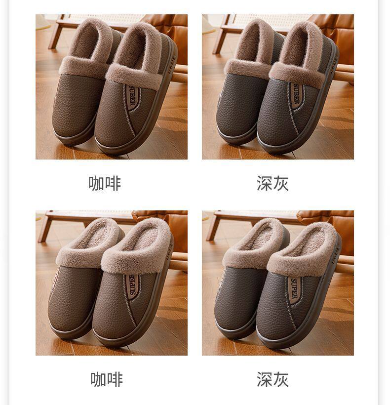2025 New Model Men's and Women's Winter Waterproof Leather Slippers, Fleece-Lined and Thickened, for Home Use, Indoor Non-Slip, Warm, Suitable for Outdoor Wear in Winter