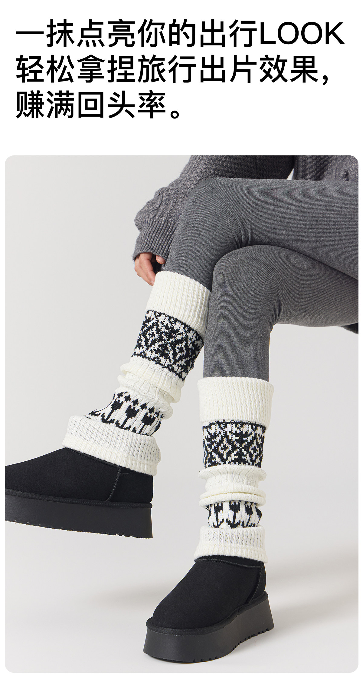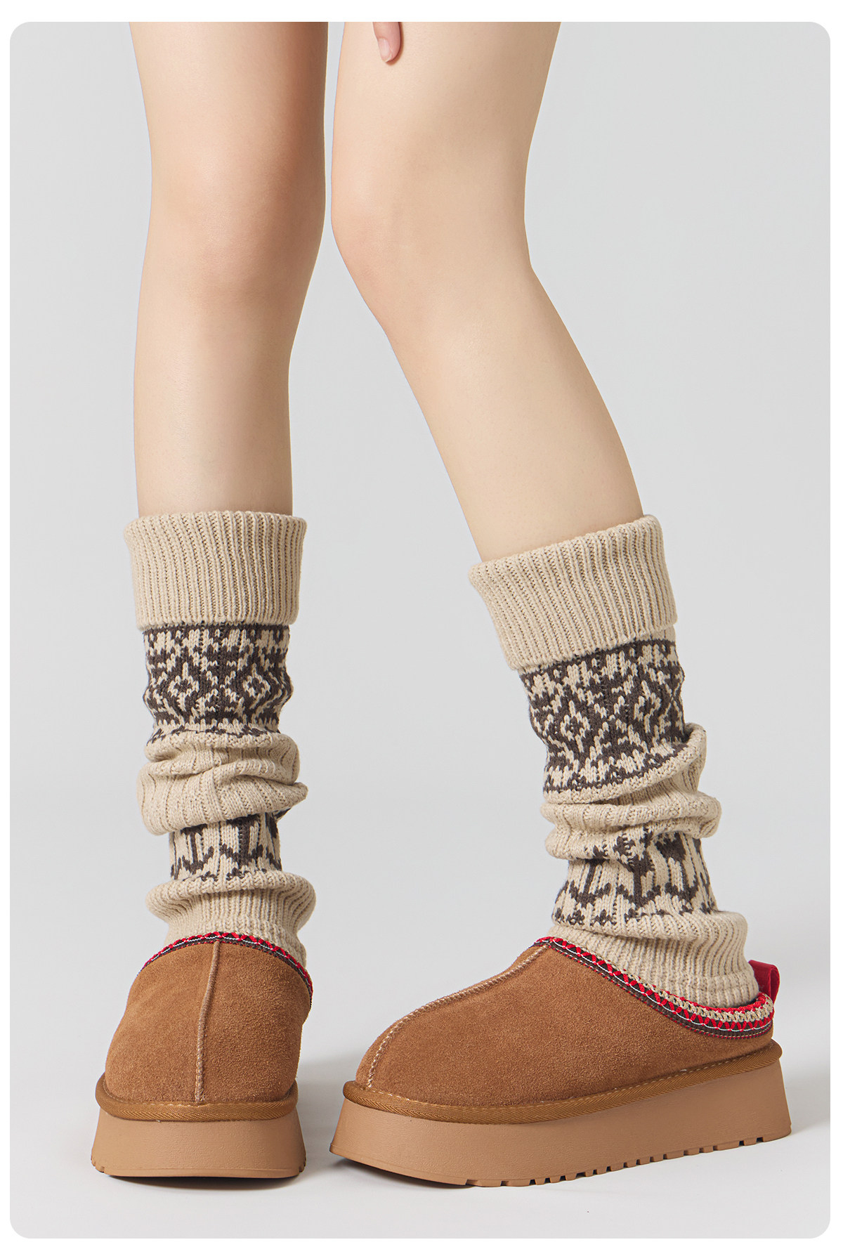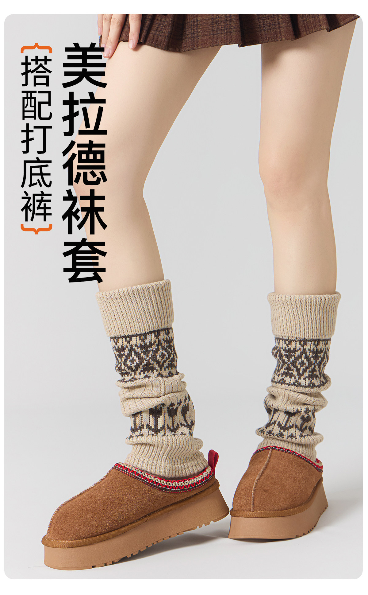Dui dui sock covers women's autumn and winter thickened warmth slimming leg covers 2025 new hot style retro fair isle matching snow boots