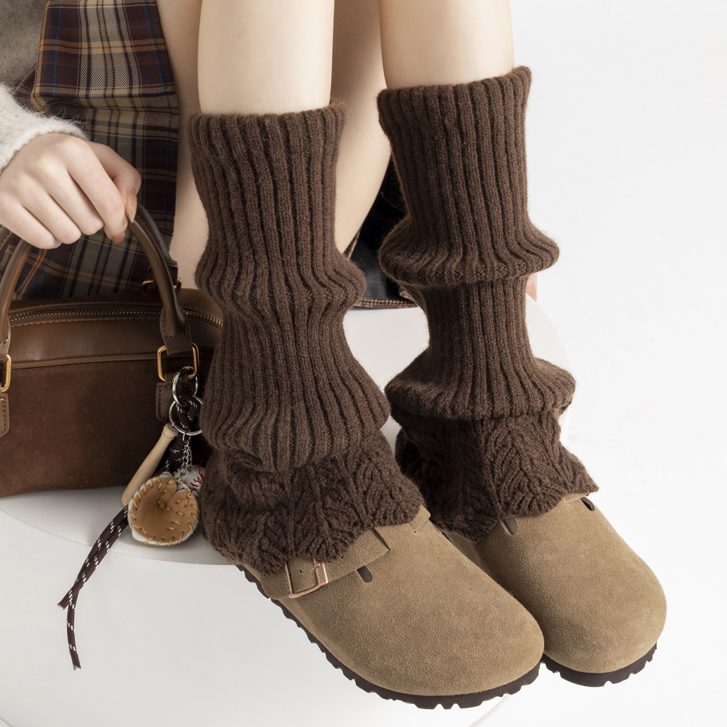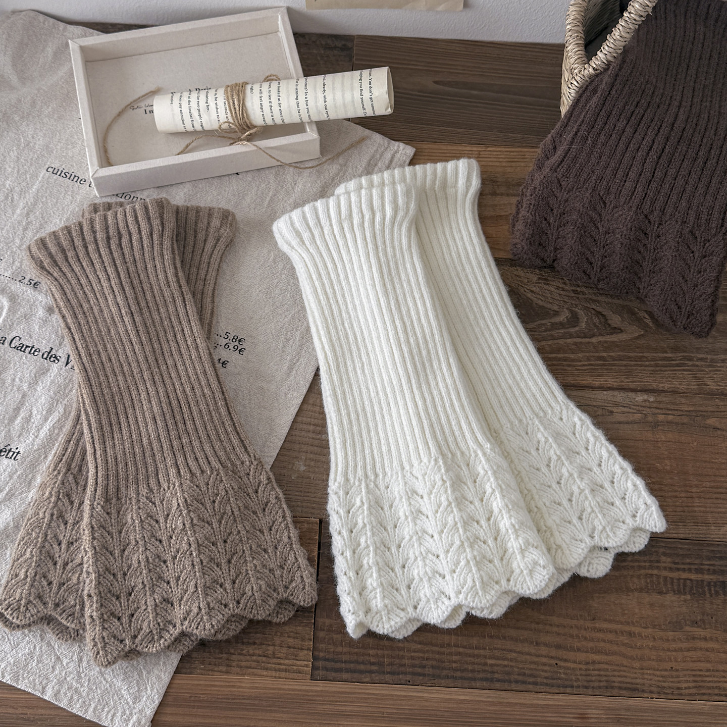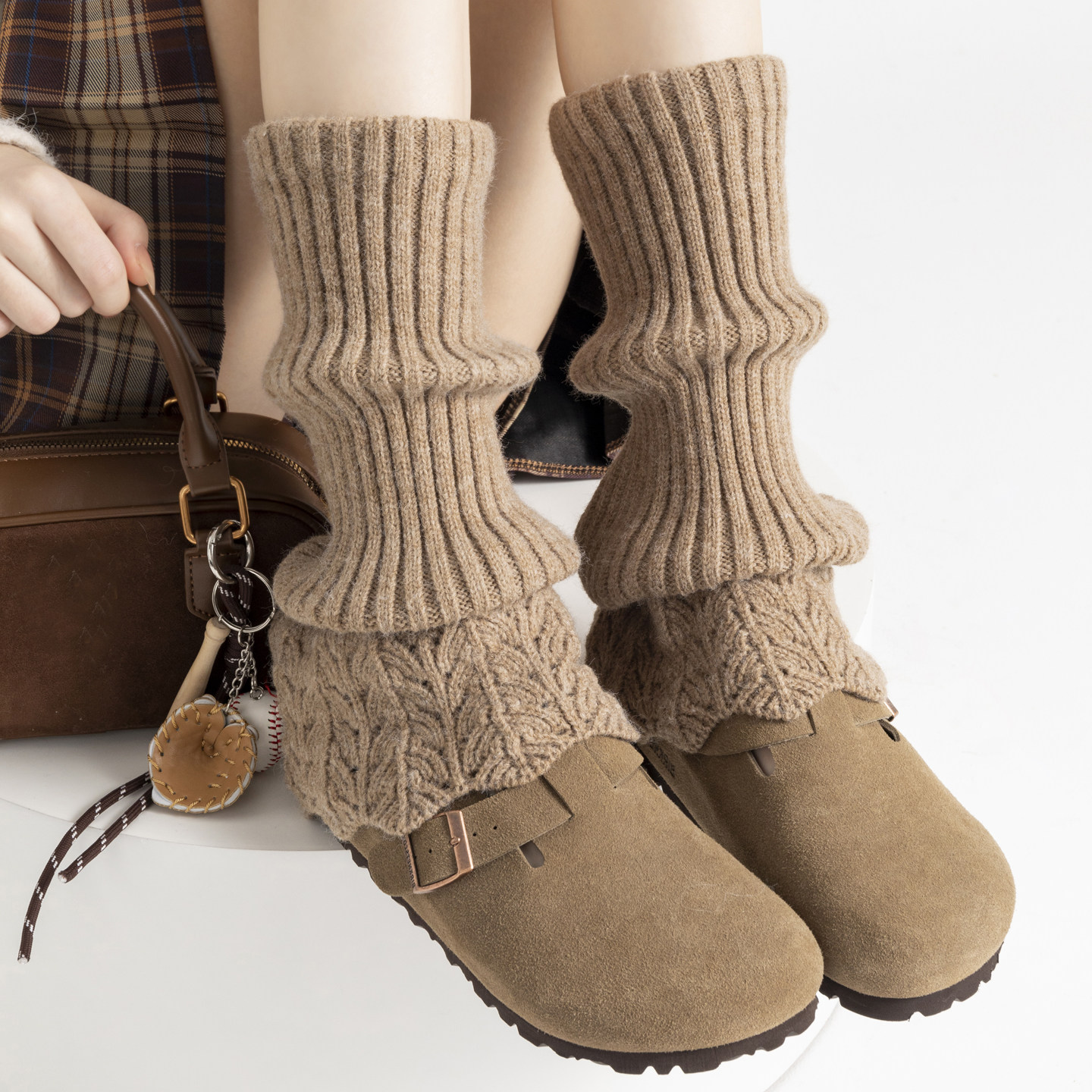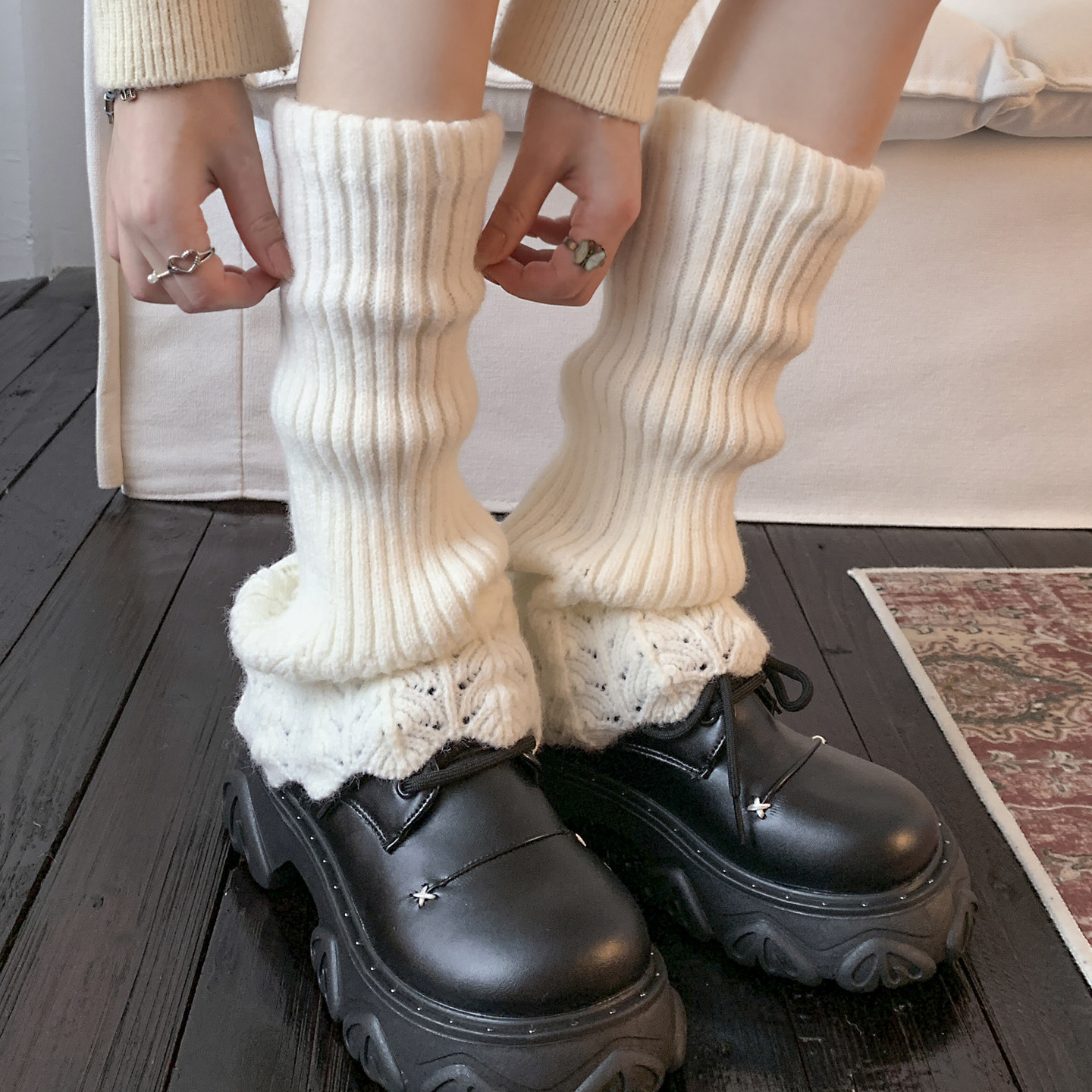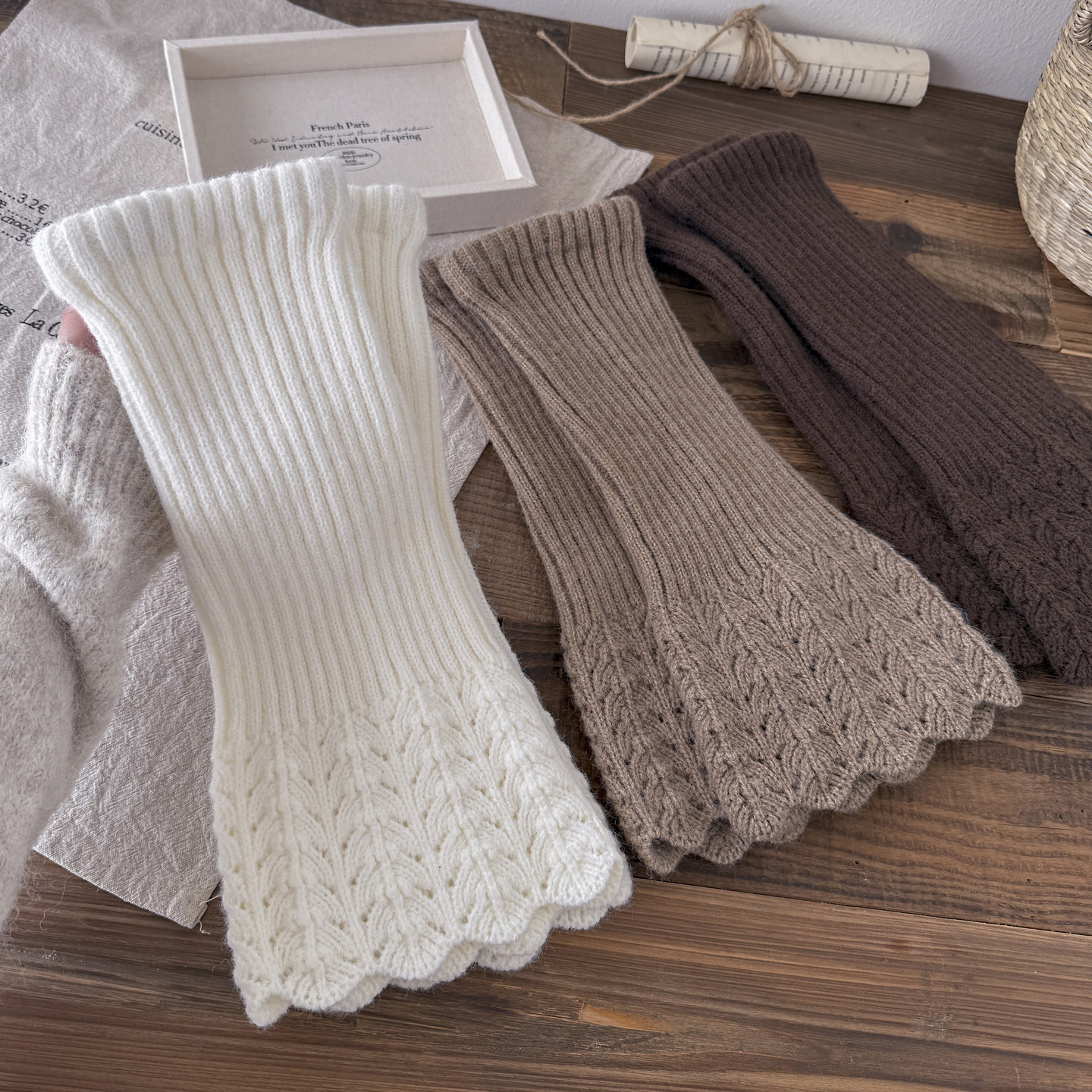 Brown socks piles of socks hollow lace women's winter warm knitted white calf covers sweet retro versatile boot covers