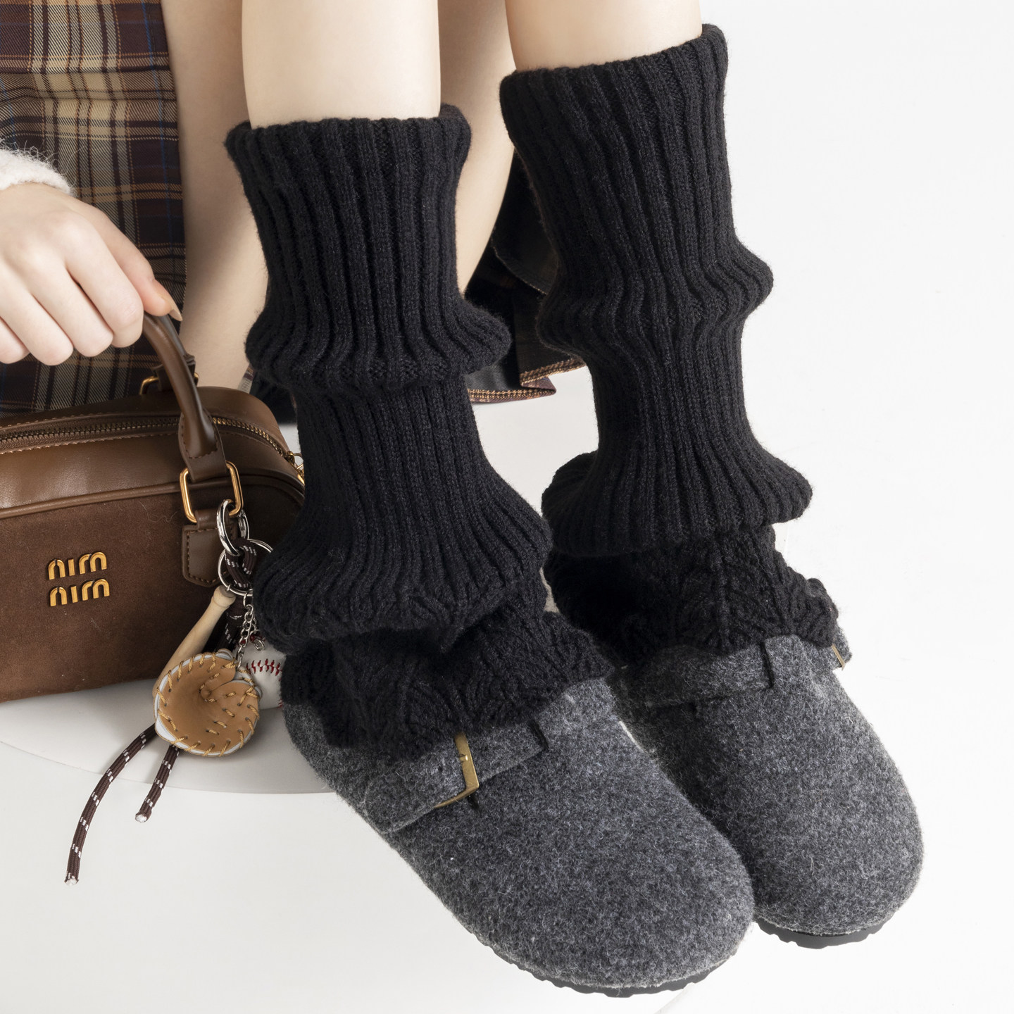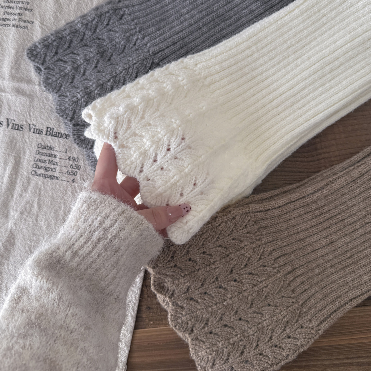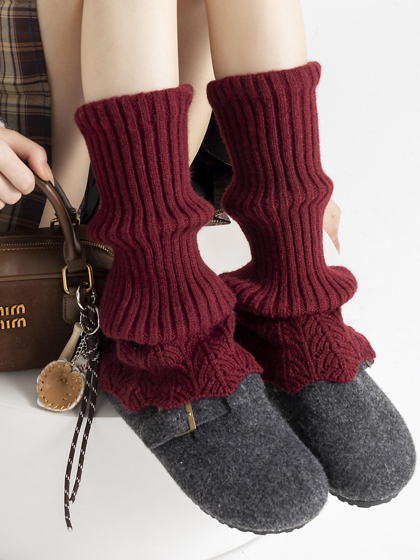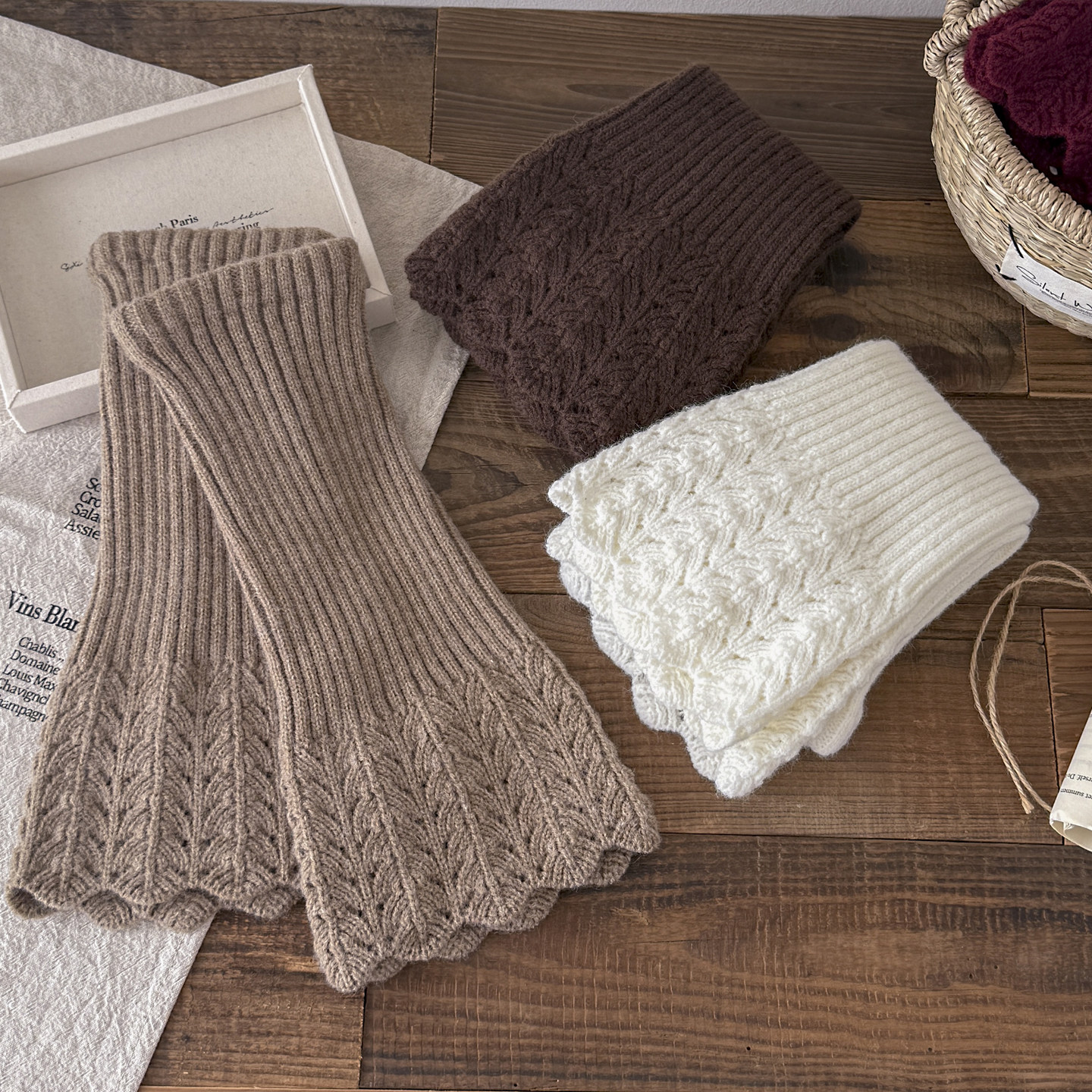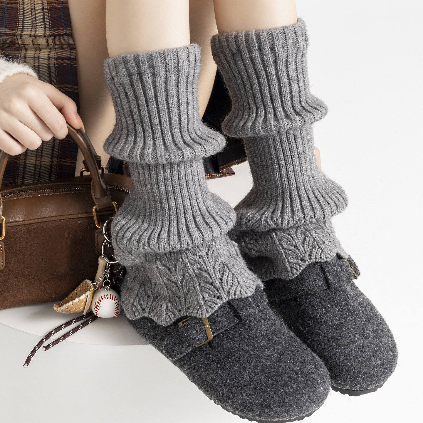 Brown socks piles of socks hollow lace women's winter warm knitted white calf covers sweet retro versatile boot covers