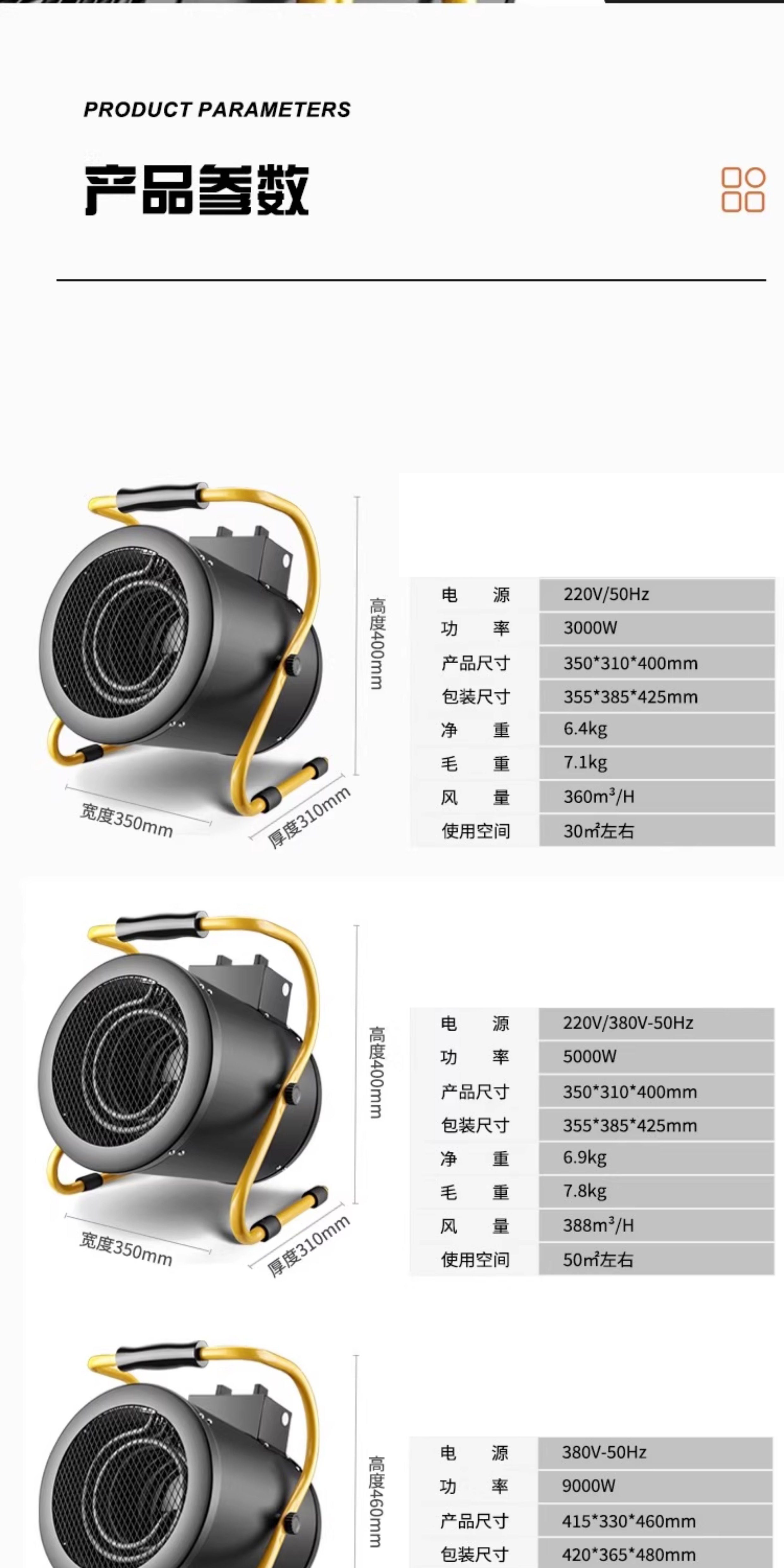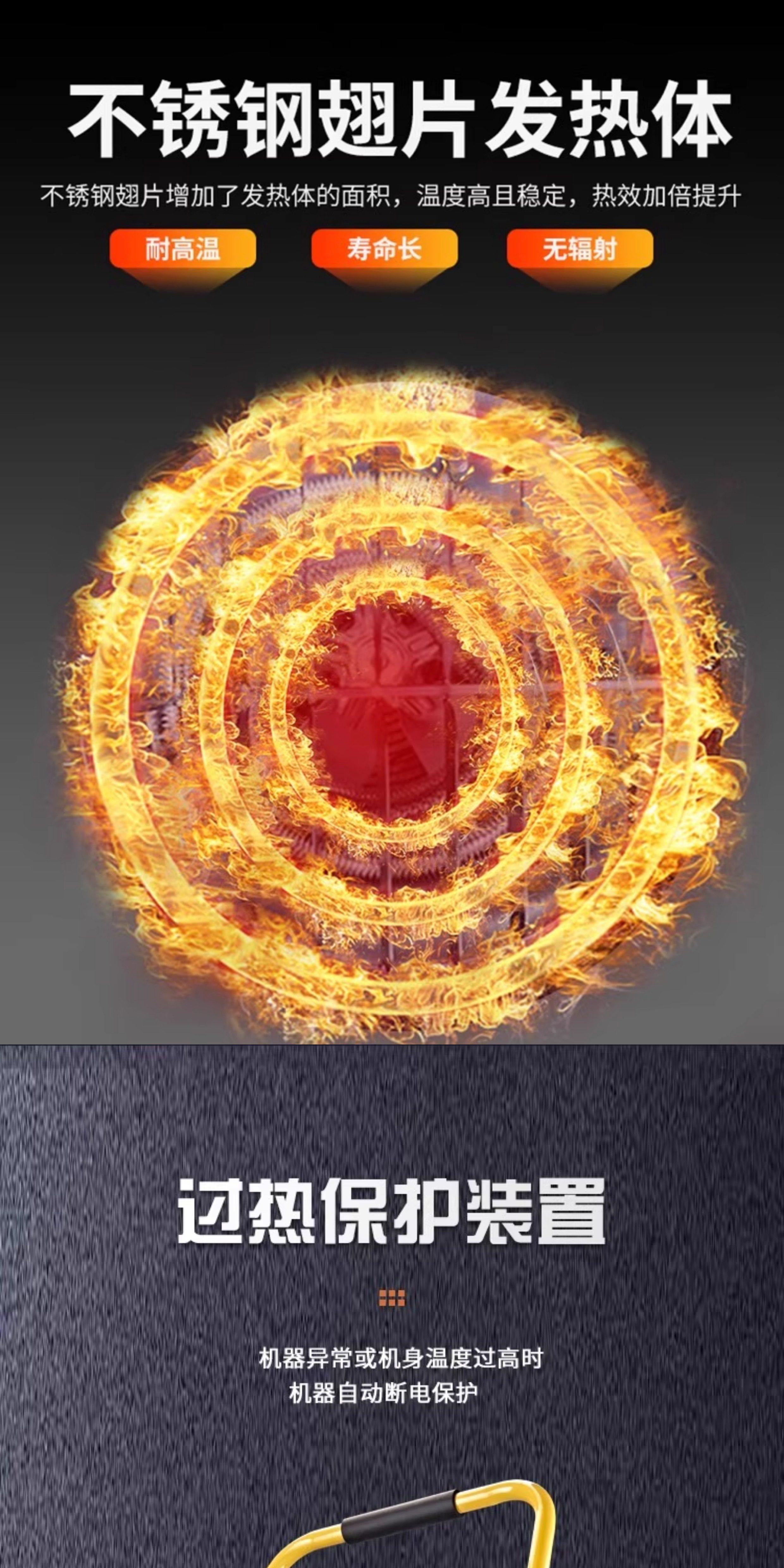 Electric Heater with High Power, Small Steel Heater, Fast Heating Fan, Air Cannon Heater, Dryer, Industrial Heating Stove