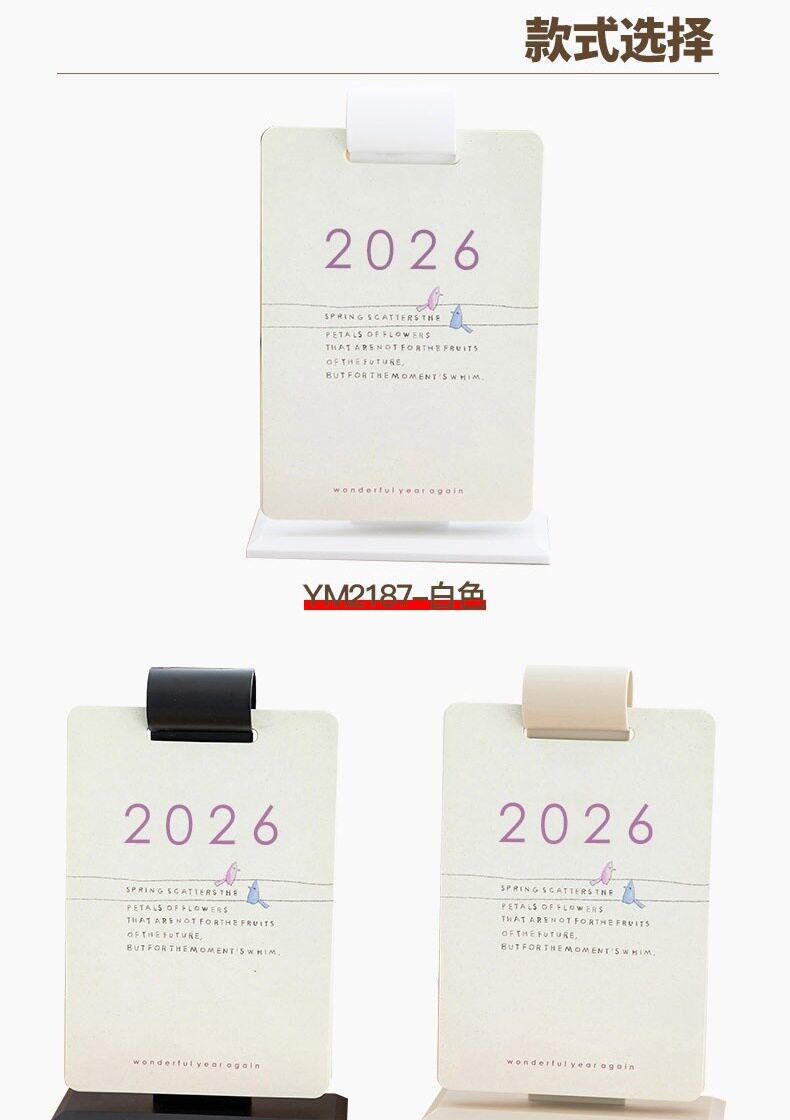 Sort by color YM2187-white,YM2187-Nordic Red,YM2187-Nordic Blue,YM2187-black,YM2187-khaki,Separate calendar stand (remark color)