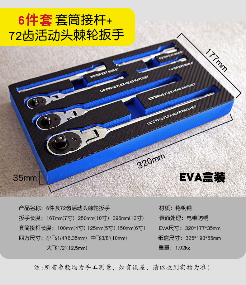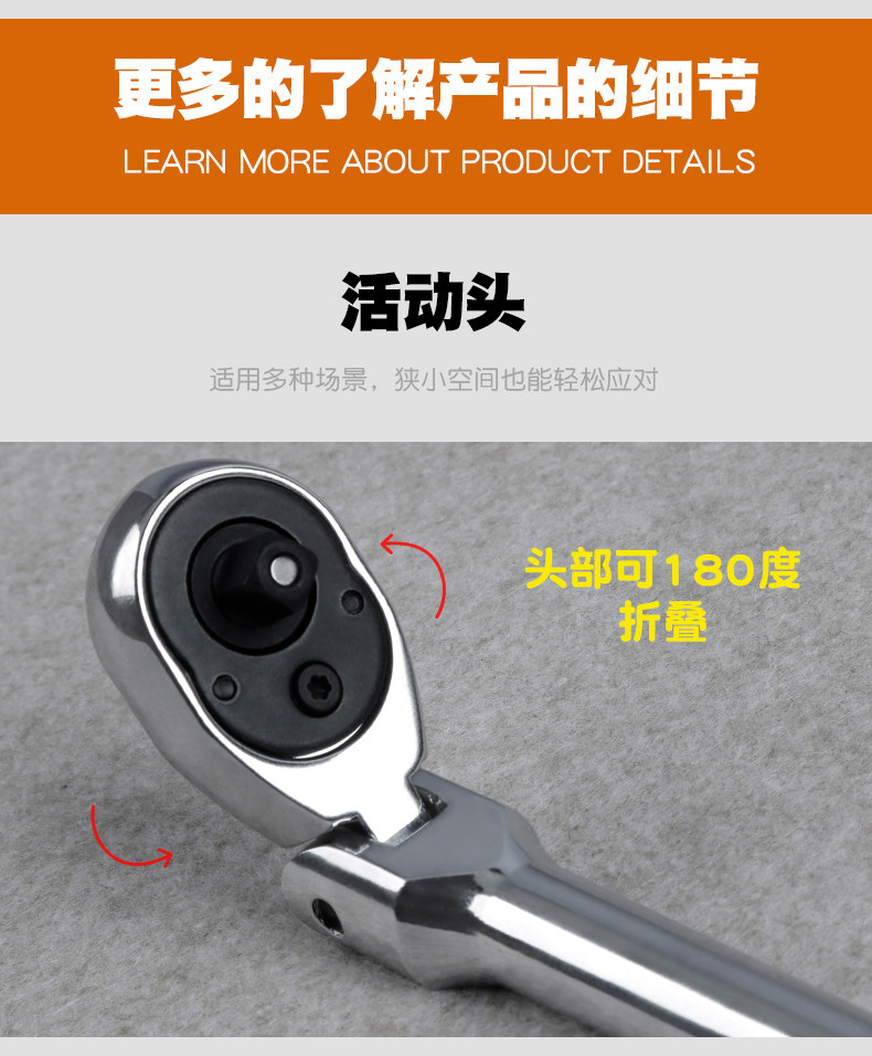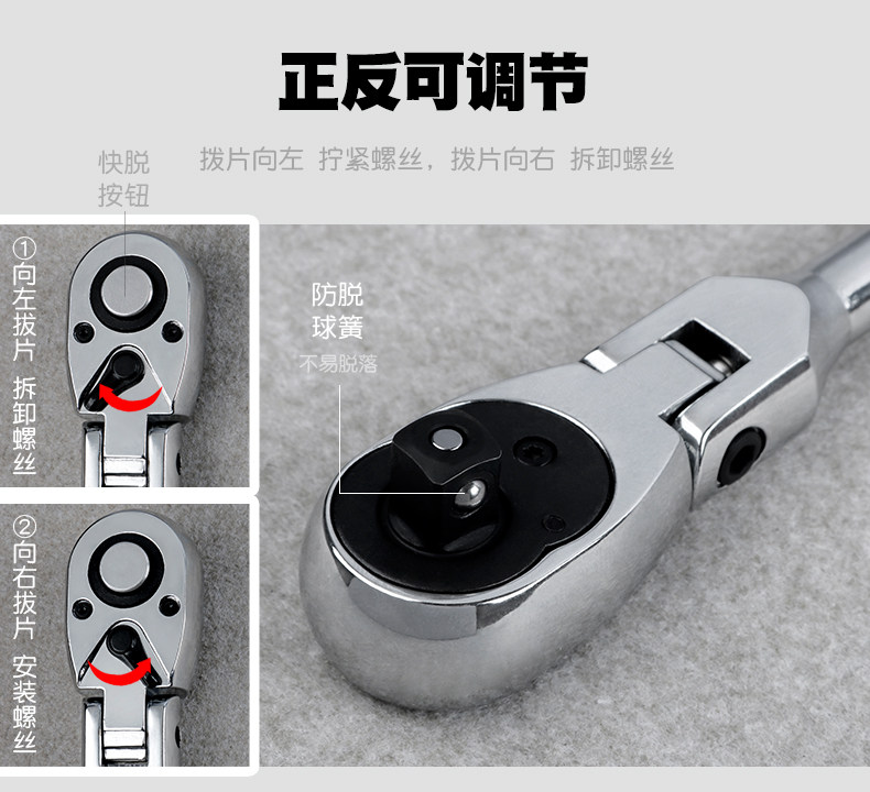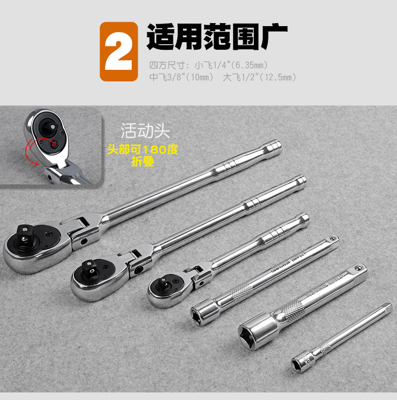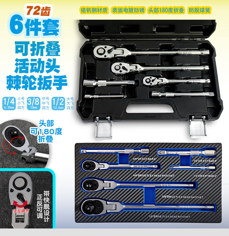 Model 6-Piece Set, 72-Tooth Movable Head Forward and Reverse Quick Ratchet Wrench + Socket Adapter