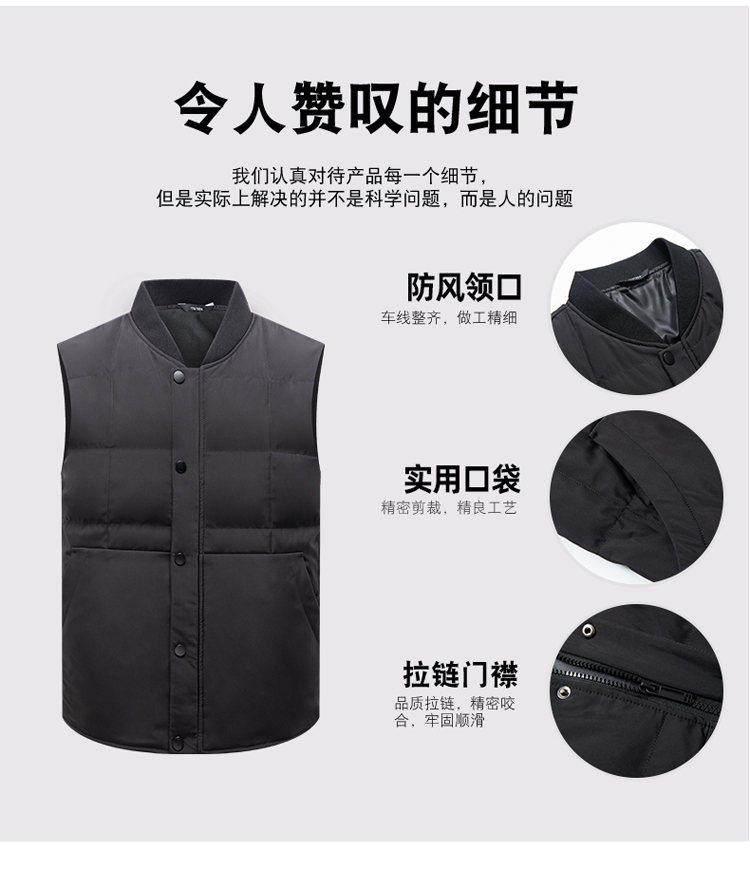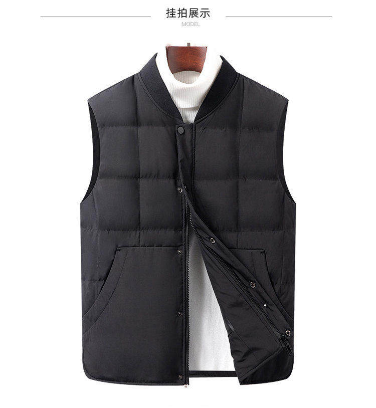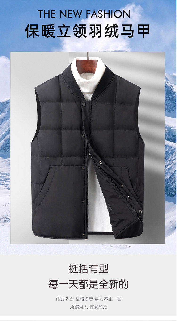 Woodpecker Warm Stand Collar Down Vest Men's Autumn and Winter Fashion Casual Thickened Vest for Middle-aged and Young Solid Color Vest