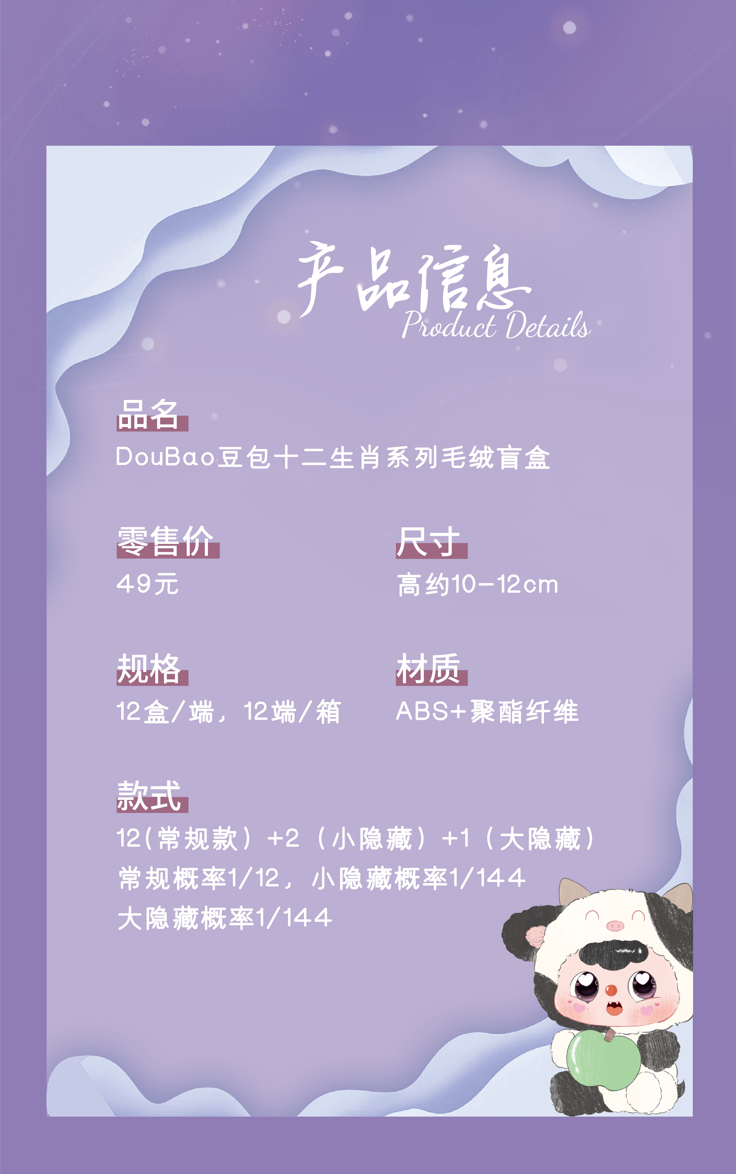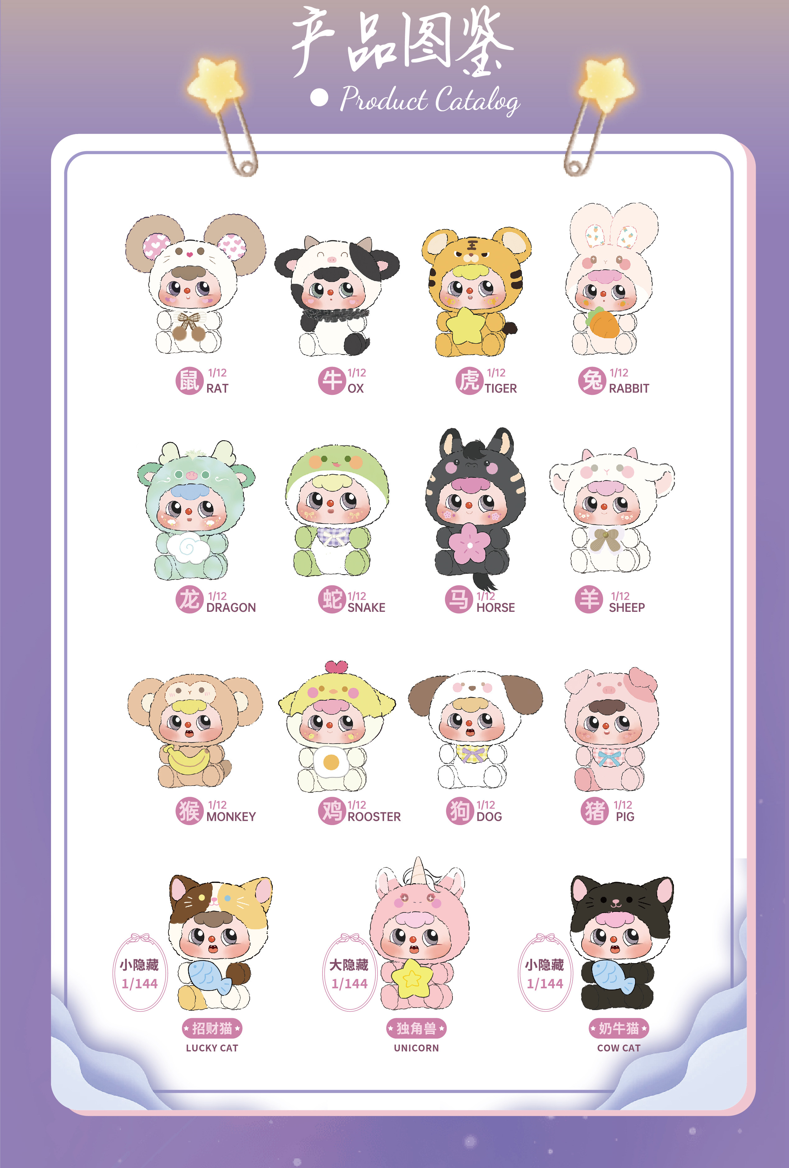 Doubao Plush Zodiac Animal Vinyl Plush Pendant Blind Box Cute Doll for Girls Birthday Gift
