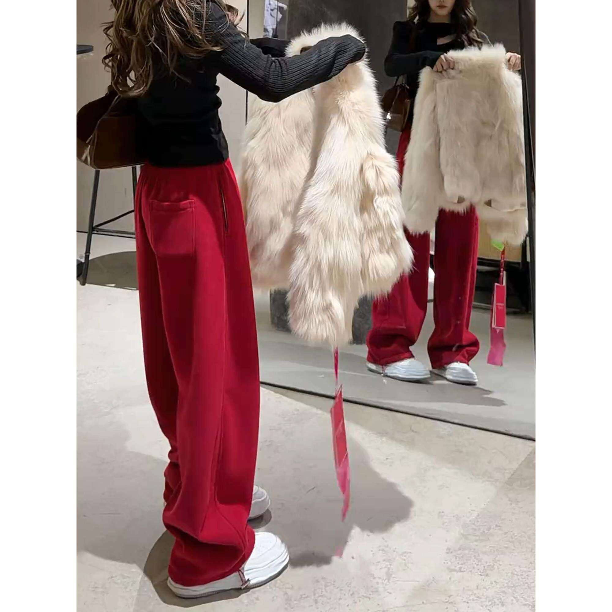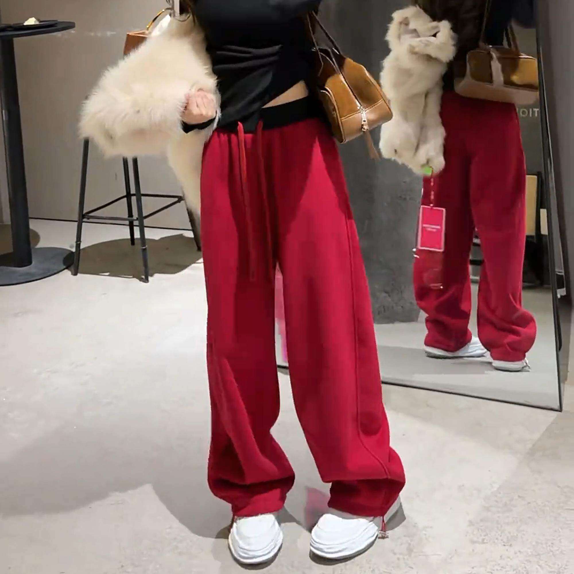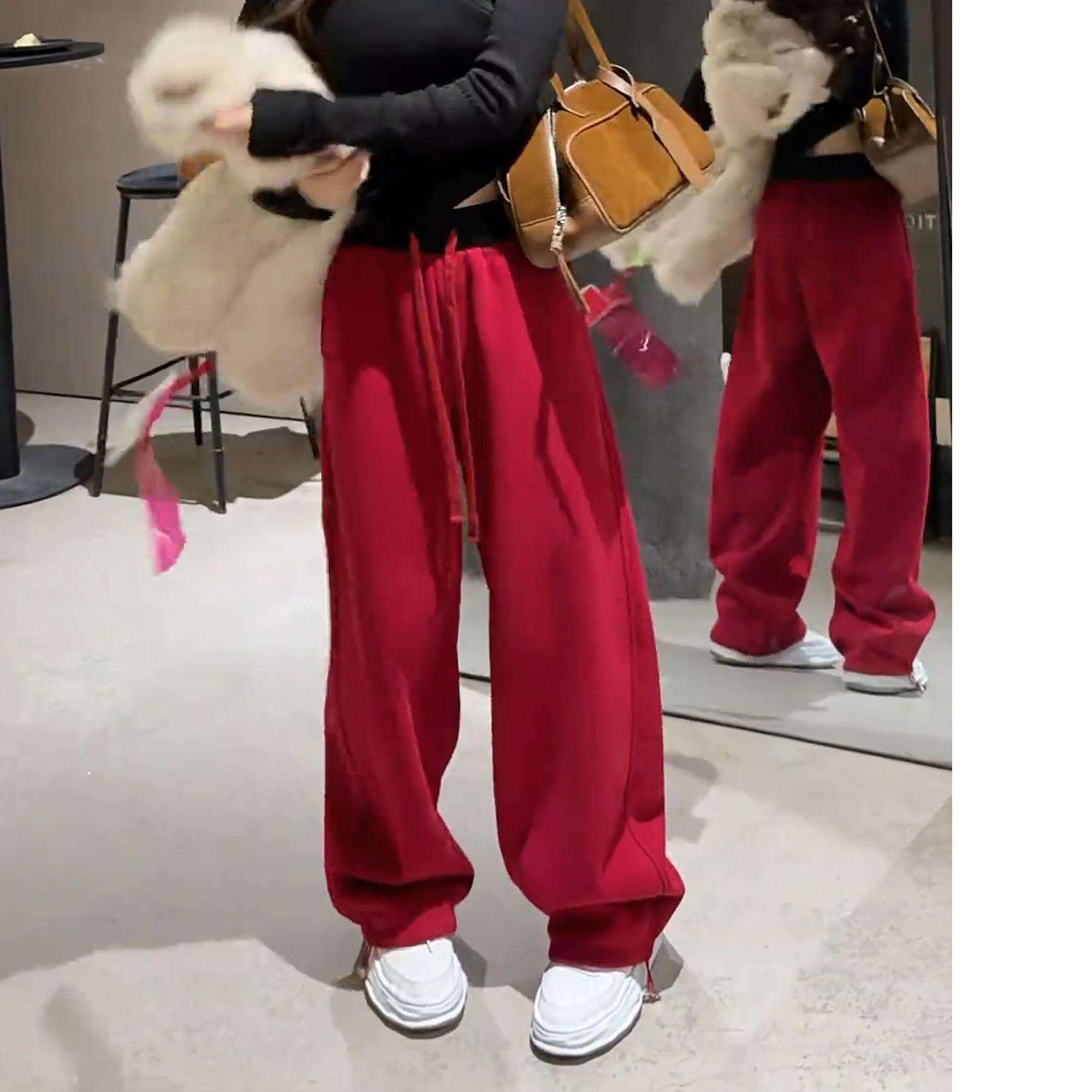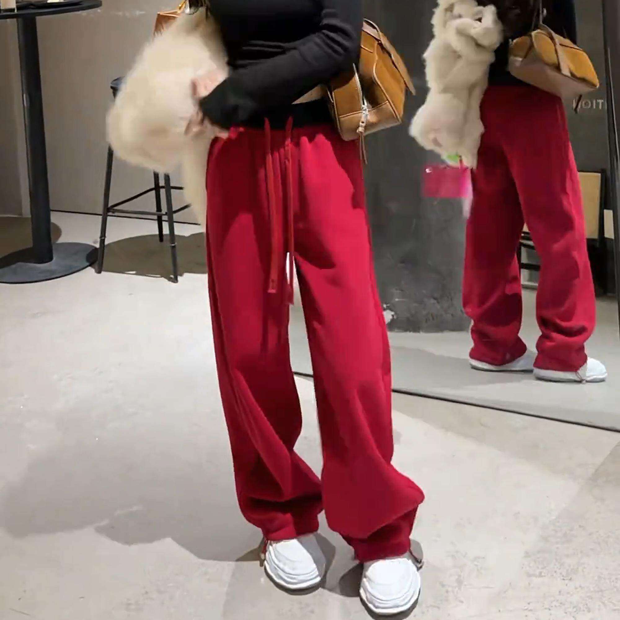 Women's Casual Pants 2026 Autumn and Winter New Commuting Wear Red Velvet Thickened Loose Versatile Lazy Style Sweatpants
