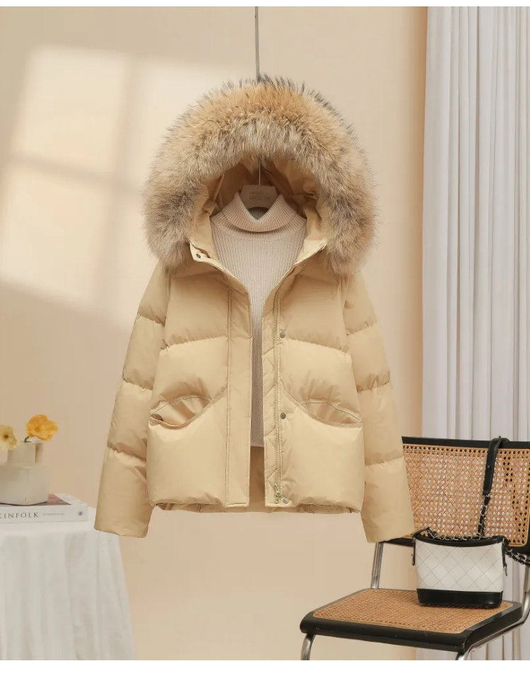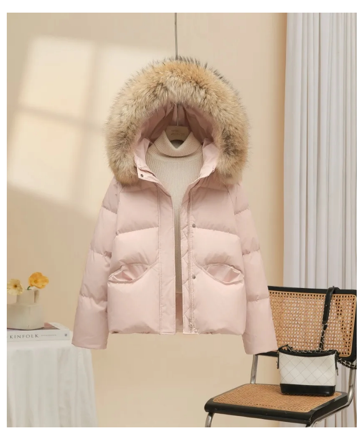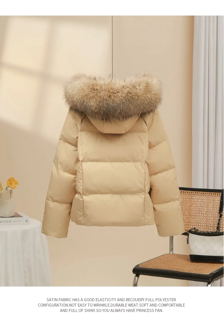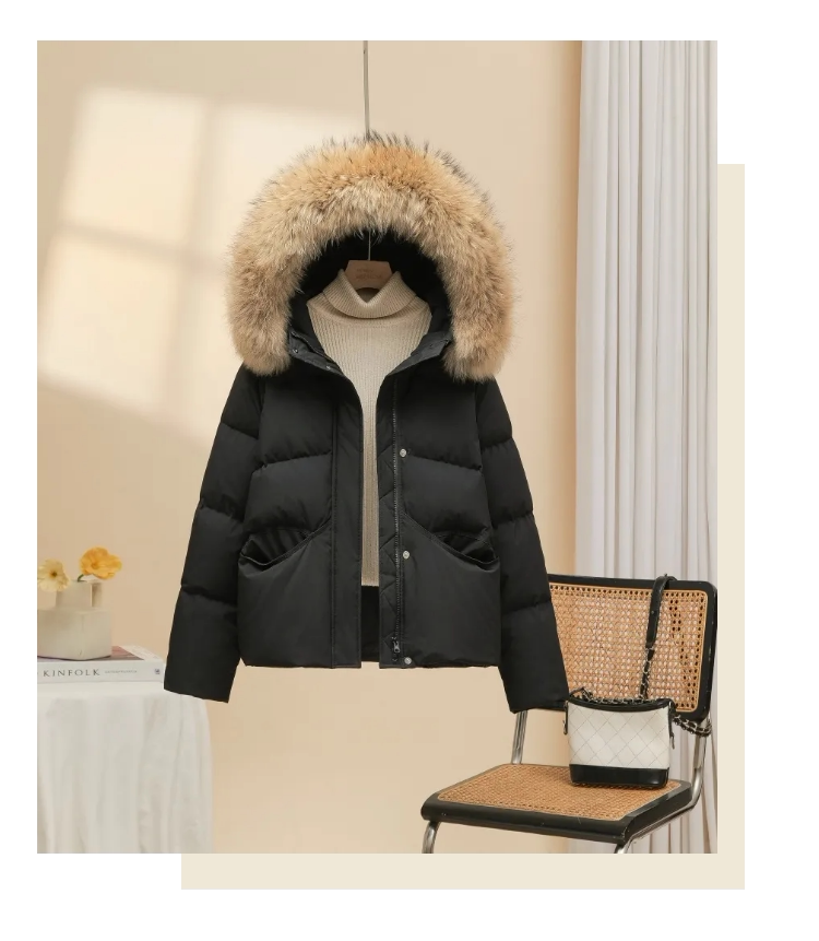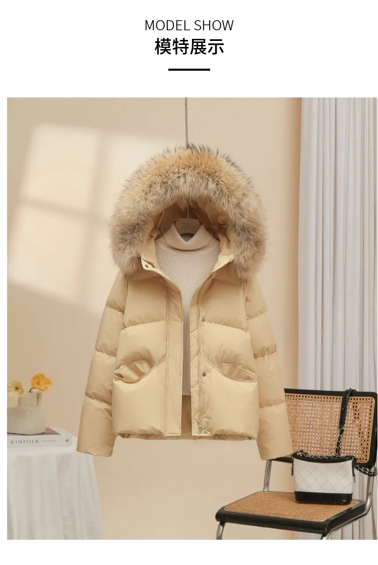 2025 giant good-looking down jacket women's short style new thickened hooded fur collar to keep warm this year's popular hot style winter trend