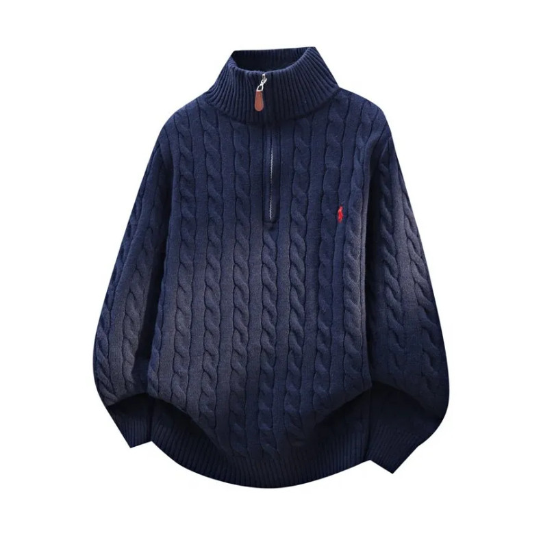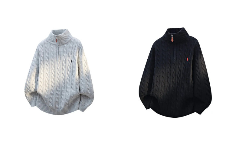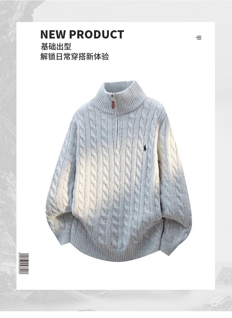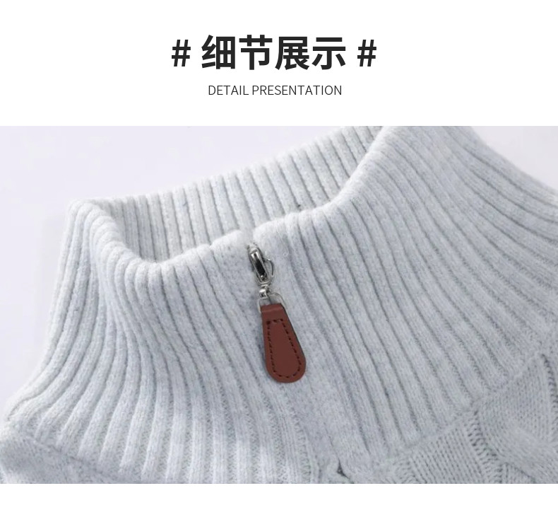Half-zip turtleneck sweater for men, autumn and winter, American style loose lazy sweater for teenagers, trendy brand high-end knitted sweater