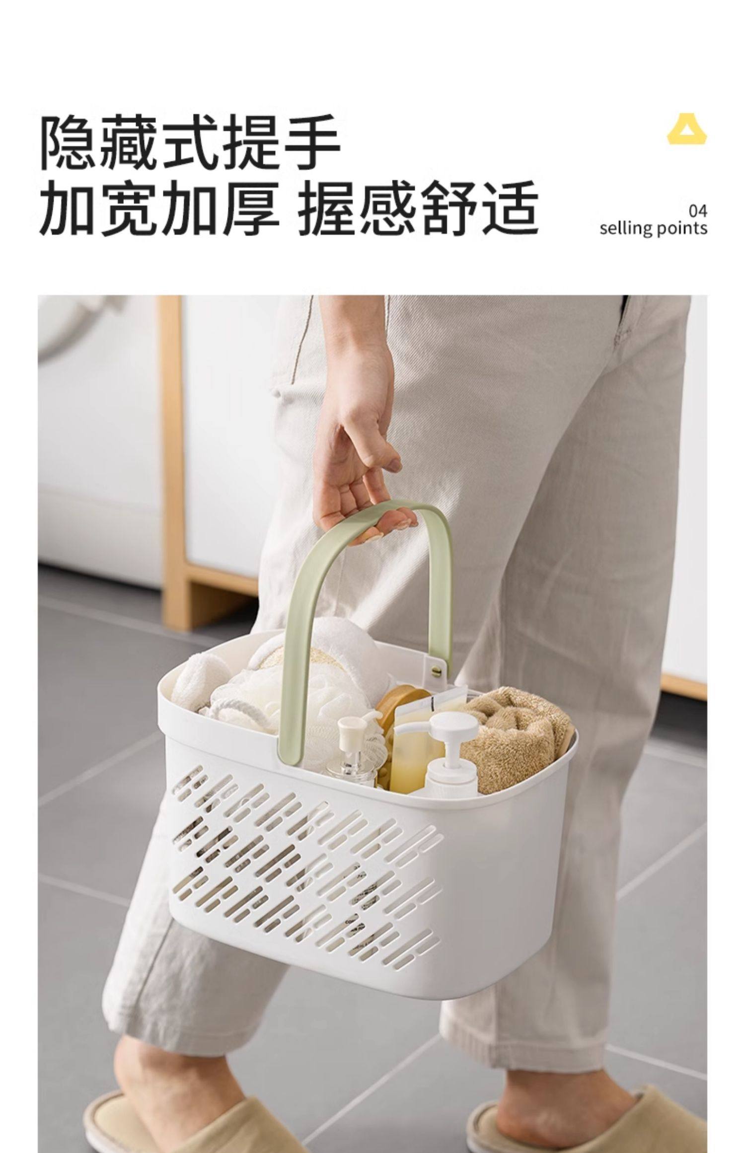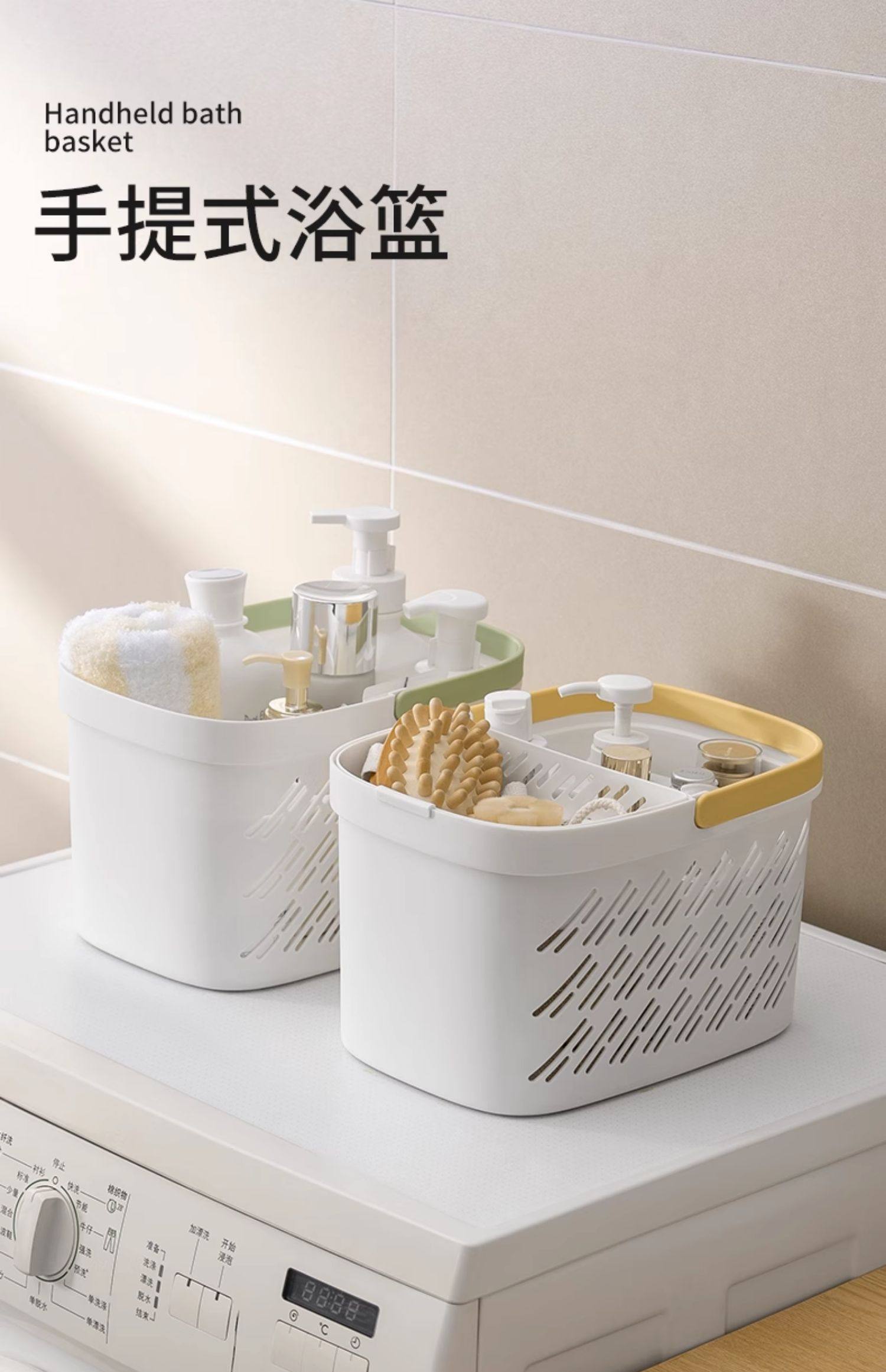Bathing basket wet and dry separation dormitory hand-heeled bath basket student toiletries storage basket drain washing basket
