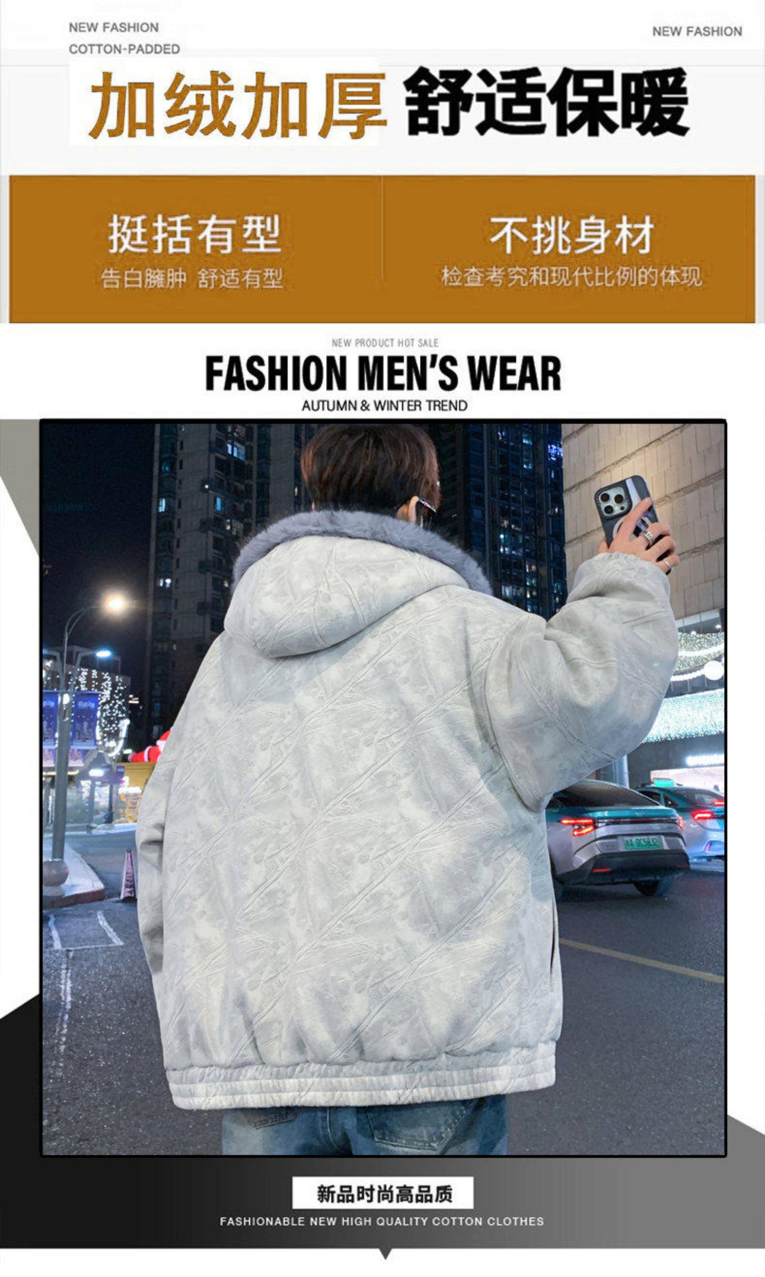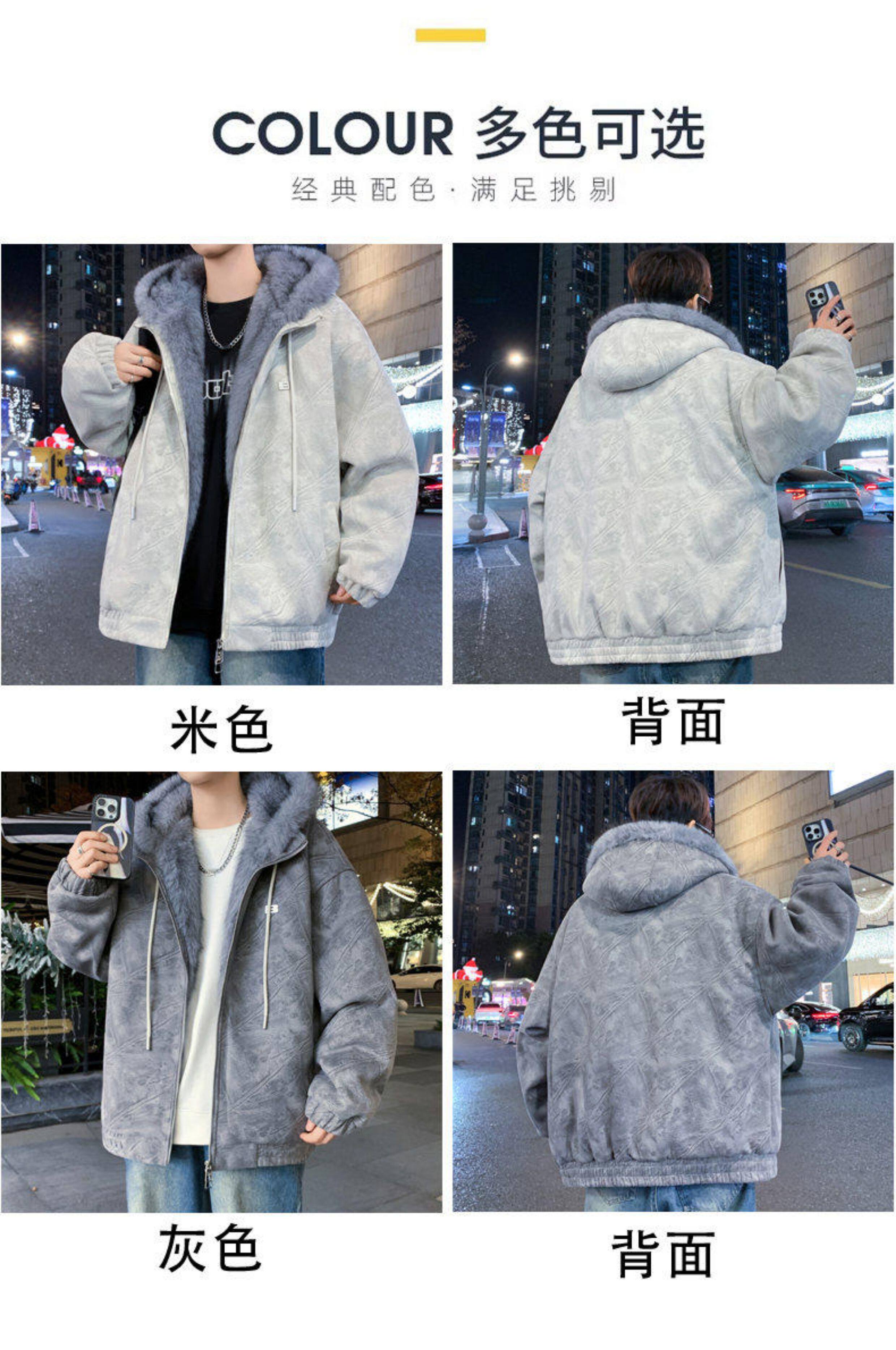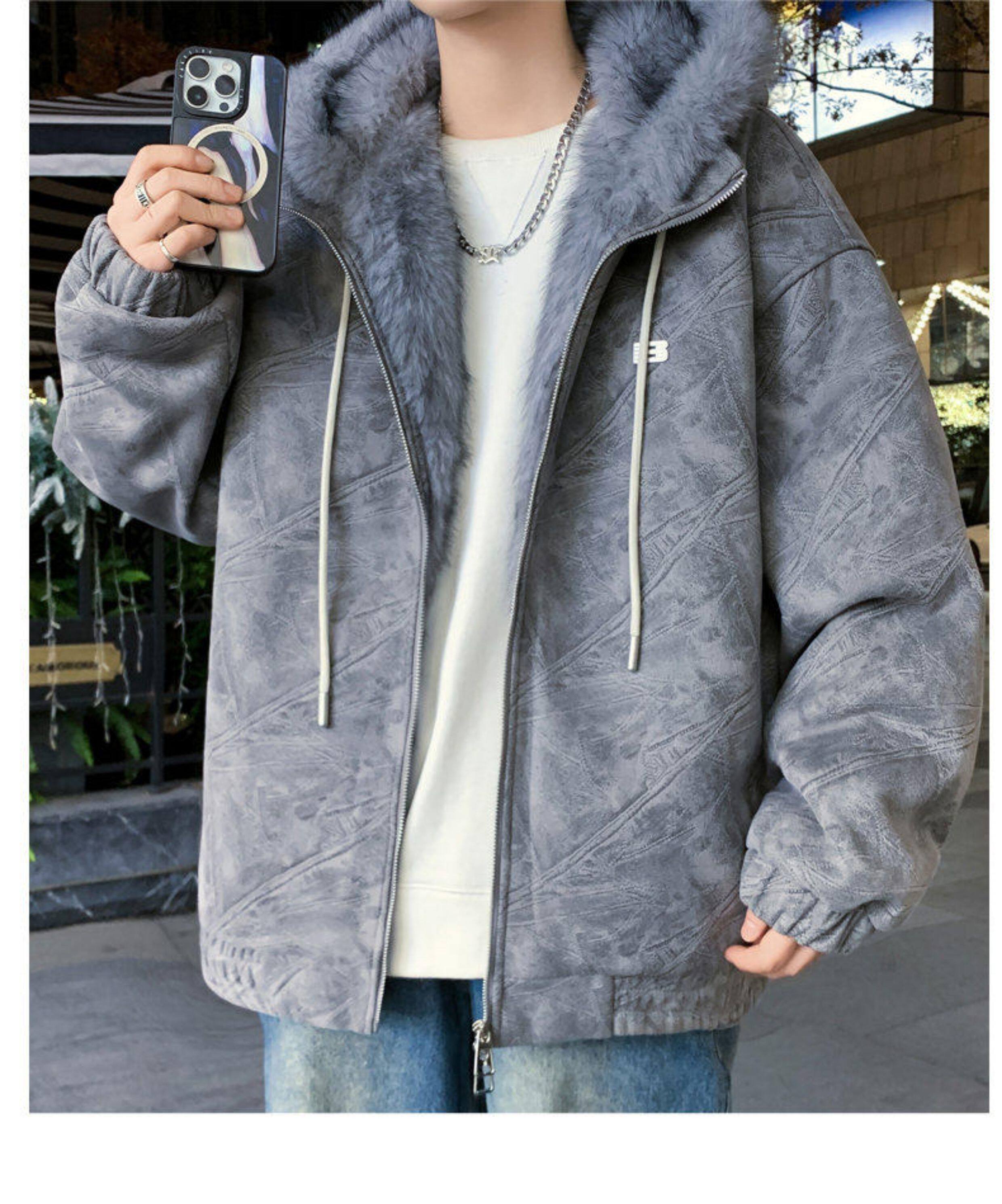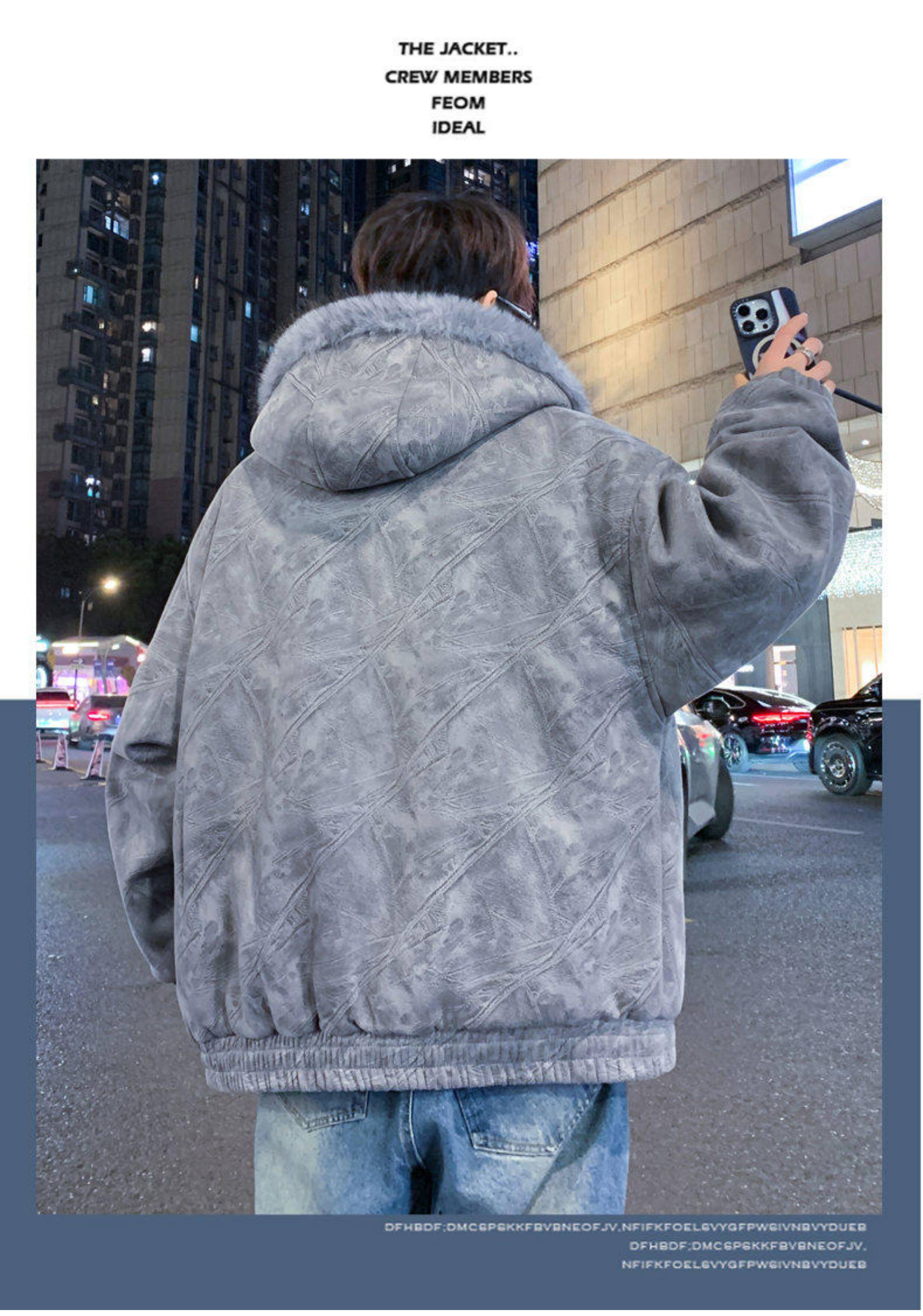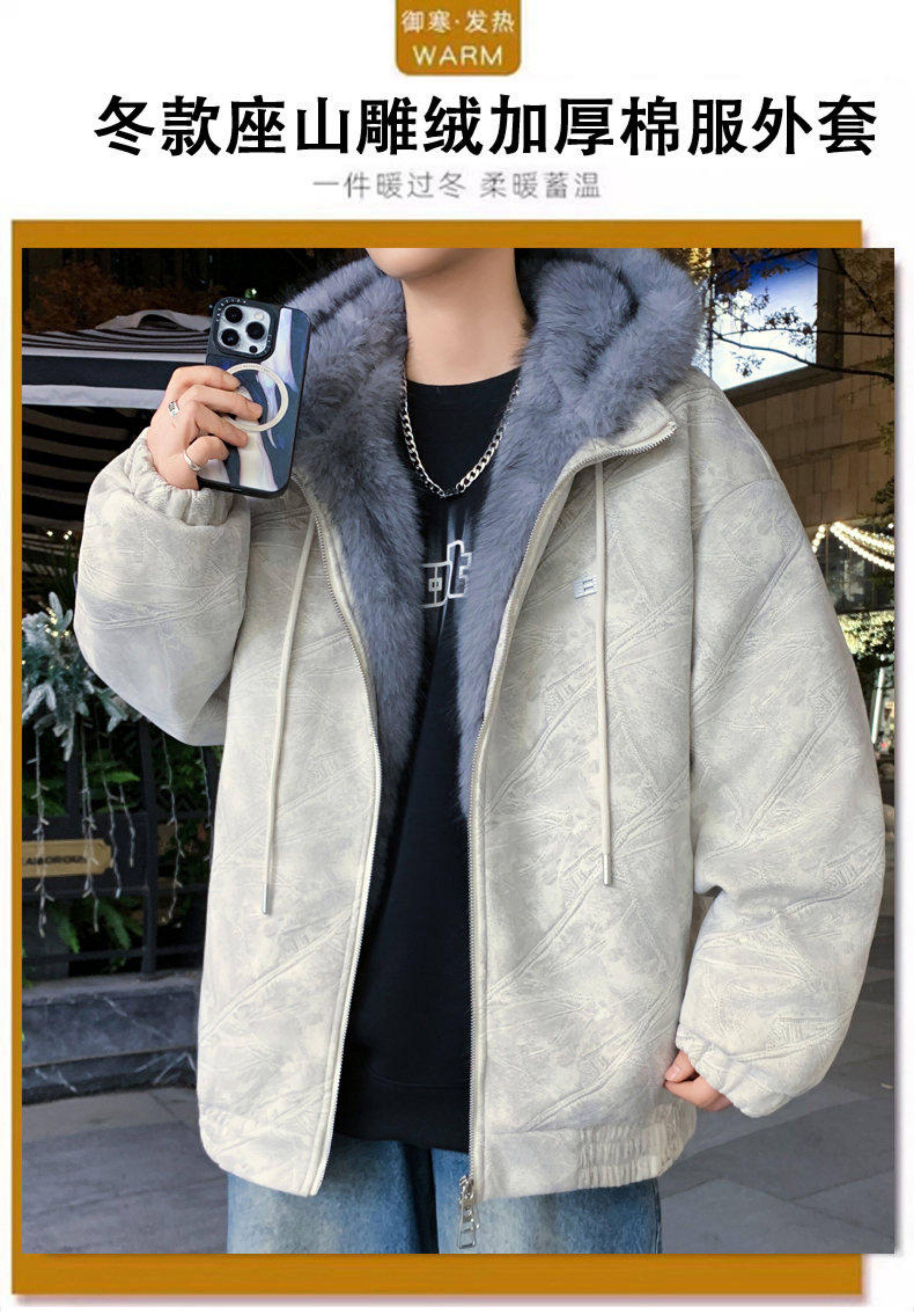 2025 Winter New Hooded Fleece-Lined Thickened Suede Cotton Jacket for Men, Teenagers, and Students