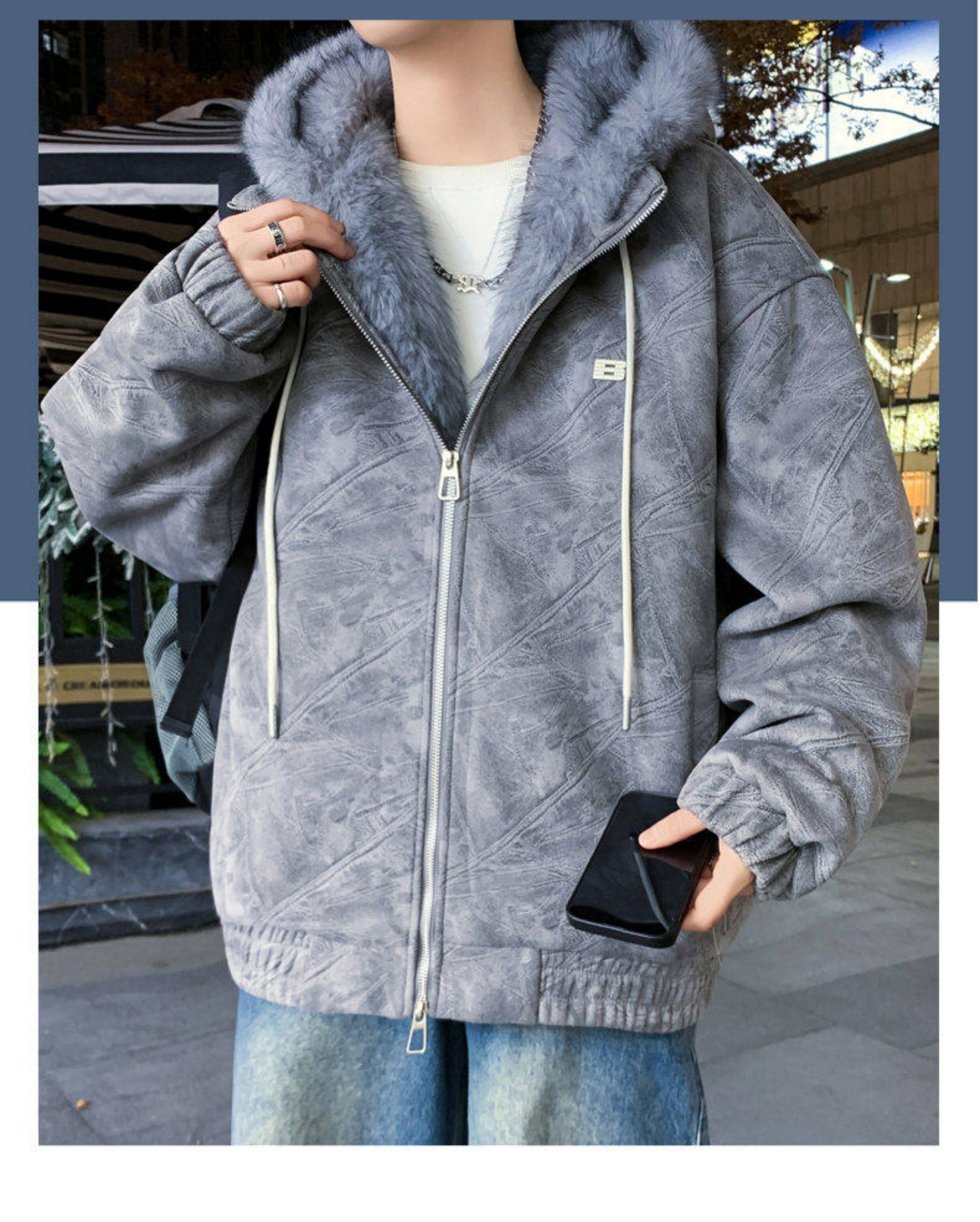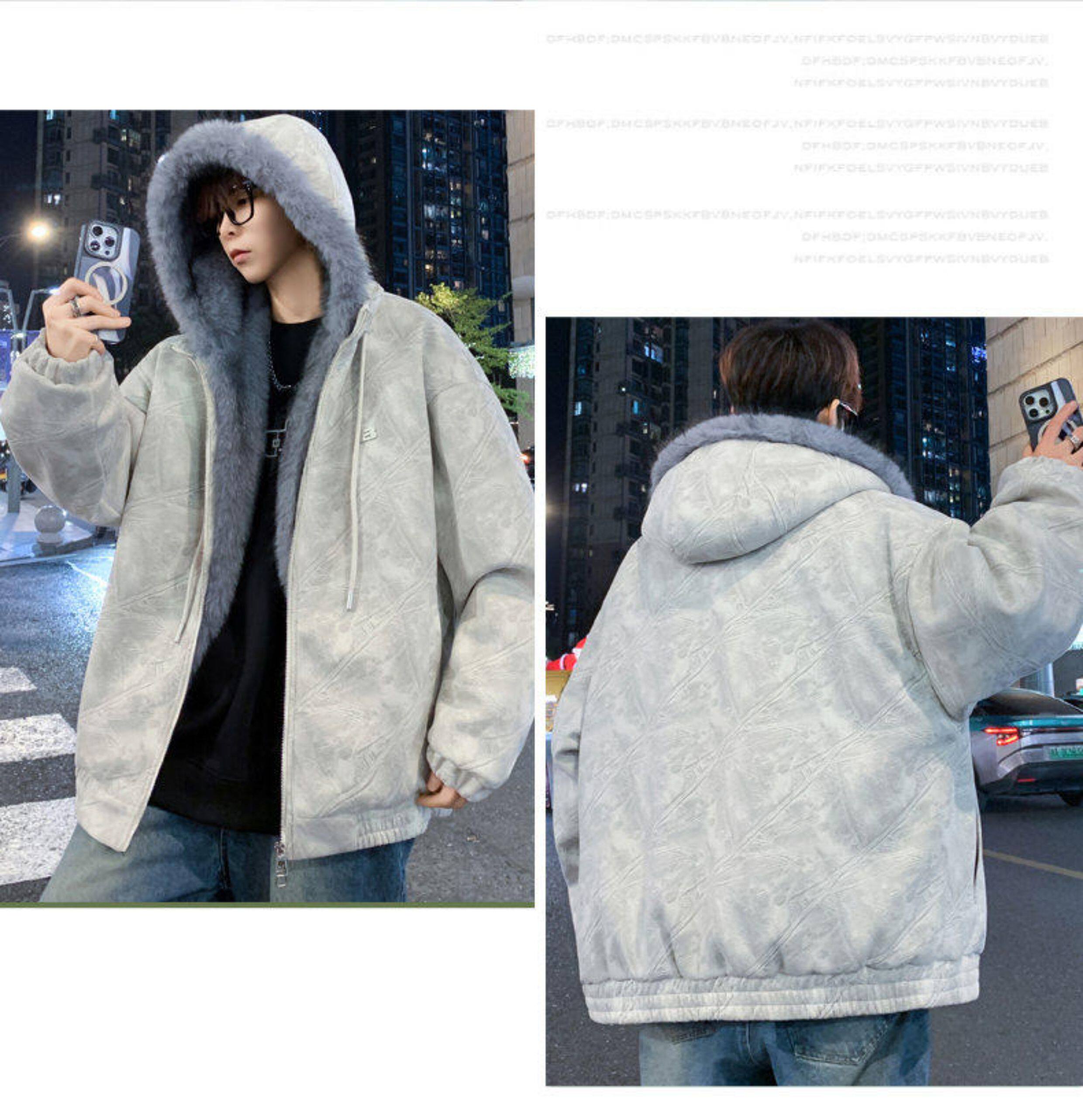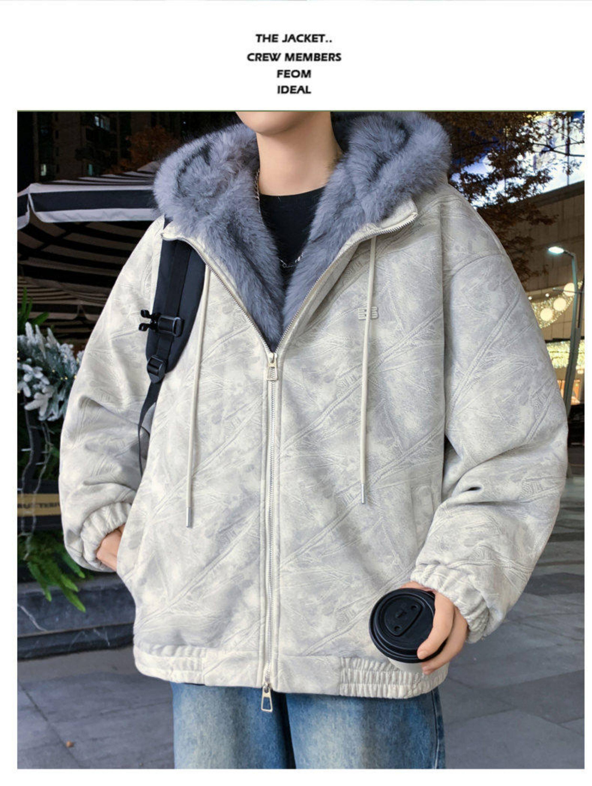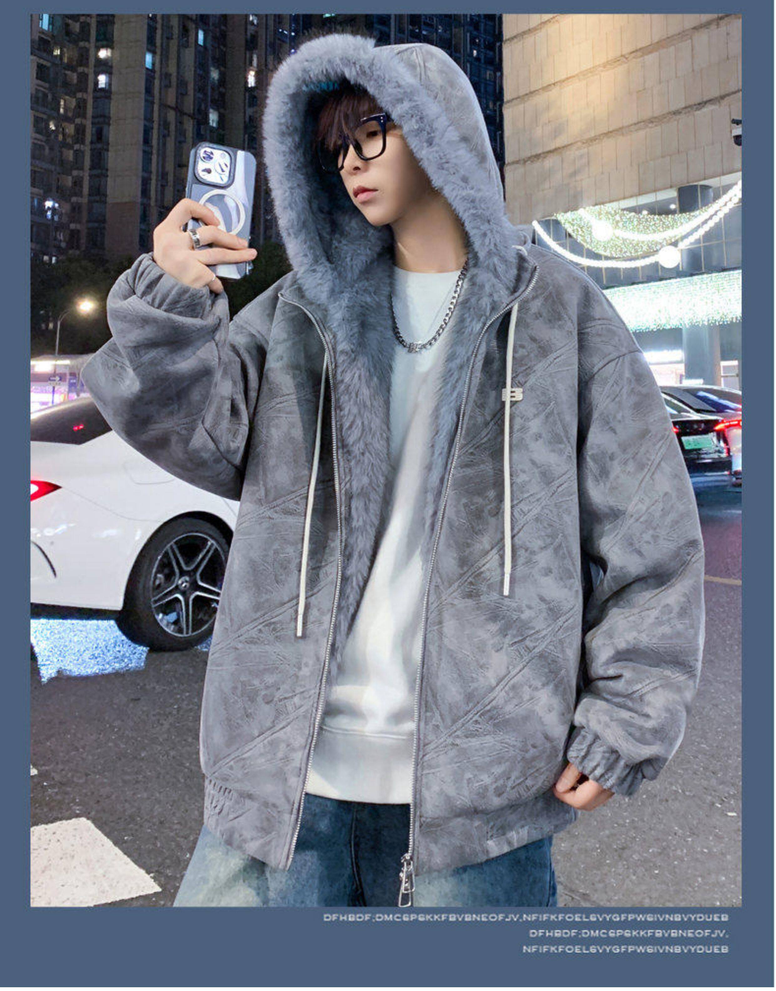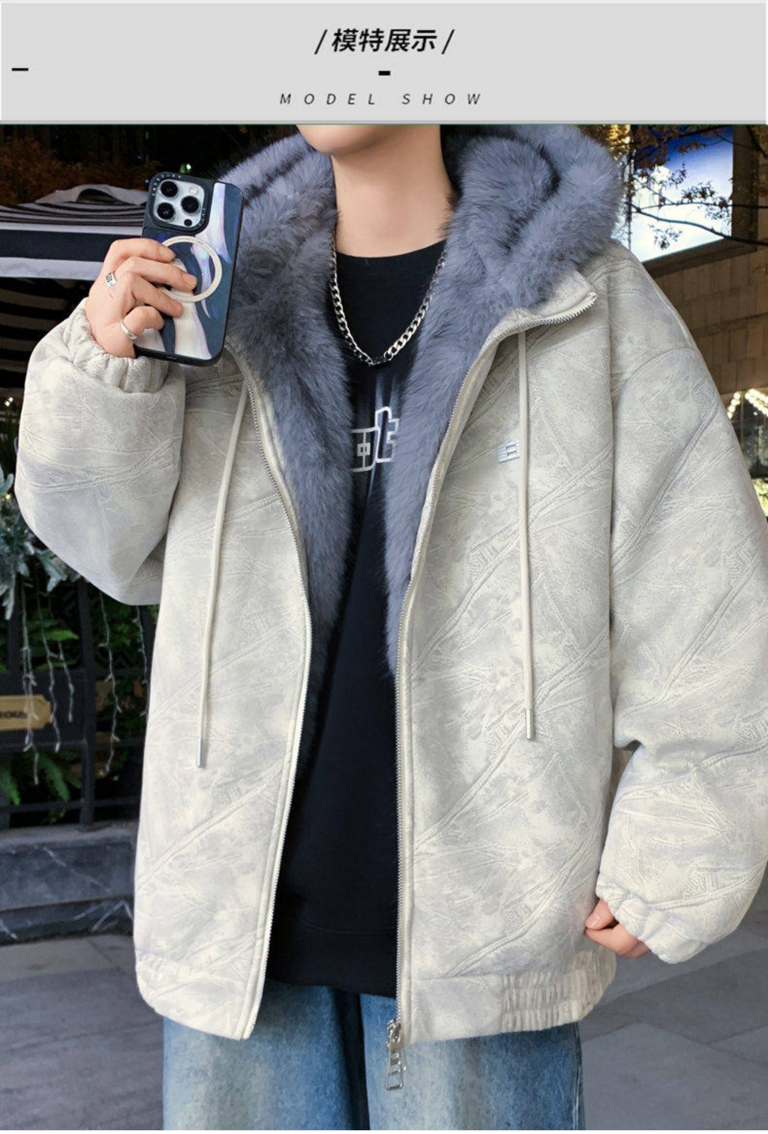 2025 Winter New Hooded Fleece-Lined Thickened Suede Cotton Jacket for Men, Teenagers, and Students