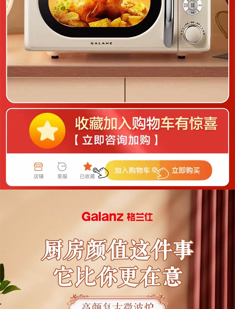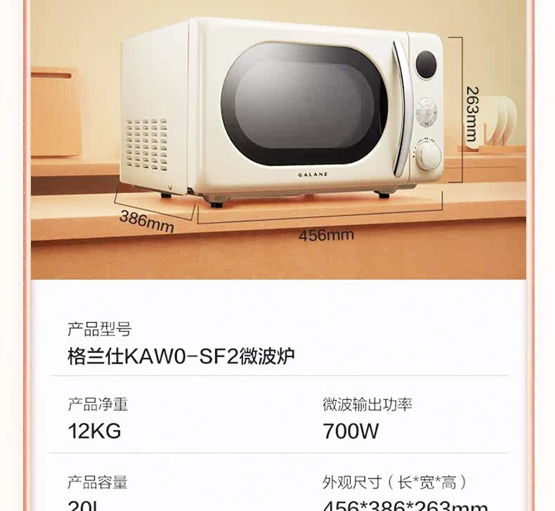 Galanz Kaw0-Sf2 Microwave Oven, Retro High Aesthetic Value, Fresh and Simple Off-White Color, Multifunctional All-In-One