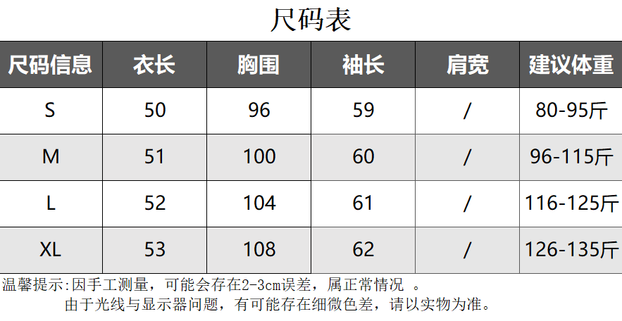 Size (cm) 42 44 46 48 50