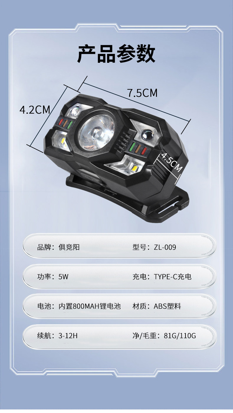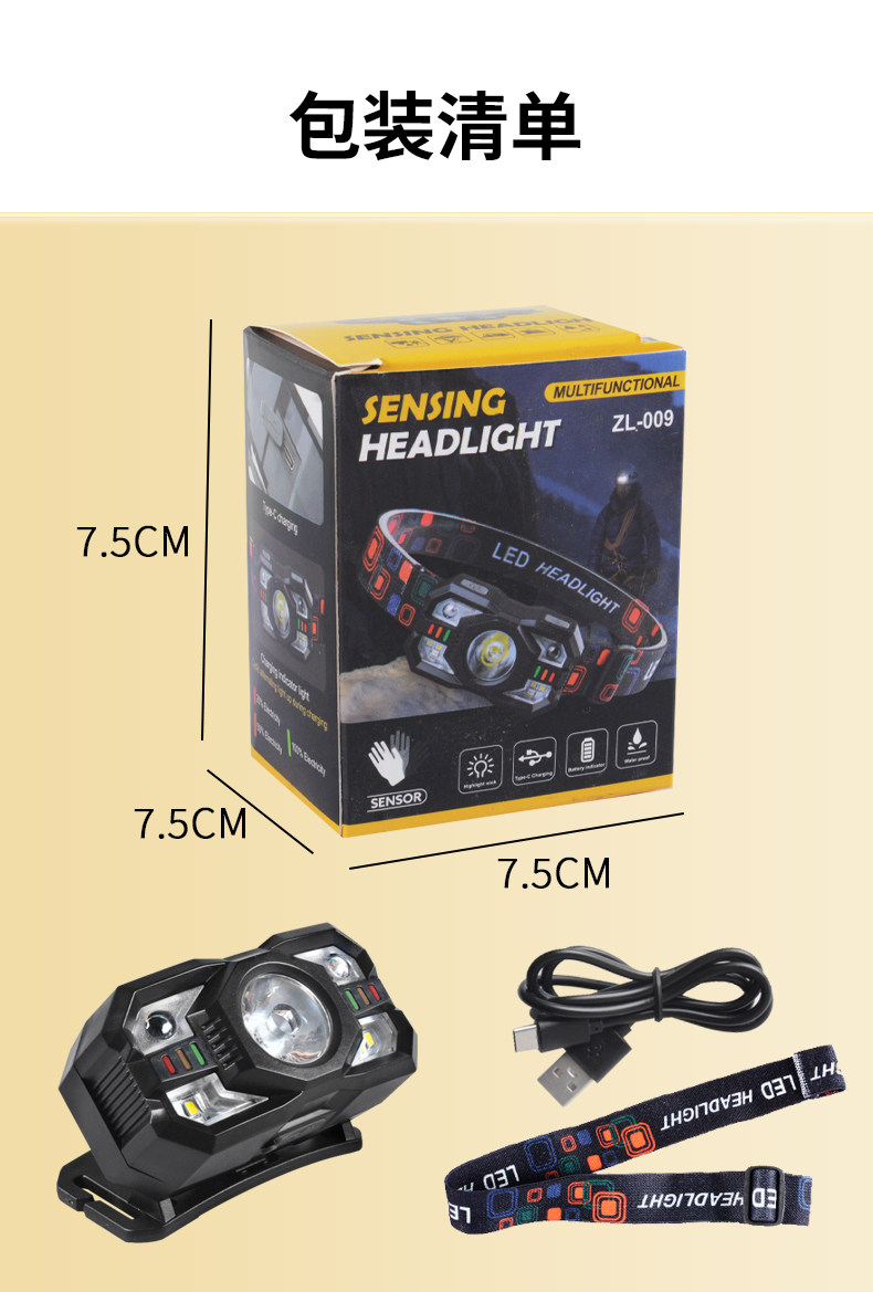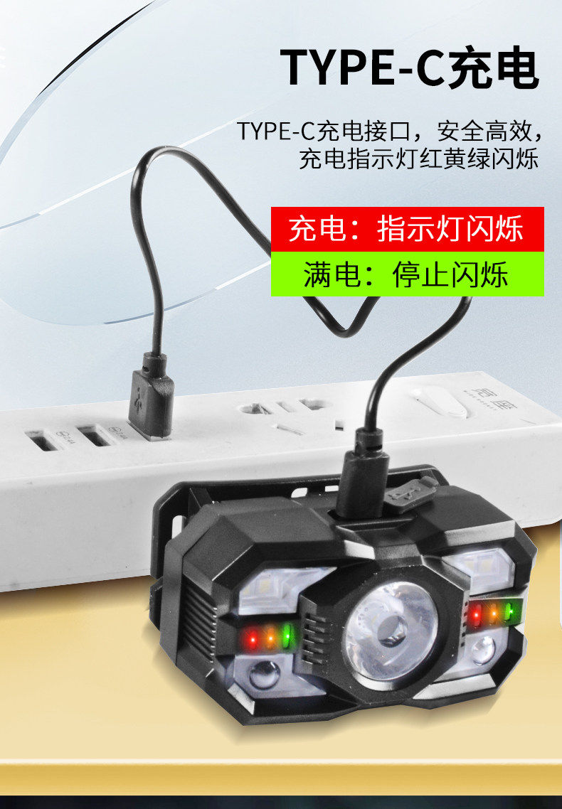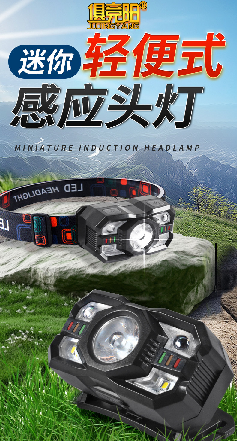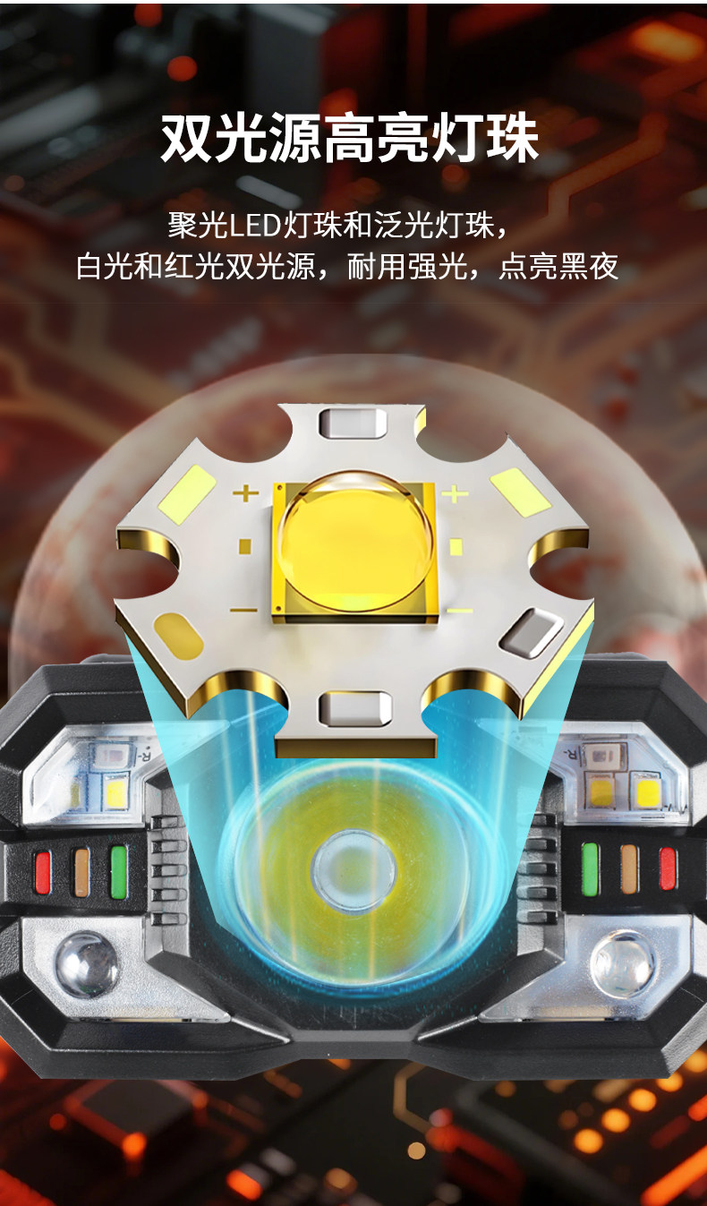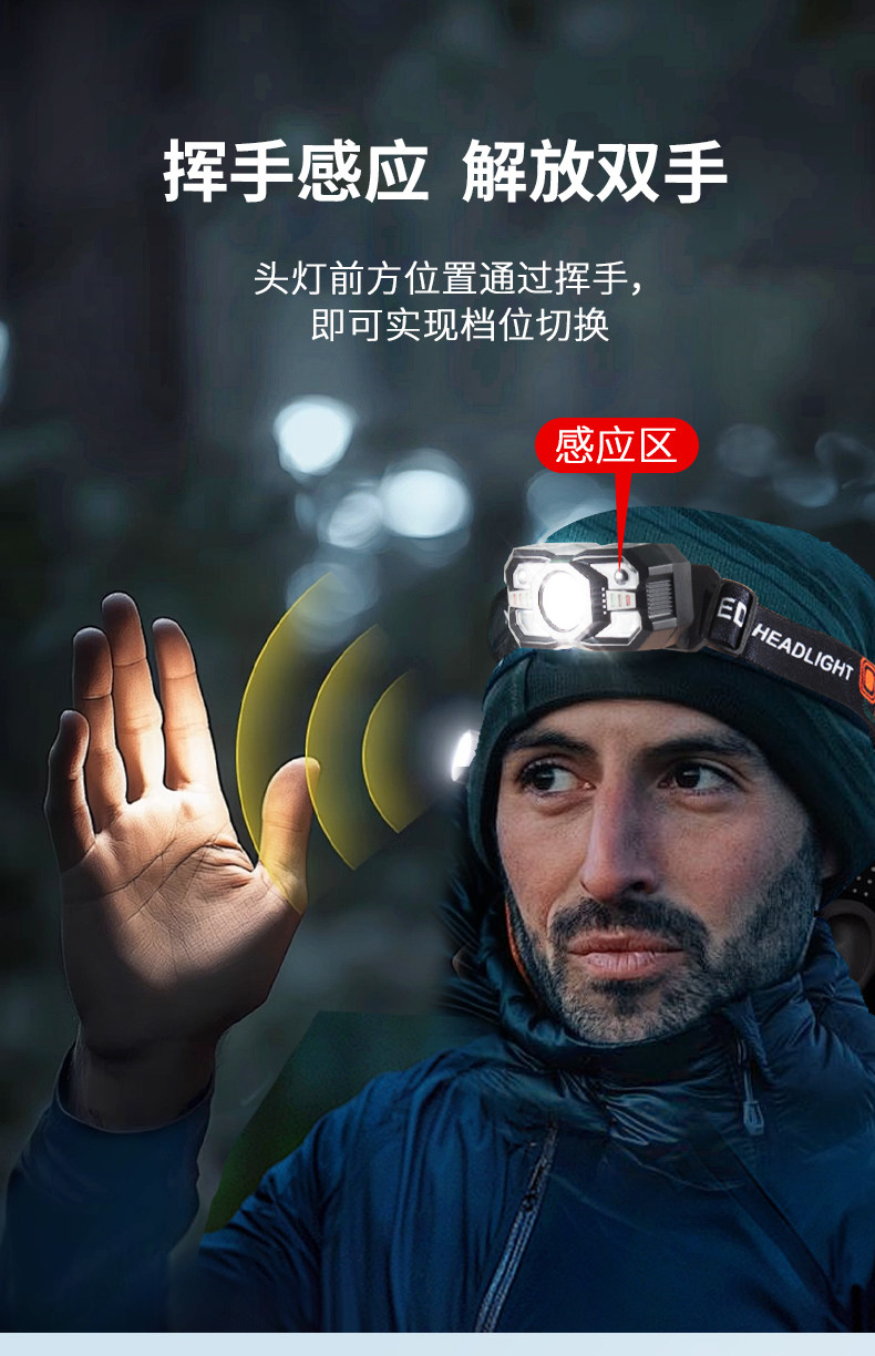 Induction Headlamp with Red and White Dual Light Sources, Ultra-Light and Portable Led Light, Rechargeable, Super Bright, Long-Lasting for Camping, Patrolling, and Beekeeping