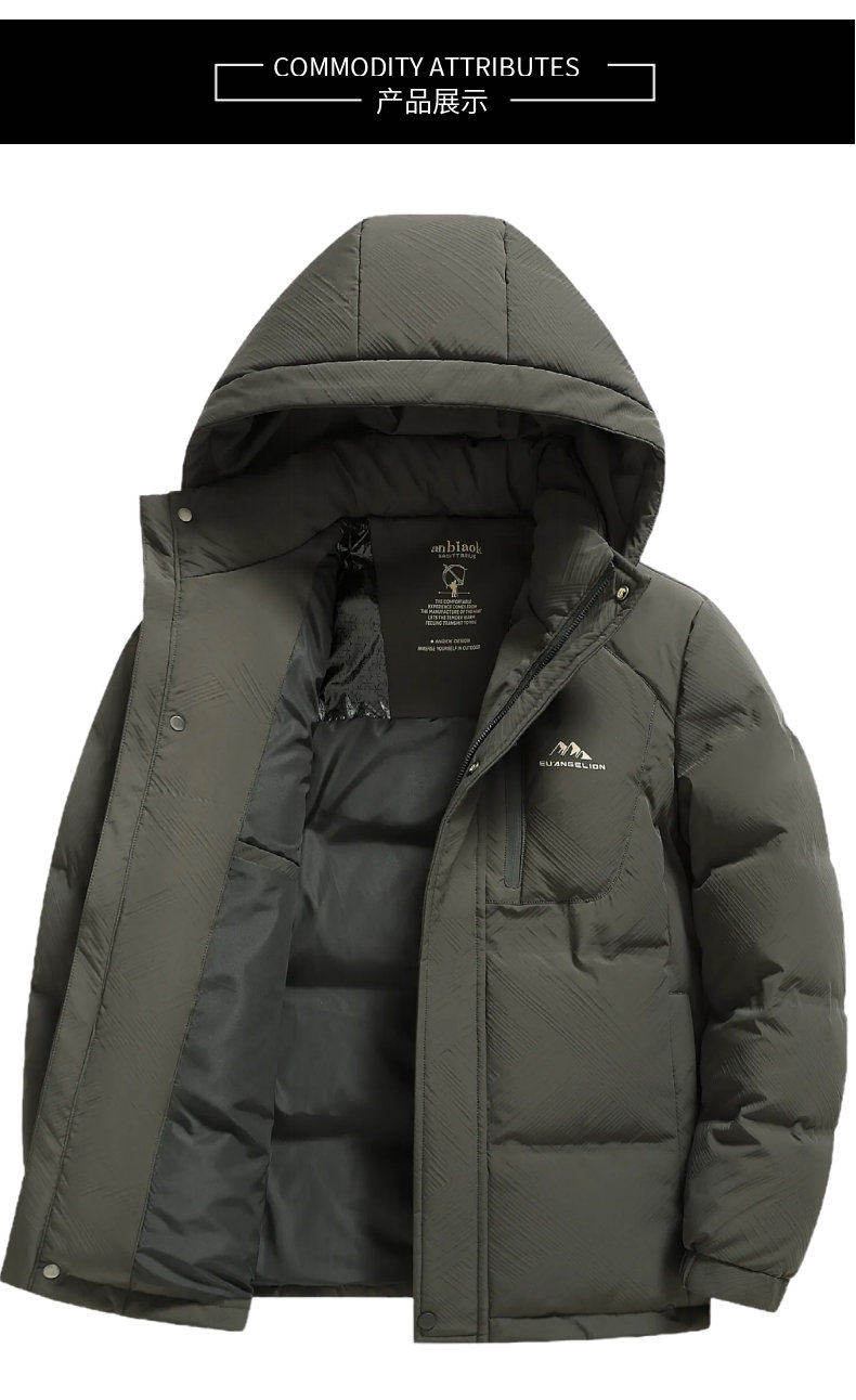 Woodpecker 2025 winter new men's thickened down jacket hooded high-fill velvet Northeast warm middle-aged dad jacket
