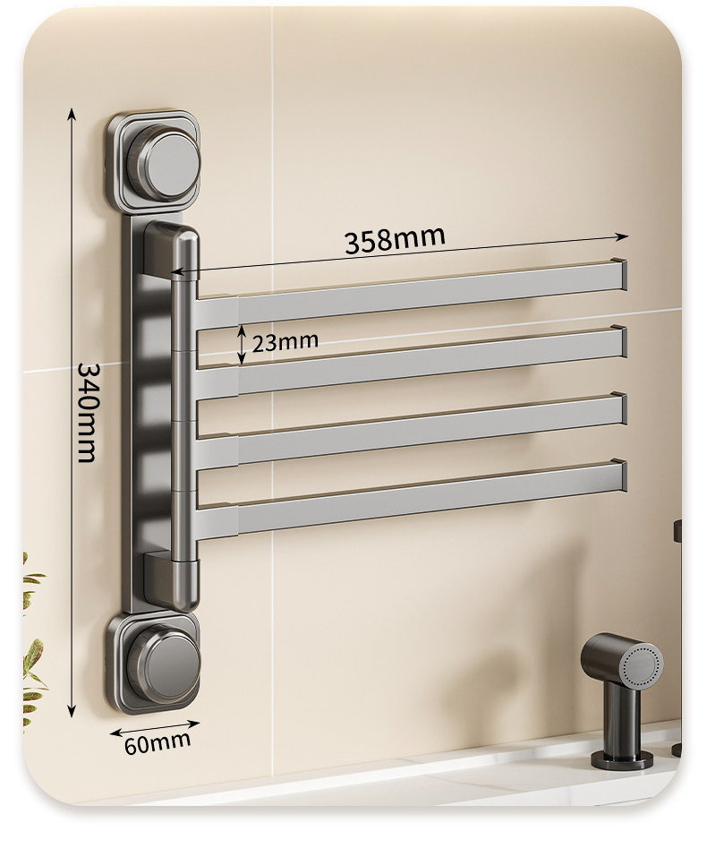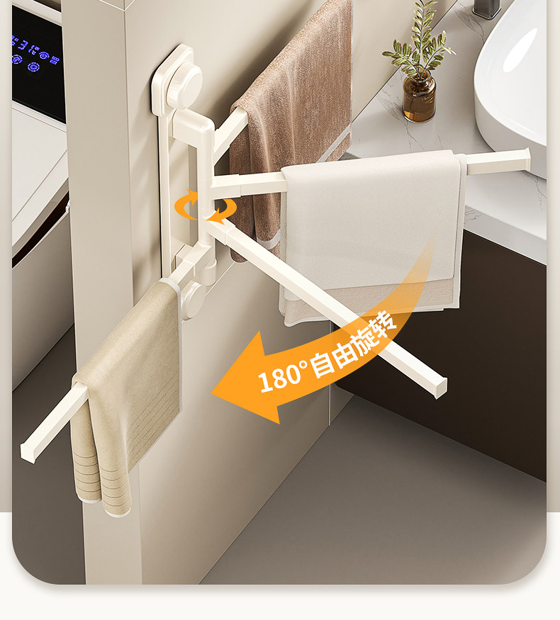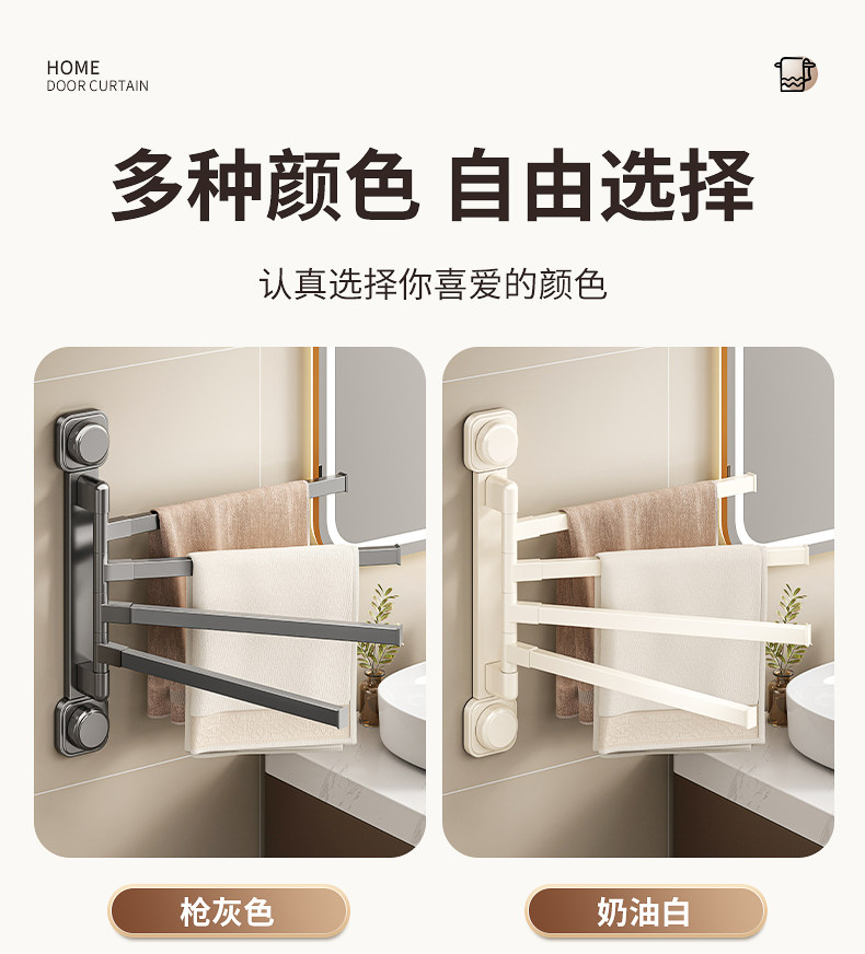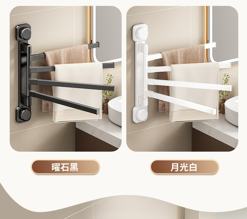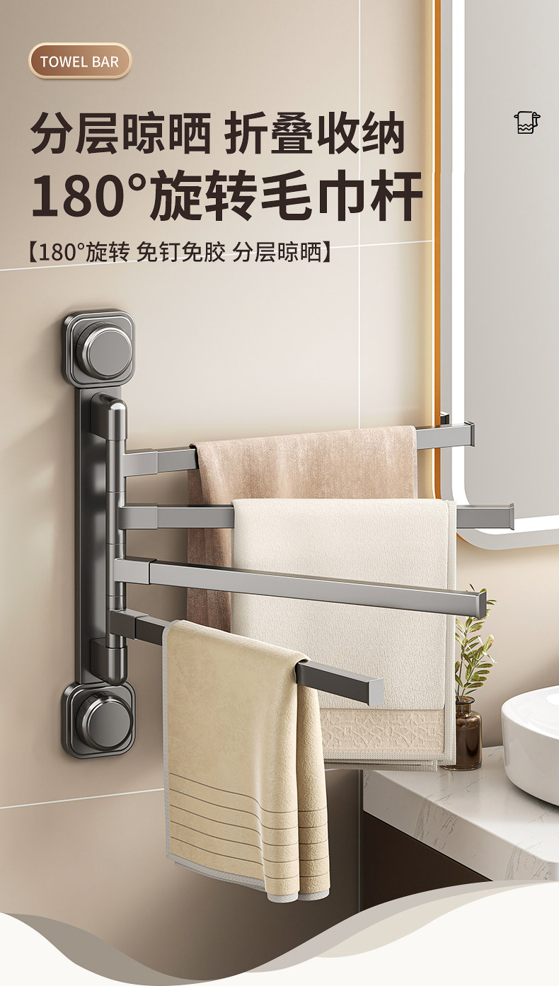 Rotating multi-rod towel rack bathroom punch-free towel storage rack wall-mounted bathroom corner towel hanging rod