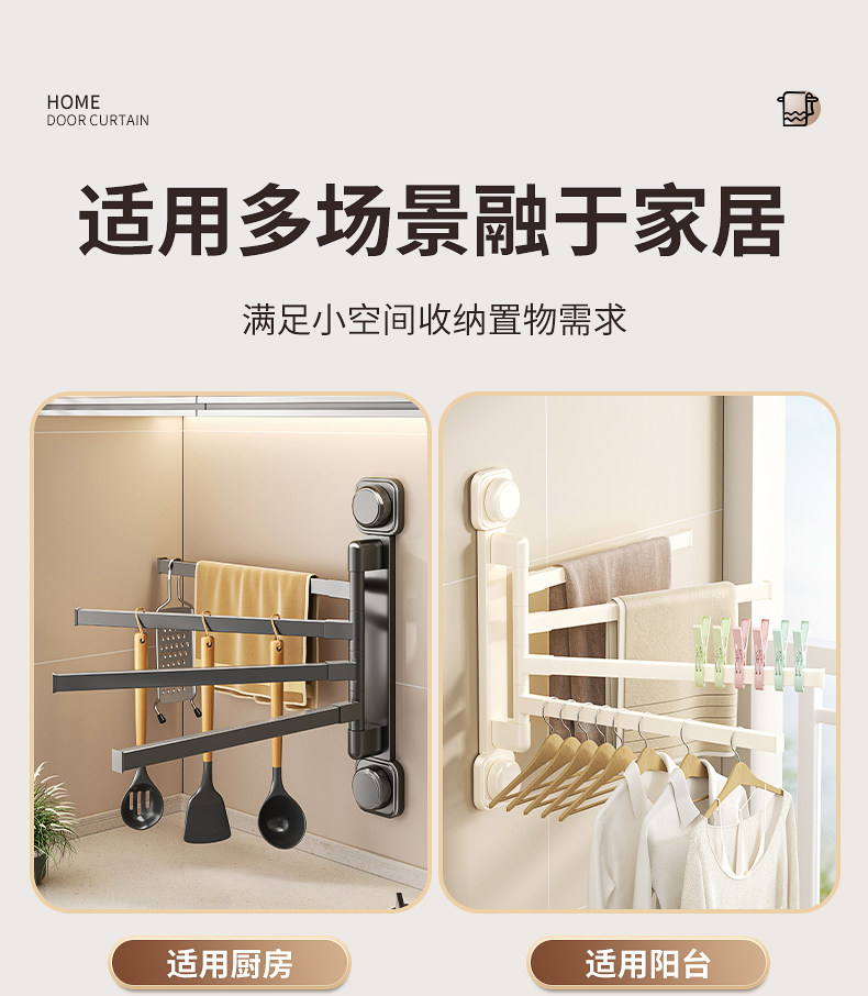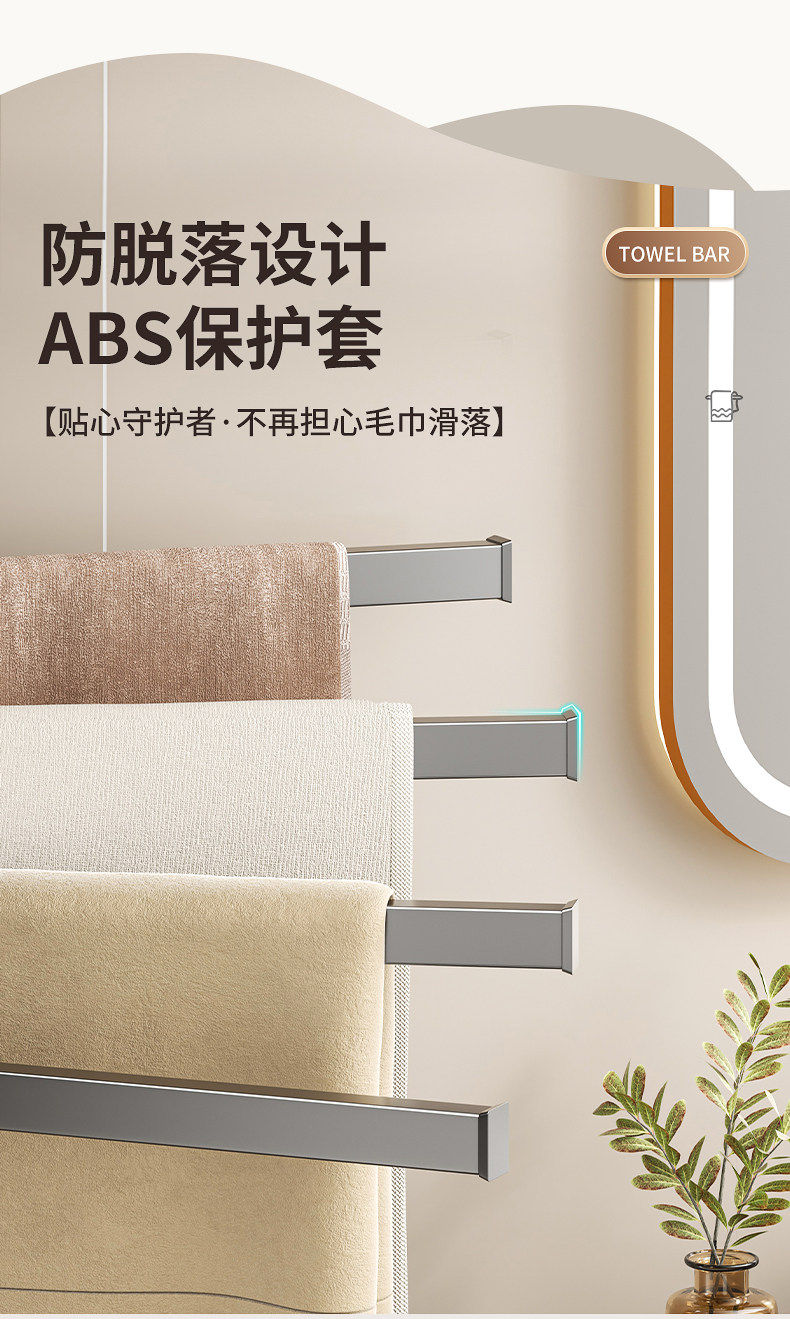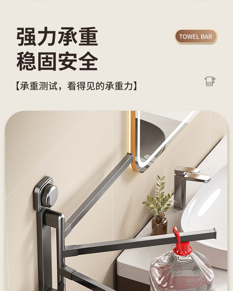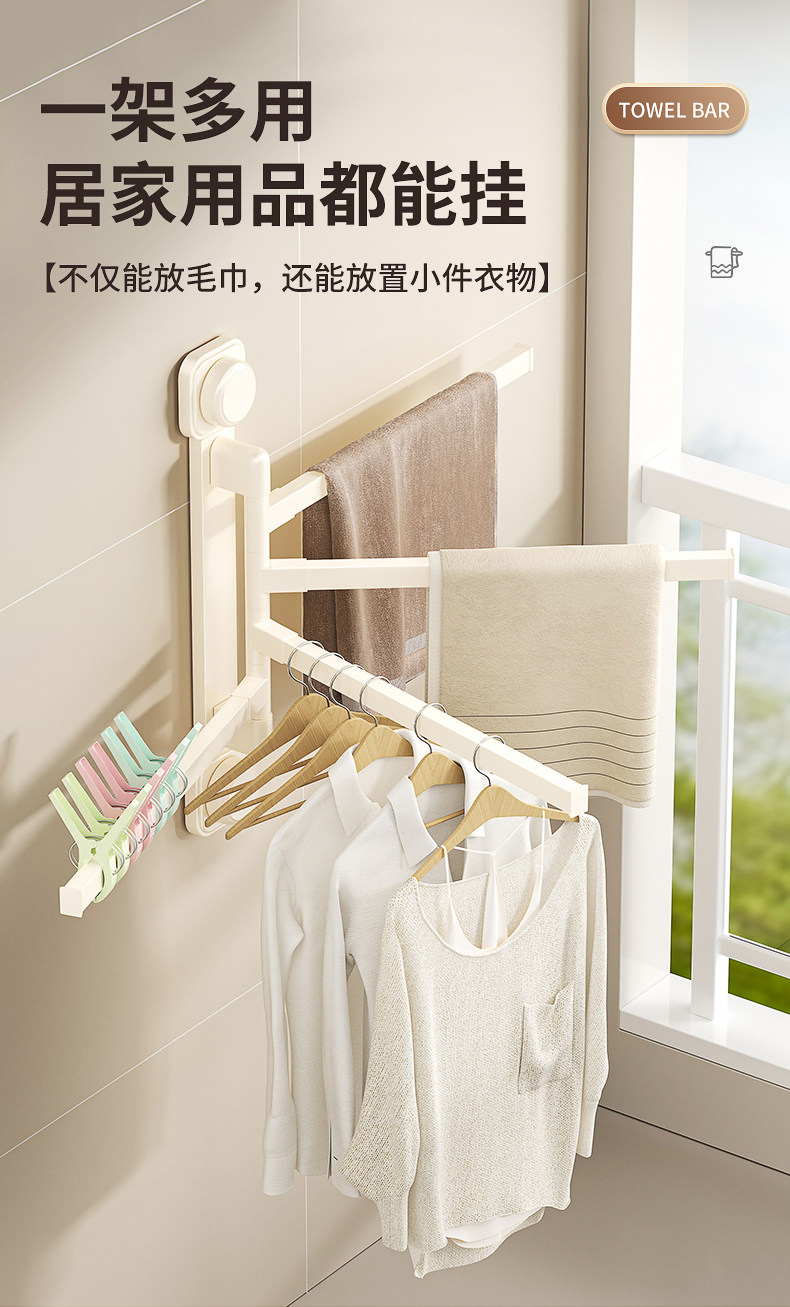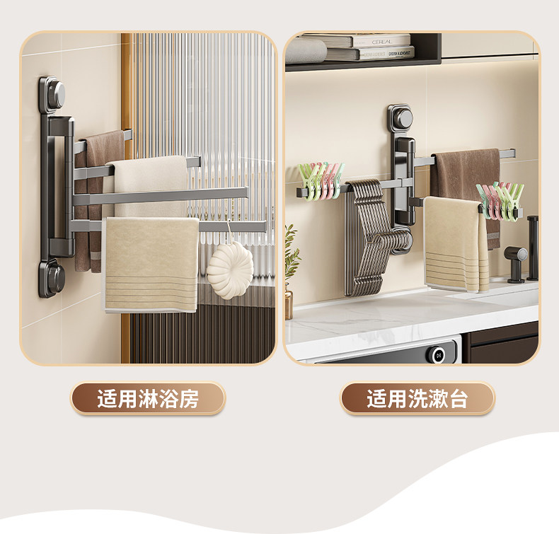 Rotating multi-rod towel rack bathroom punch-free towel storage rack wall-mounted bathroom corner towel hanging rod