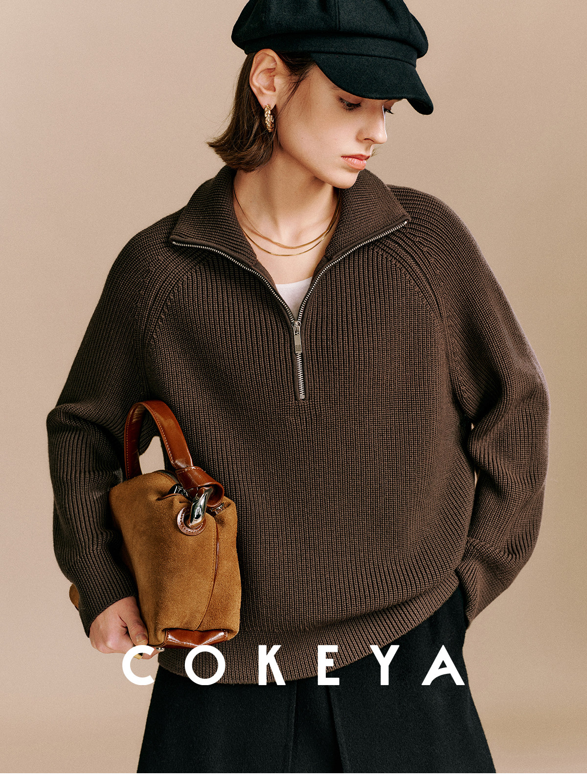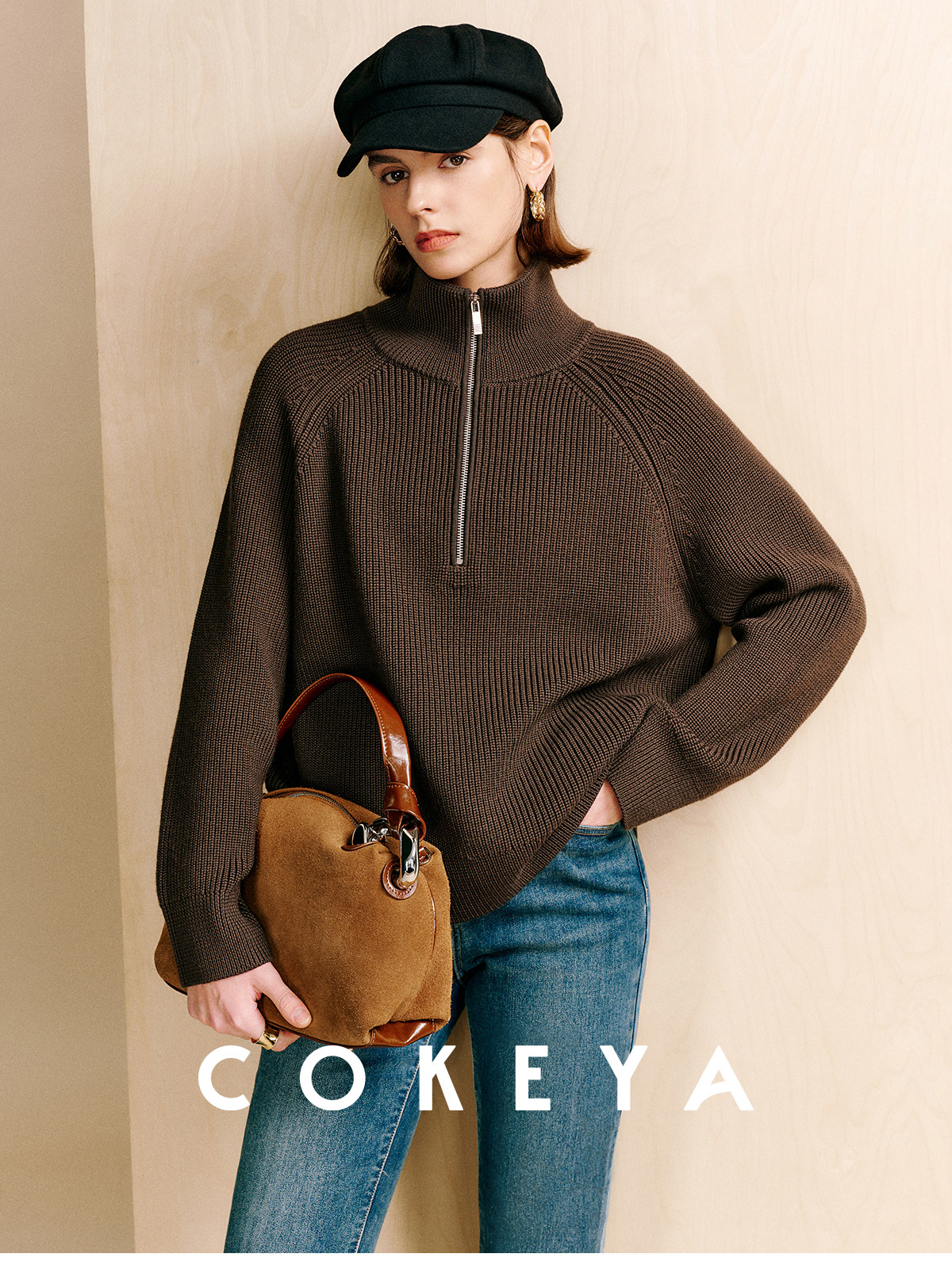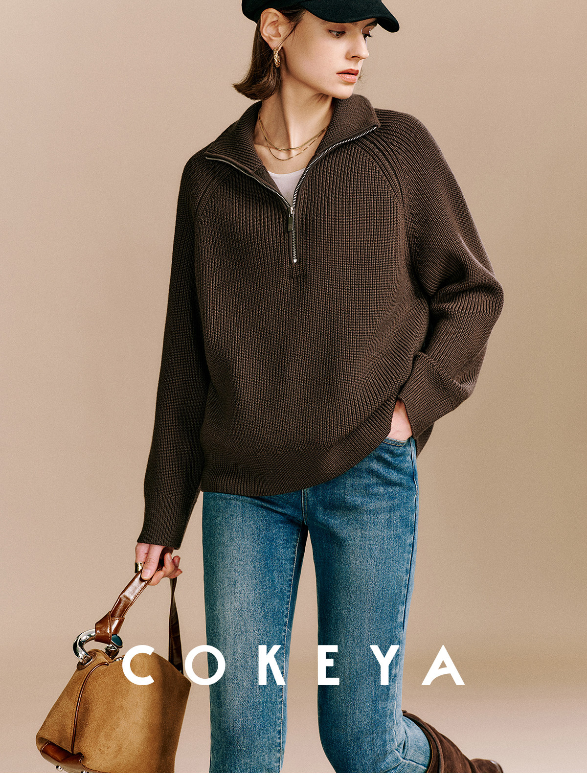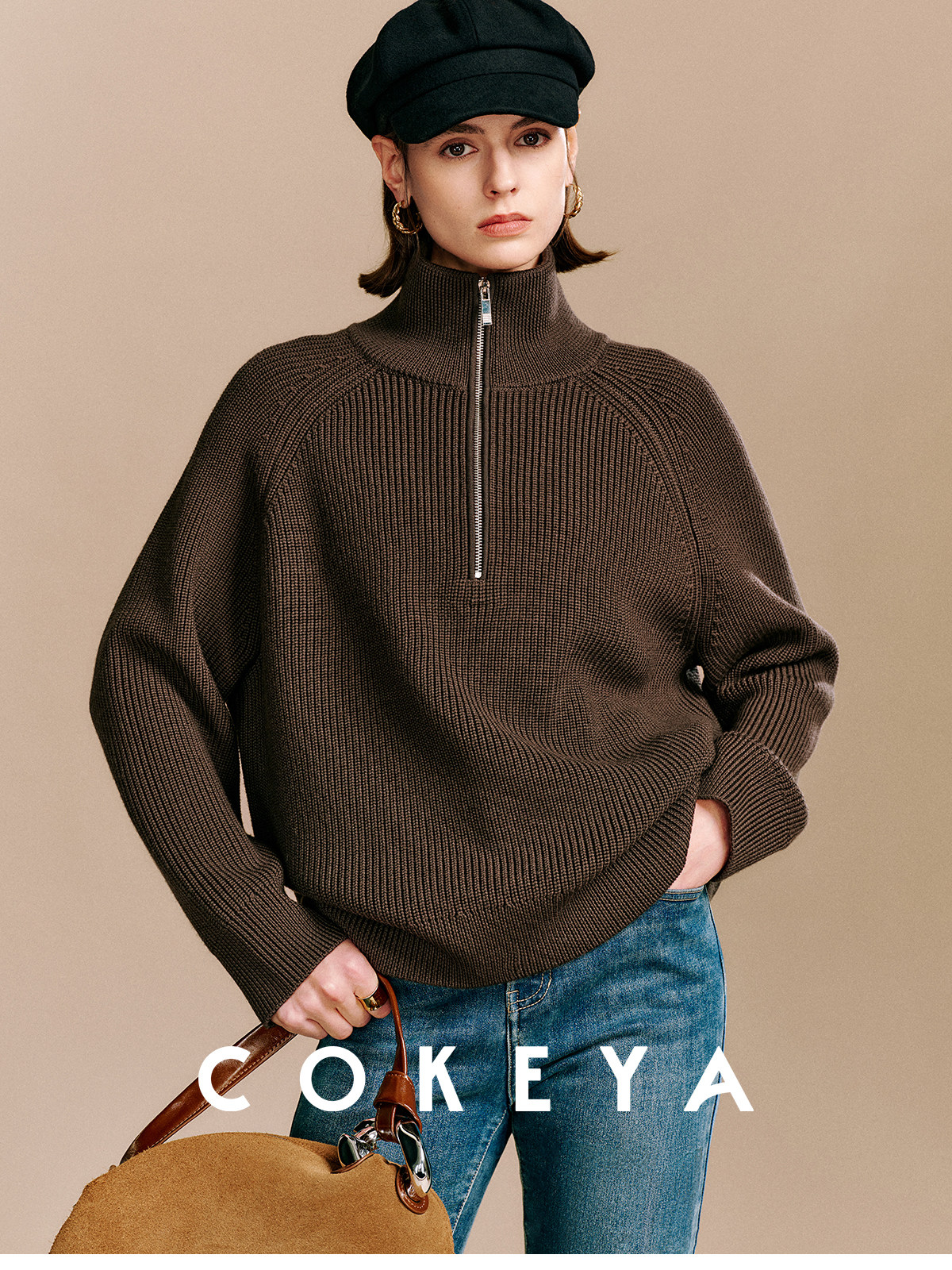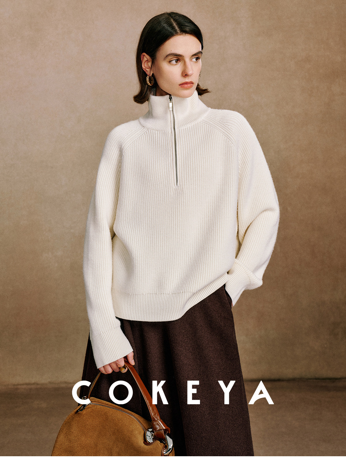 Cokeya/Paris Showcase~ Thickened 48-Count German Yangzi Yarn Wool Zipper Collar Knit Sweater for Women, Spring Sweater