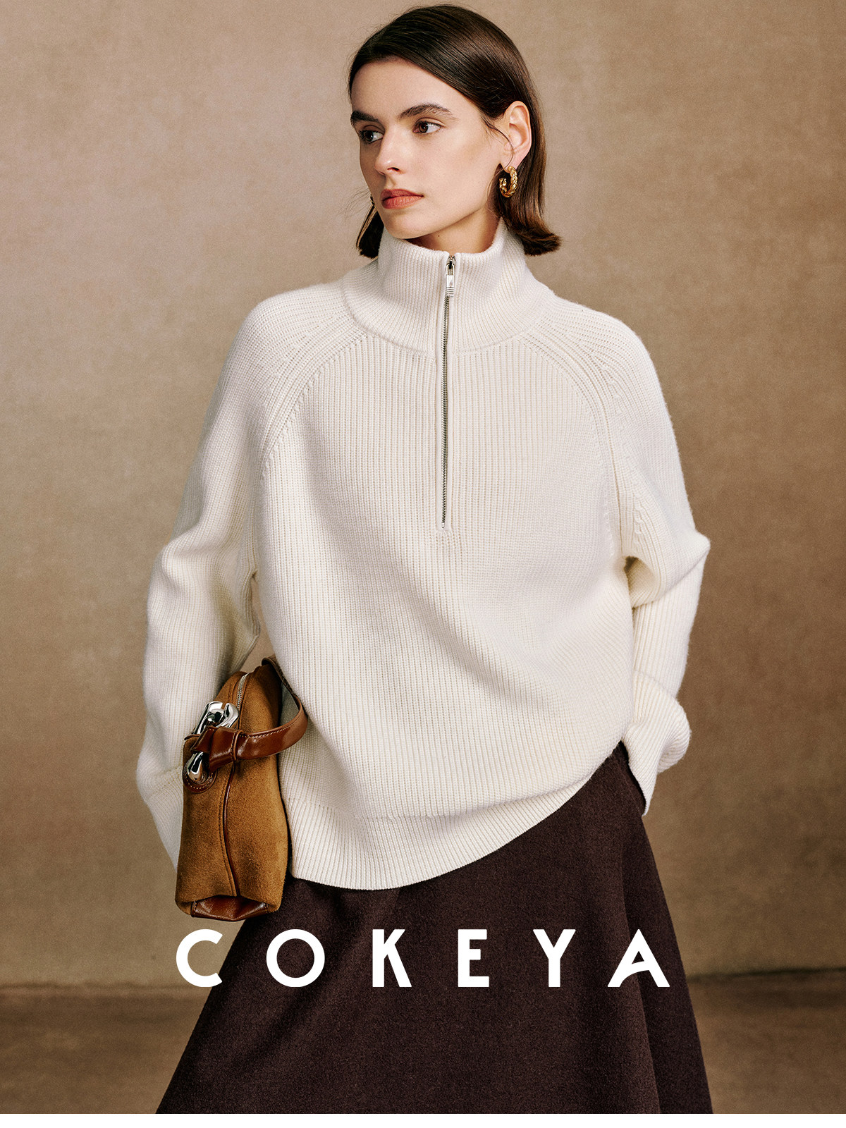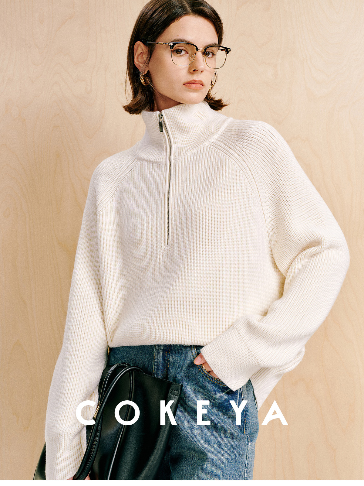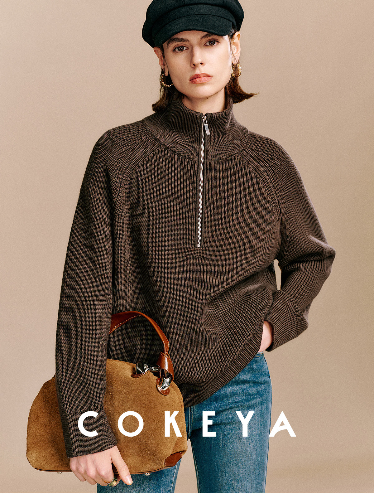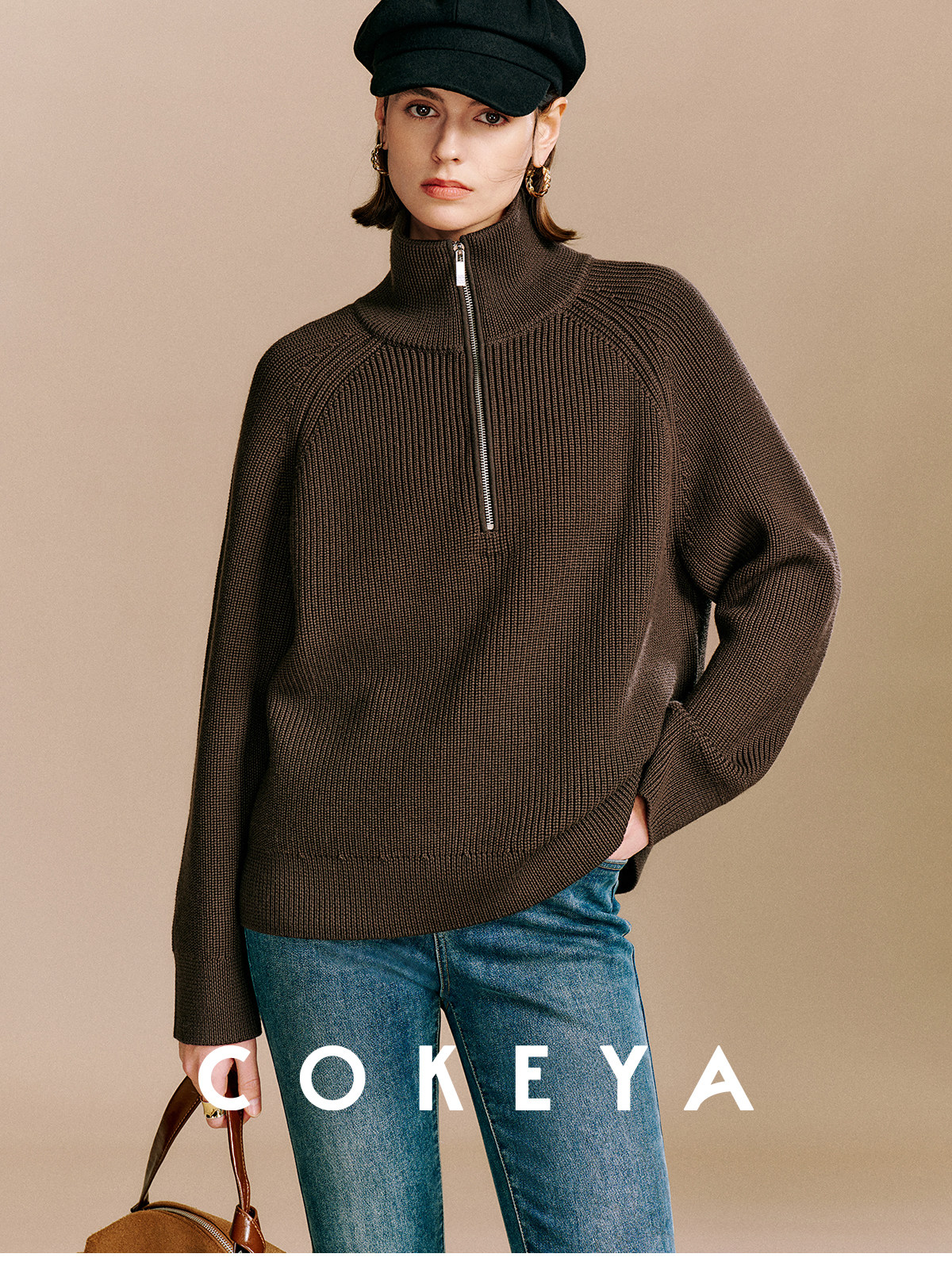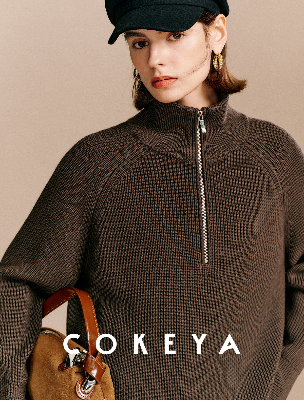 Cokeya/Paris Showcase~ Thickened 48-Count German Yangzi Yarn Wool Zipper Collar Knit Sweater for Women, Spring Sweater
