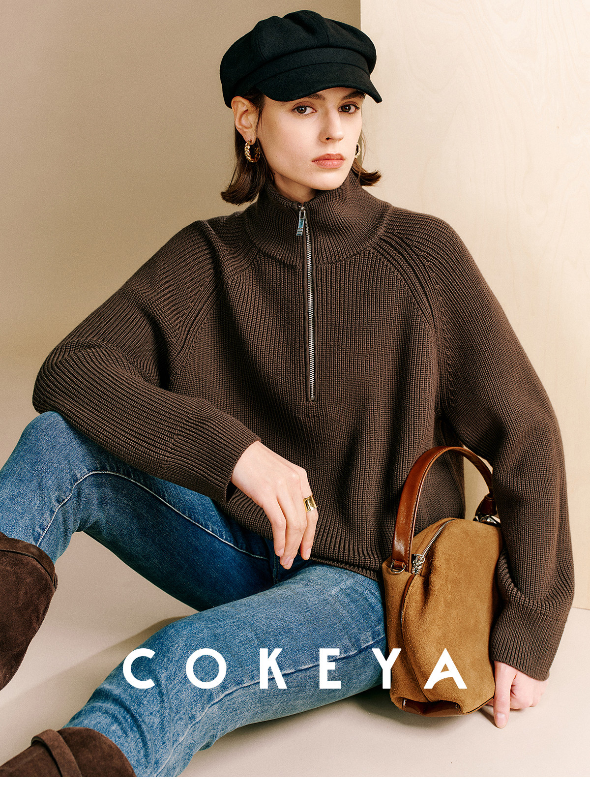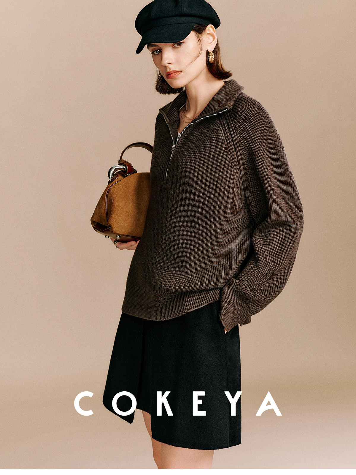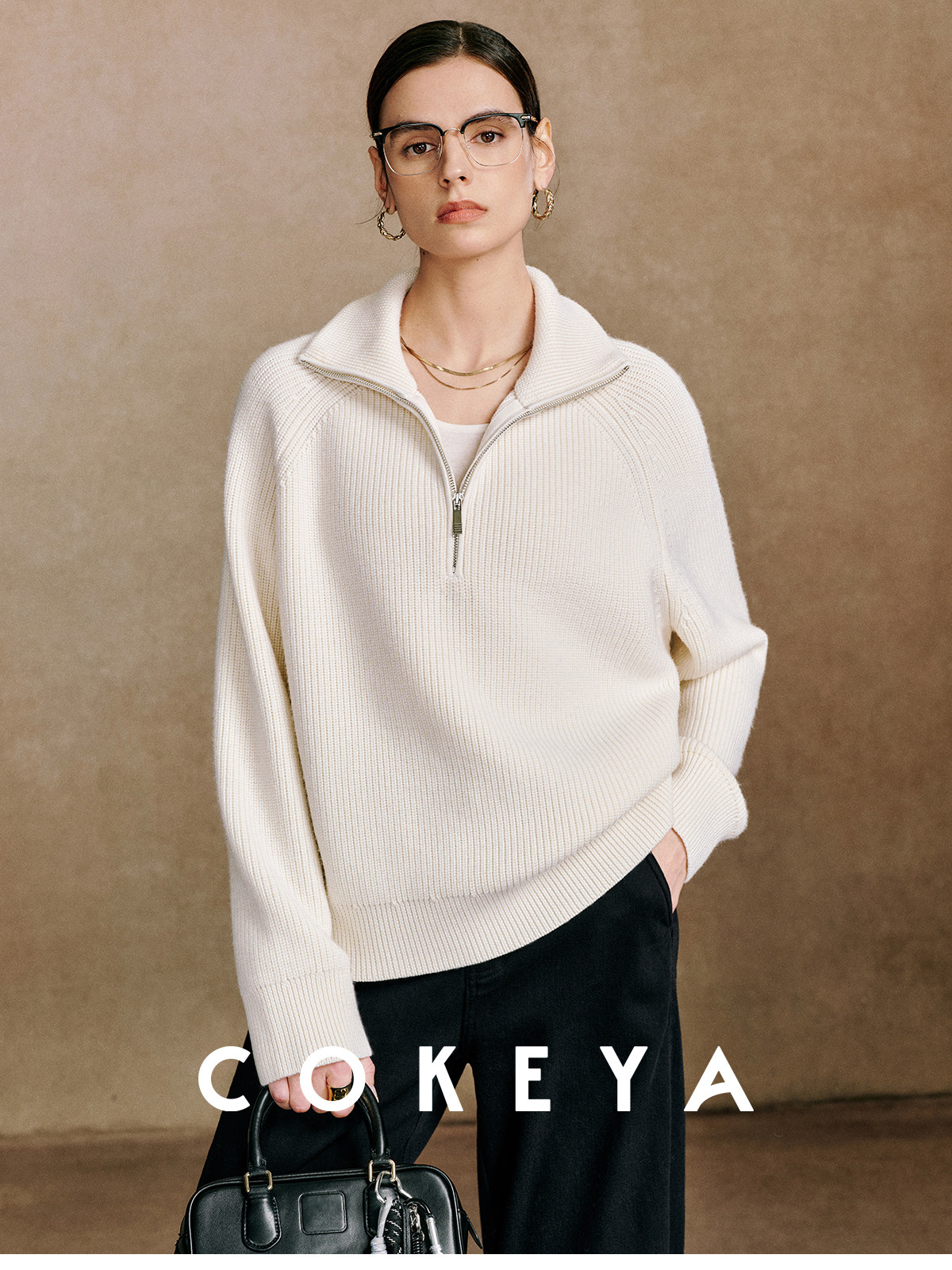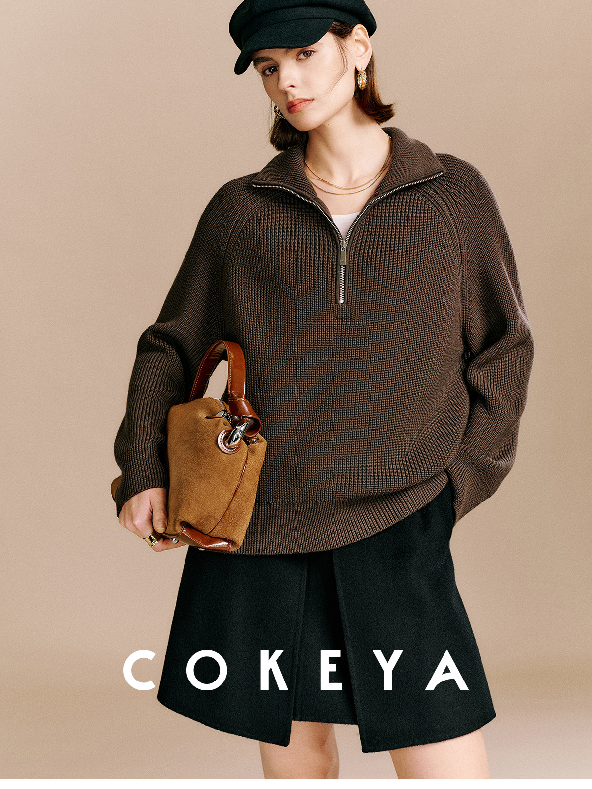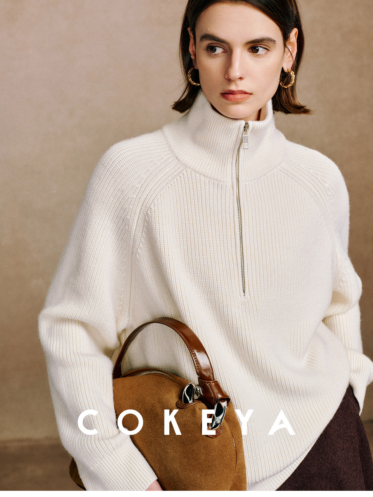 Cokeya/Paris Showcase~ Thickened 48-Count German Yangzi Yarn Wool Zipper Collar Knit Sweater for Women, Spring Sweater