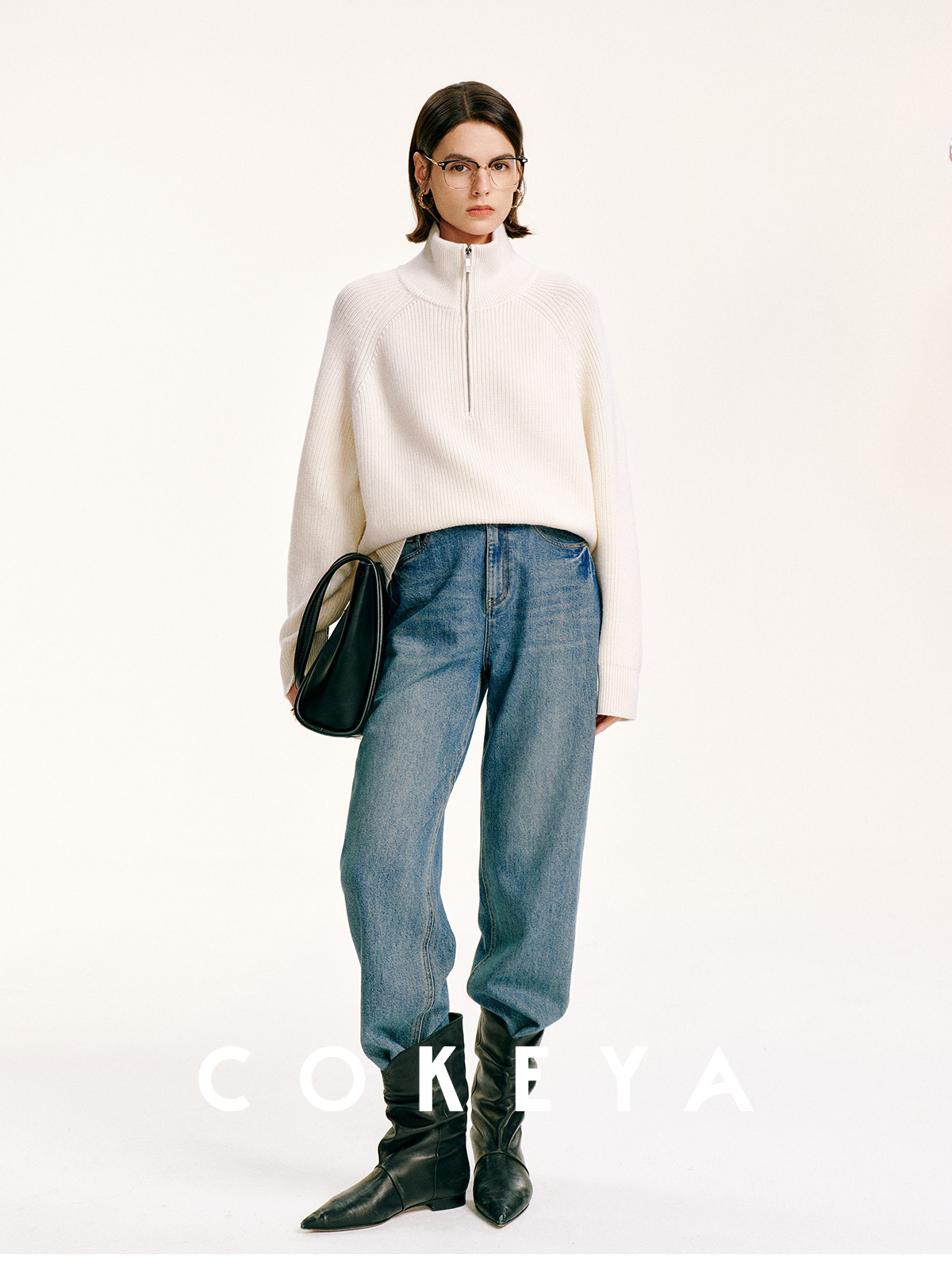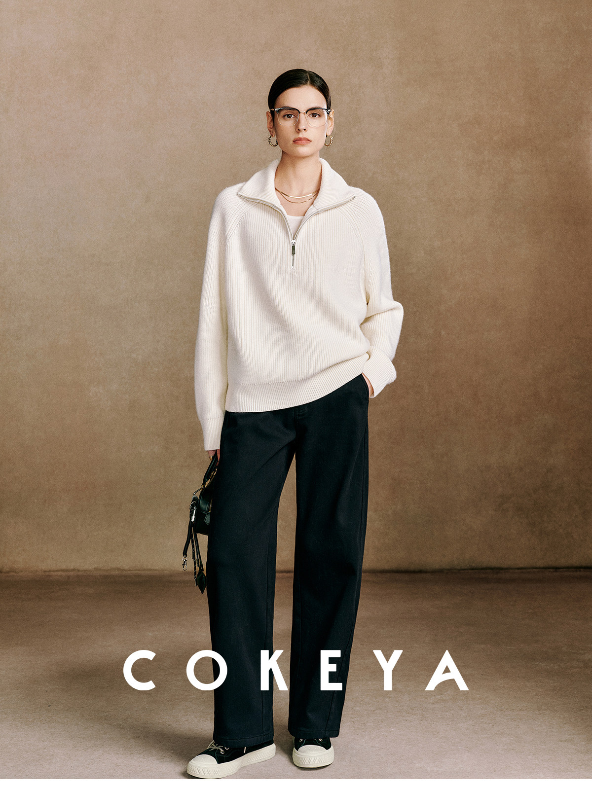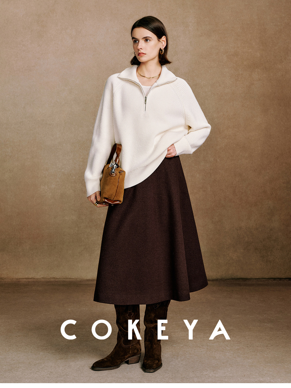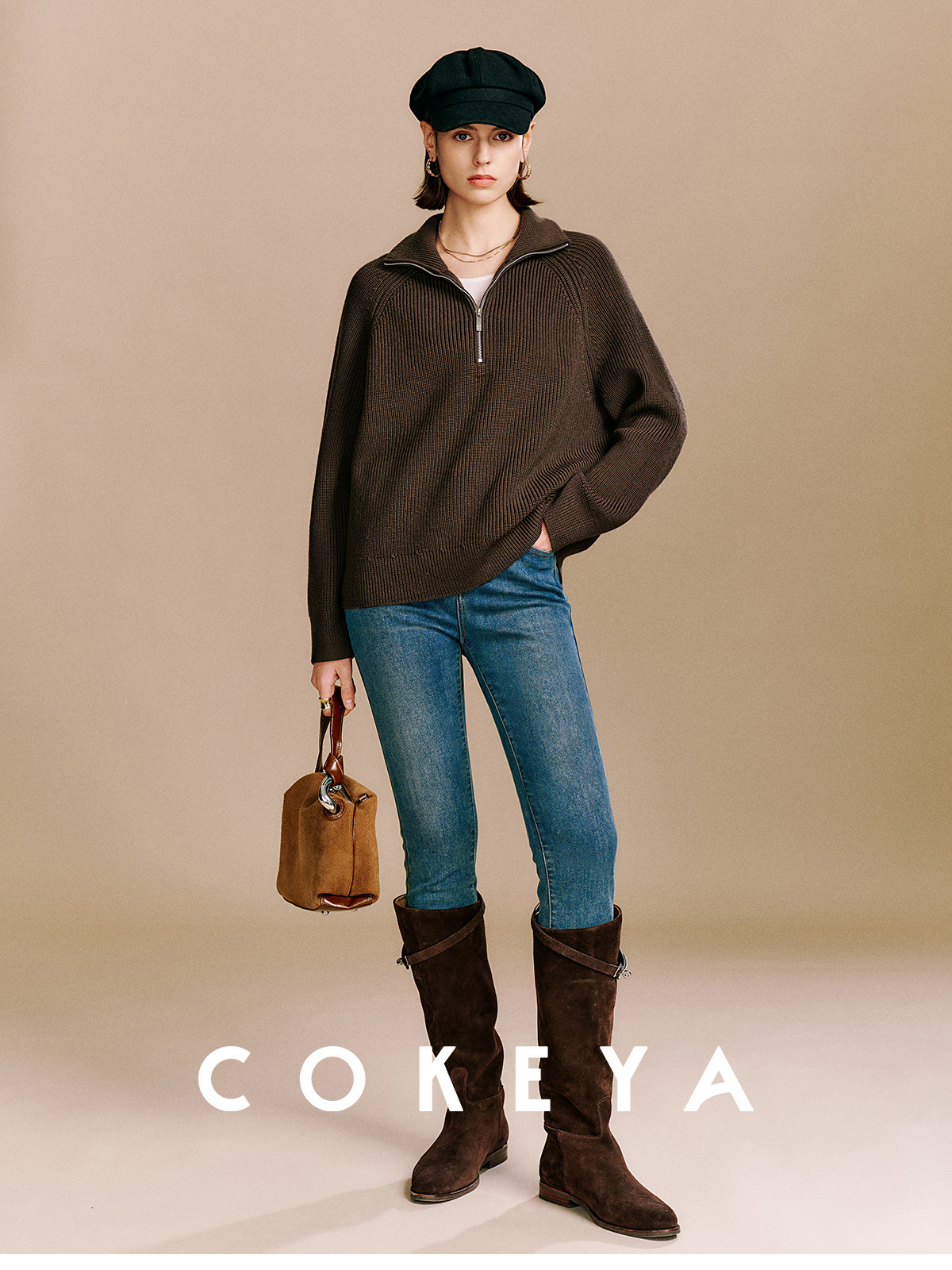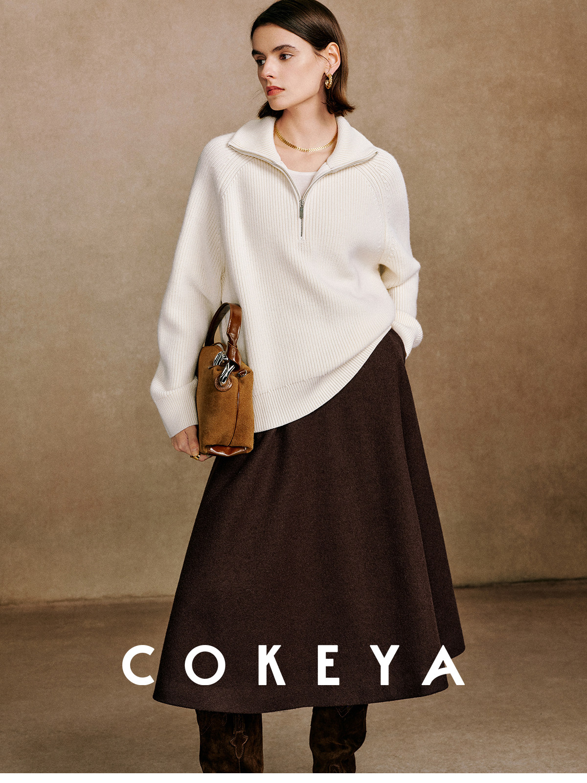 Cokeya/Paris Showcase~ Thickened 48-Count German Yangzi Yarn Wool Zipper Collar Knit Sweater for Women, Spring Sweater