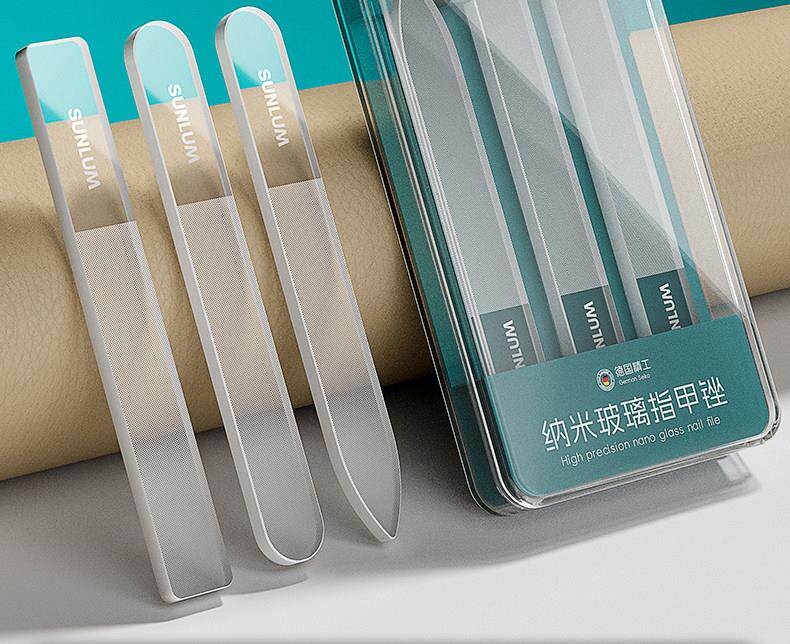 Sort by color Nano glass nail polish three-piece set,New 3D curved manicure and brightening file set comes with storage box