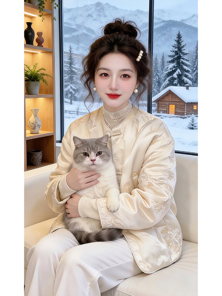 New Chinese-Style Light National Style Warm Padded Jacket for Women, 2026 Winter, Chanel-Style, with Button Closure, Heavy Embroidery, Thickened Cotton Coat