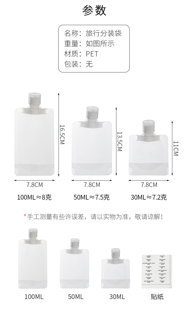 Travel lotion bag Skin care cosmetics Mo Shampoo shower gel portable storage bag disposable sample bottle