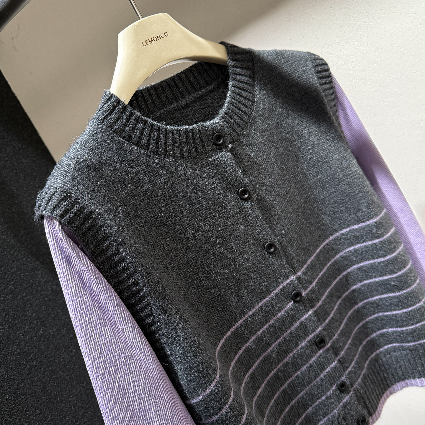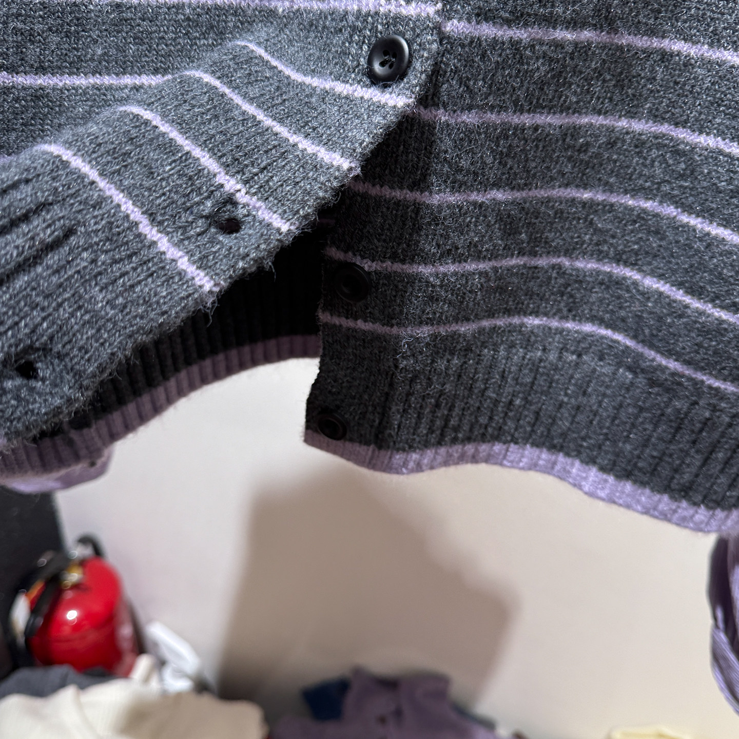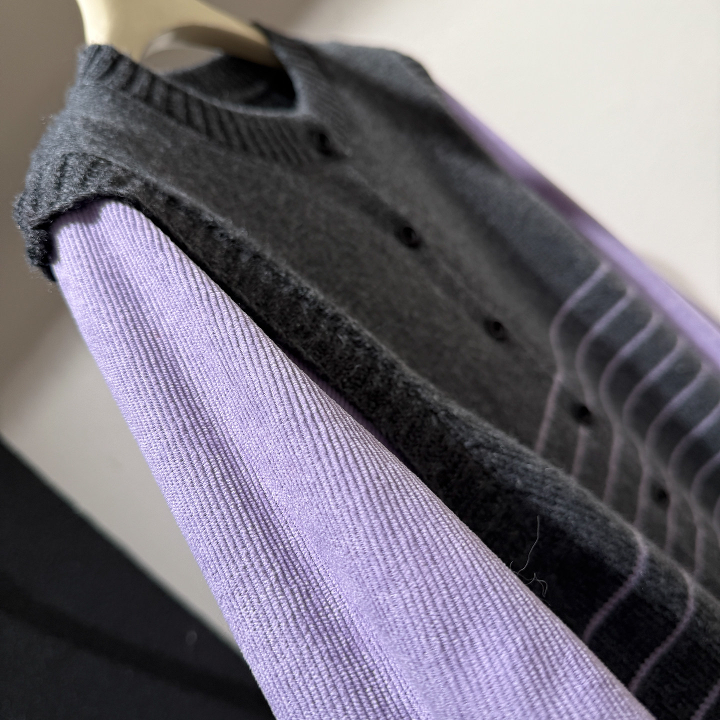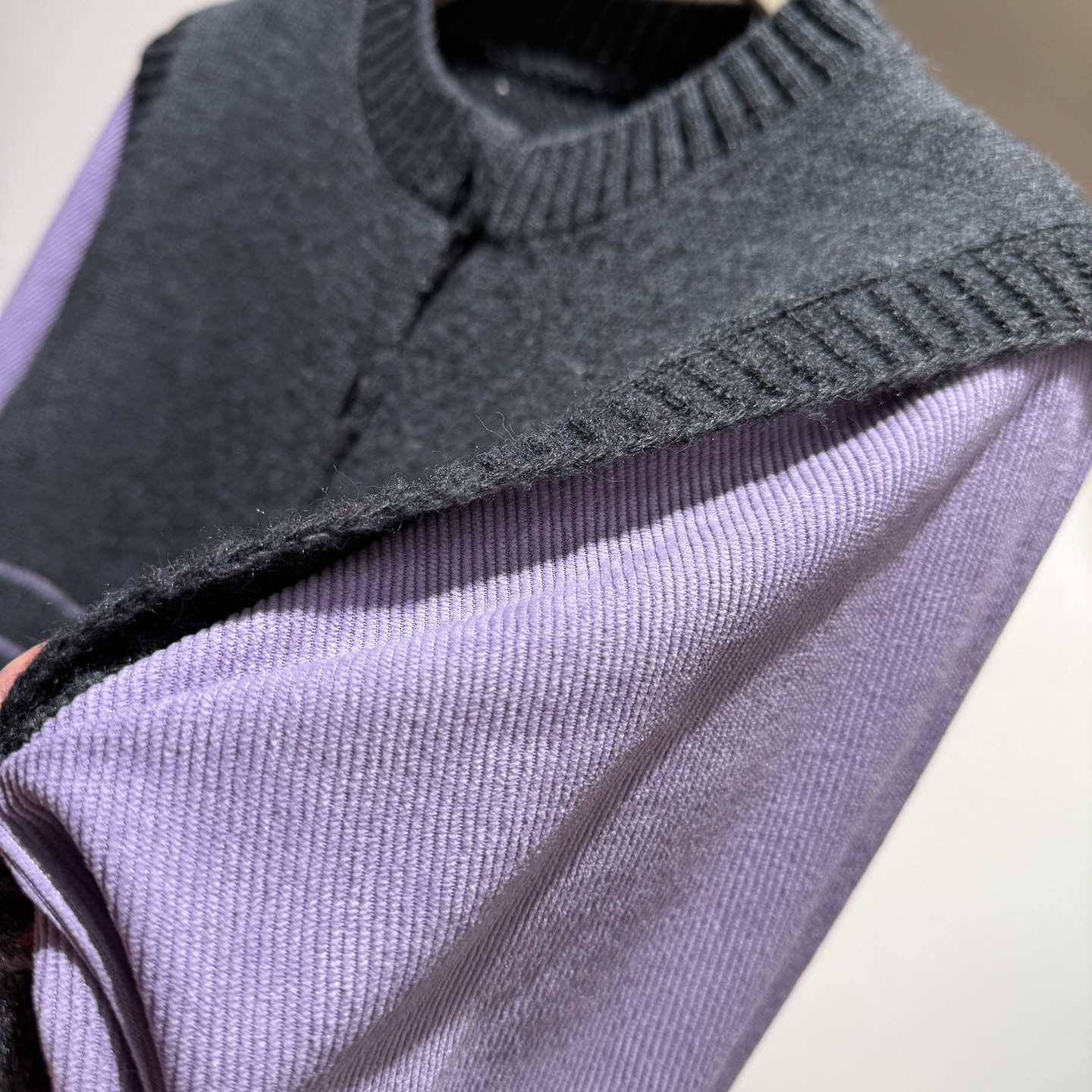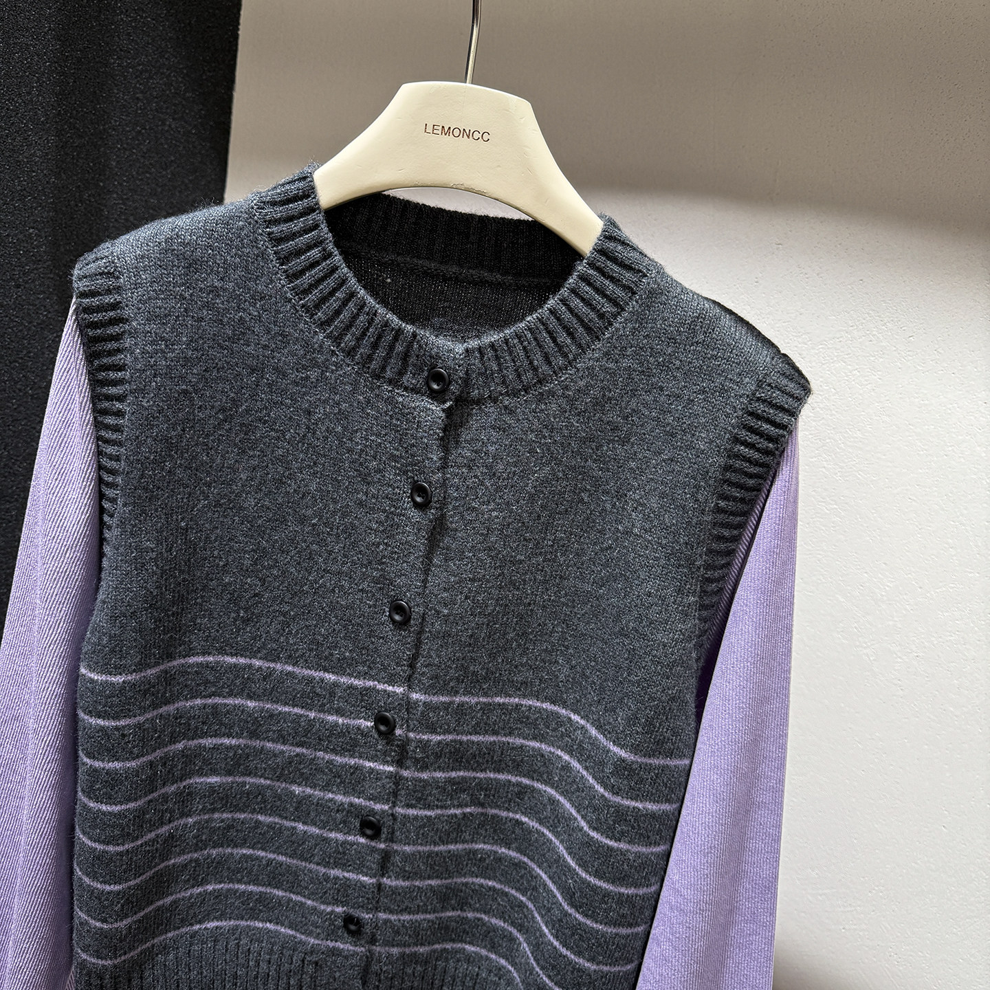 Fashionable temperament, age-reducing, lazy style, round neck, loose patchwork corduroy shirt, fake two-piece striped sweater, cardigan for women