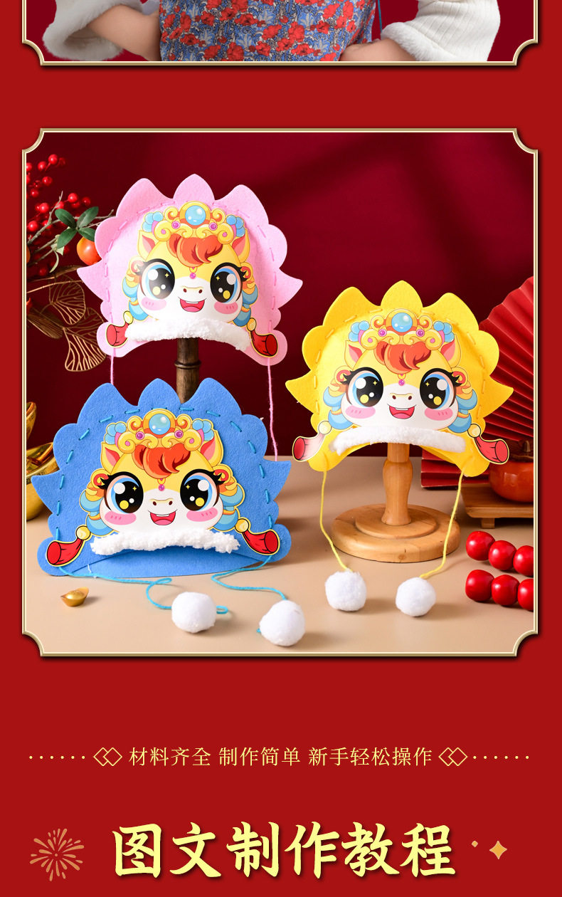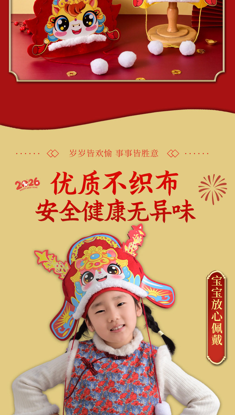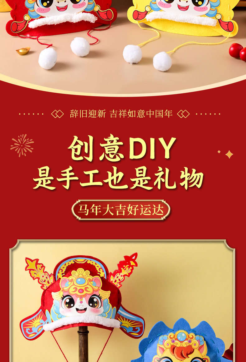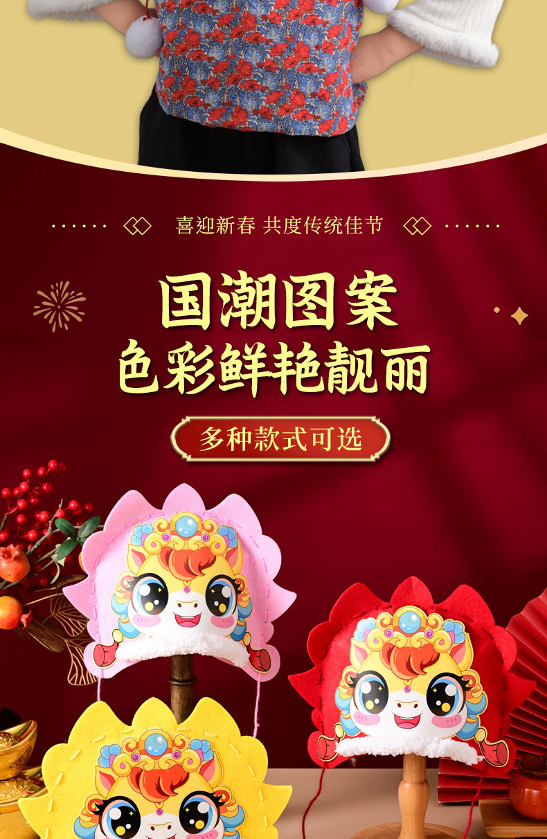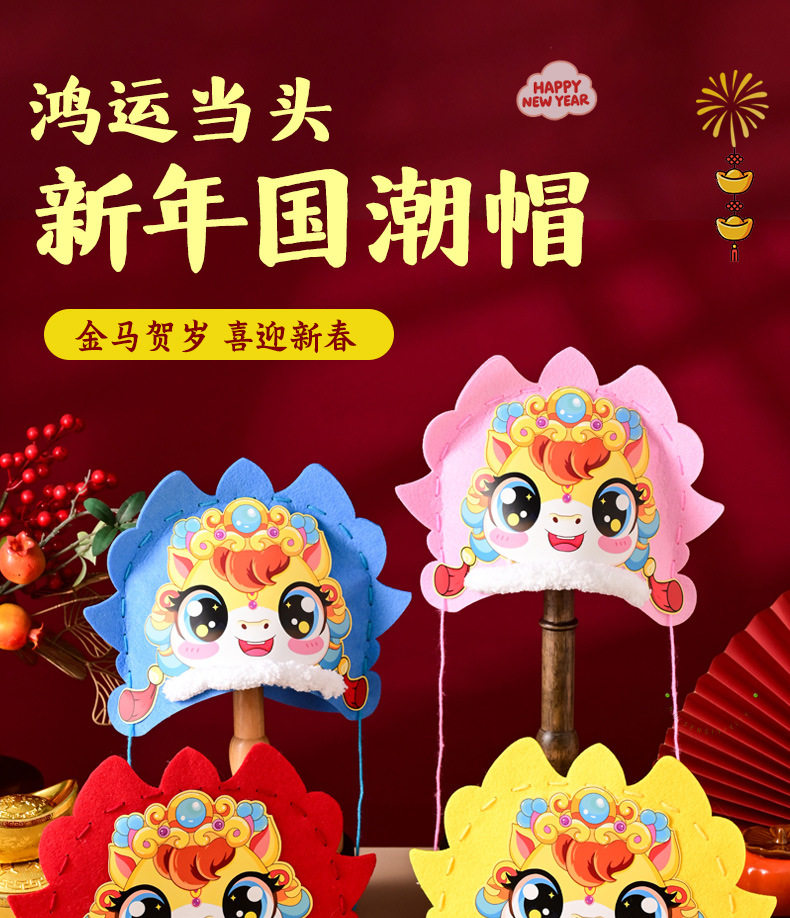 2026 New Year Horse Head Hat Horse Year Headwear Props Children's Spring Festival Parent-Child New Year's Day DIY Craft Material Kit