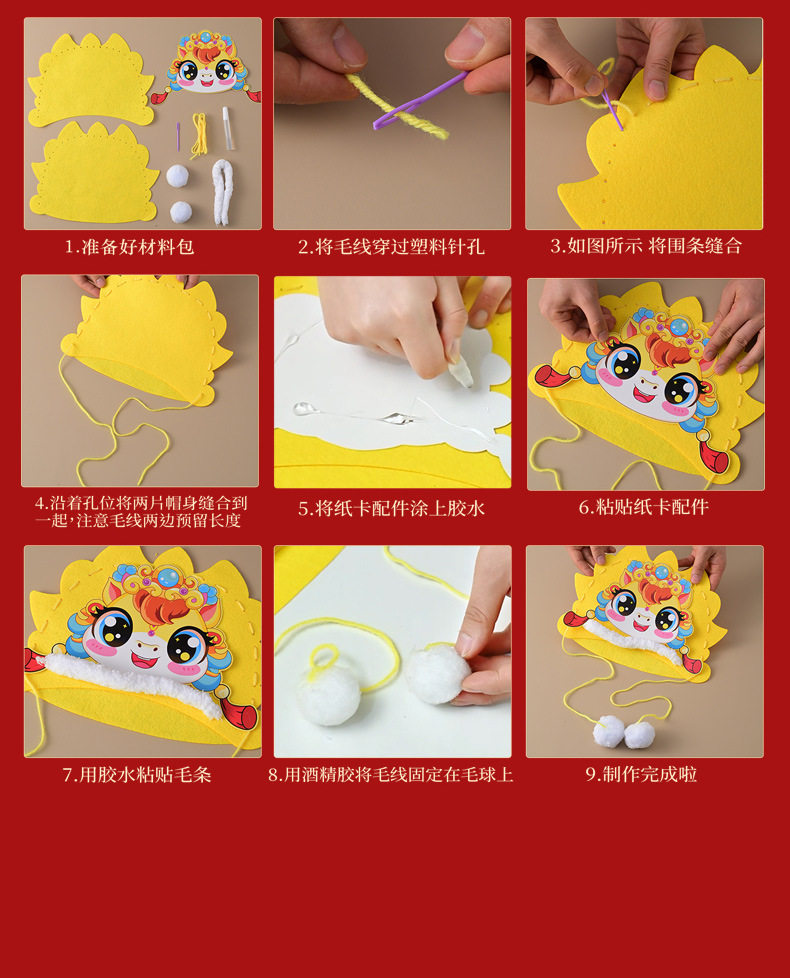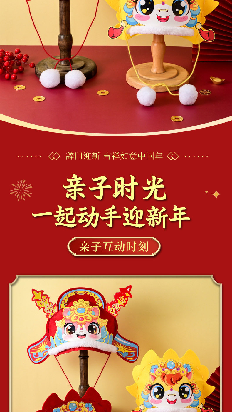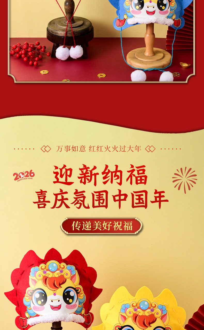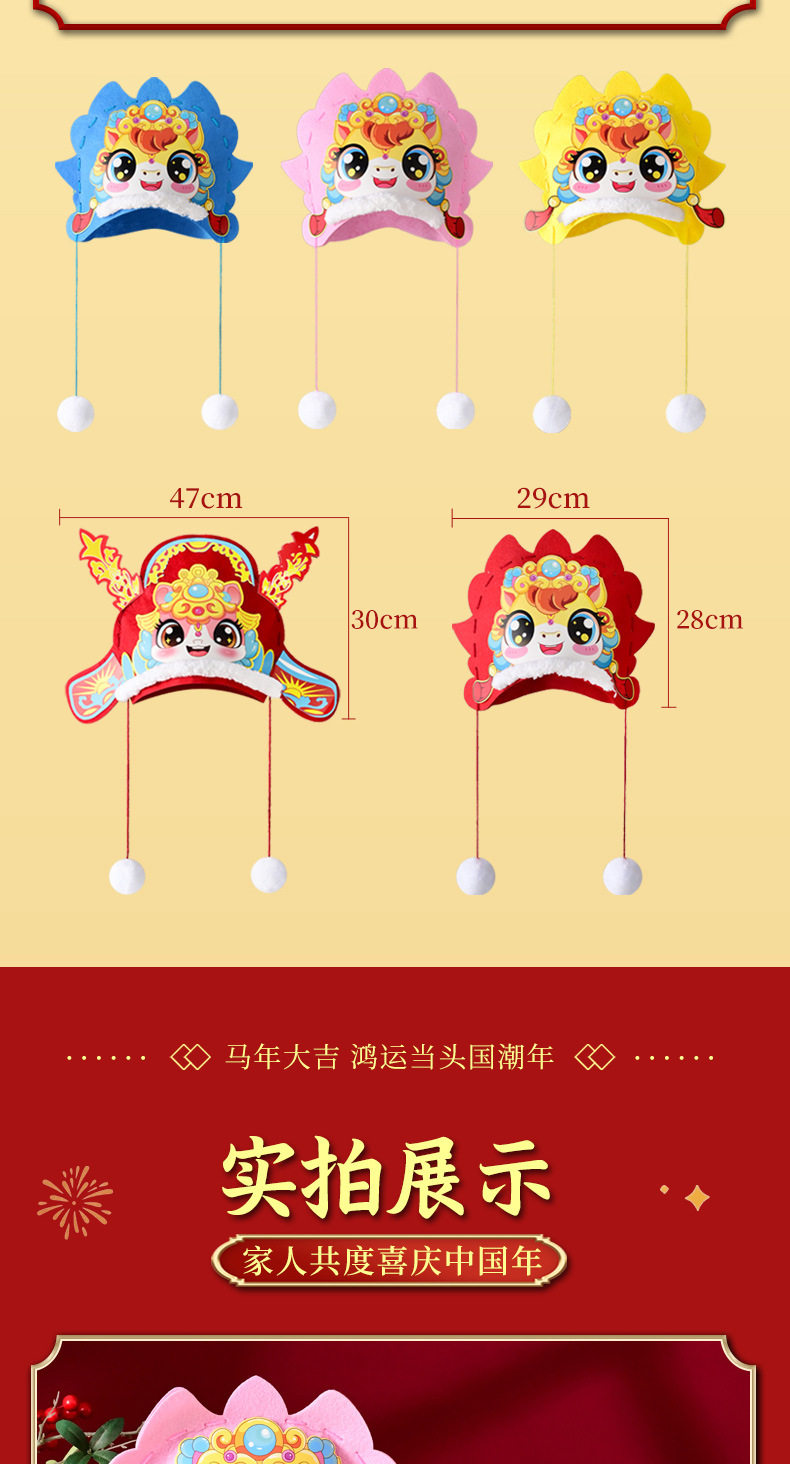2026 New Year Horse Head Hat Horse Year Headwear Props Children's Spring Festival Parent-Child New Year's Day DIY Craft Material Kit