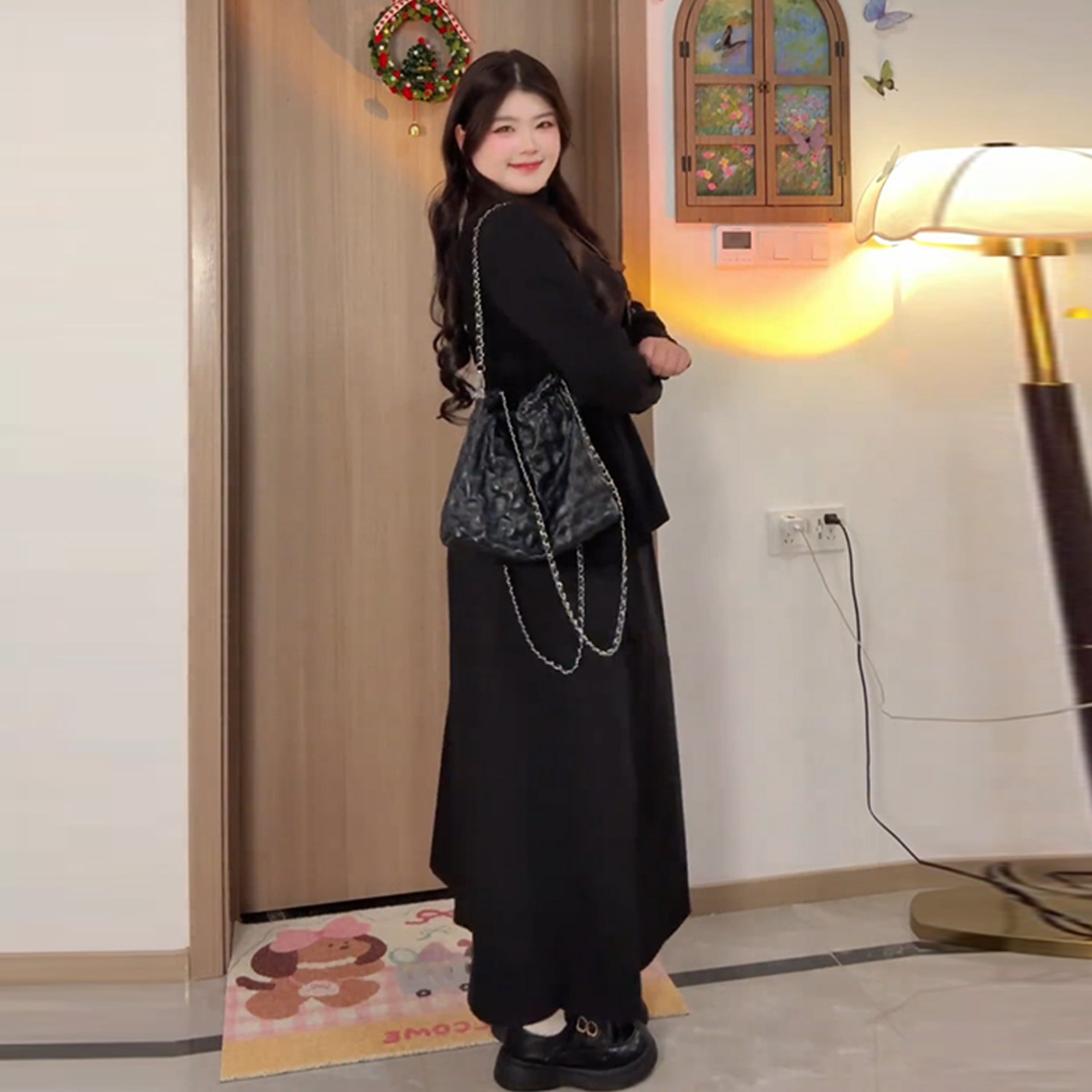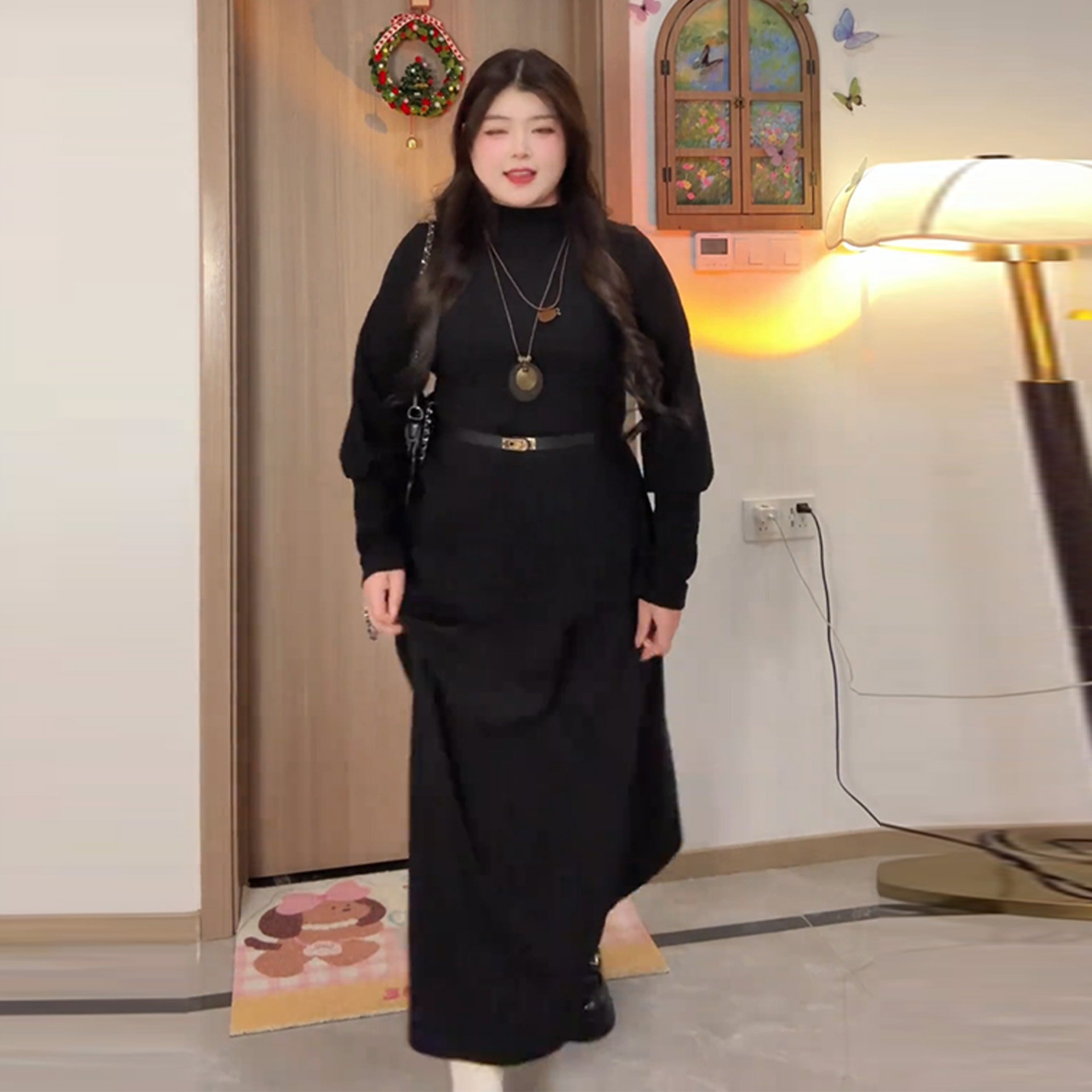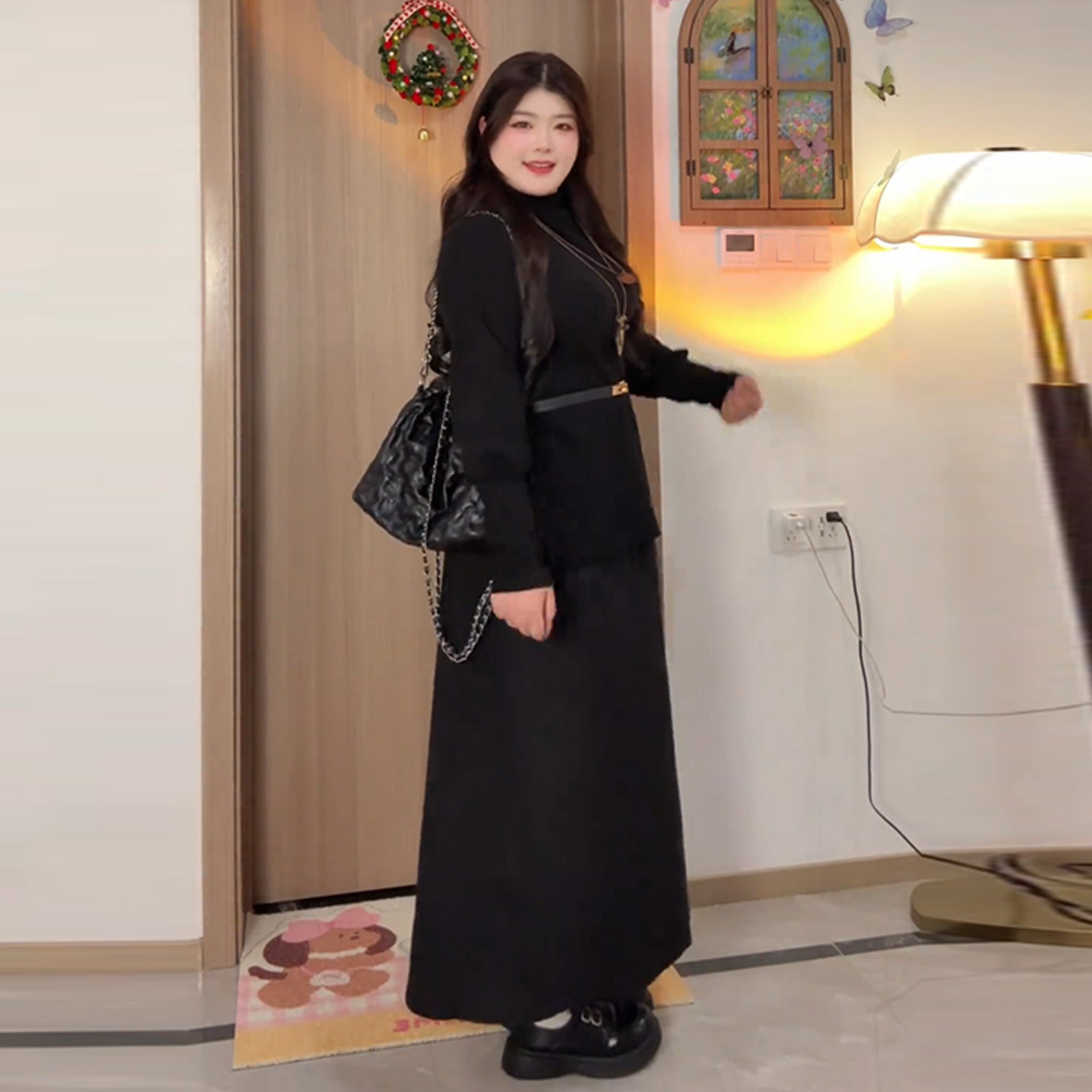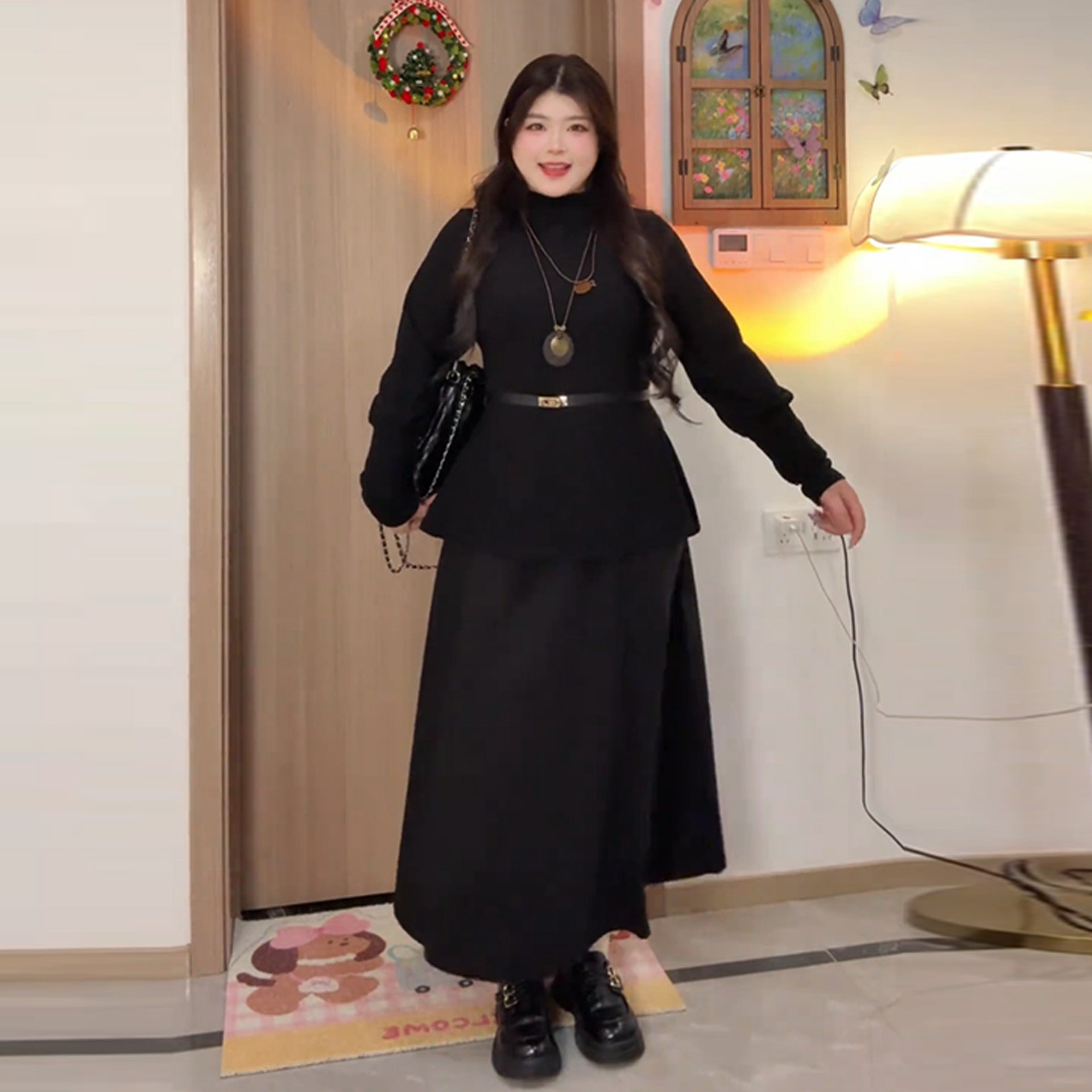 Plus-Size Minimalist Style Waist-Cinching Outfit for Women, Autumn and Winter, Slimming Long-Sleeve French Hepburn Style Two-Piece Set