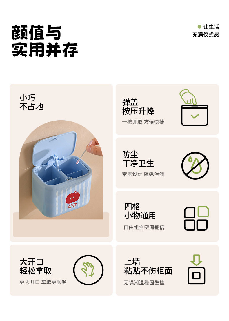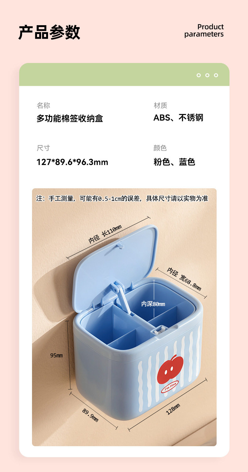 Dopamine cotton swab storage box bathroom wall-mounted cotton pad dental floss storage box dust-proof desktop small box