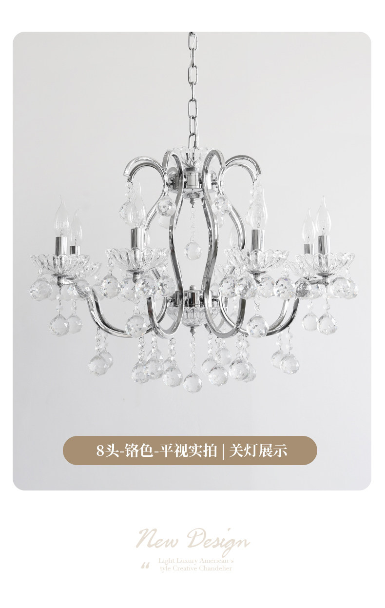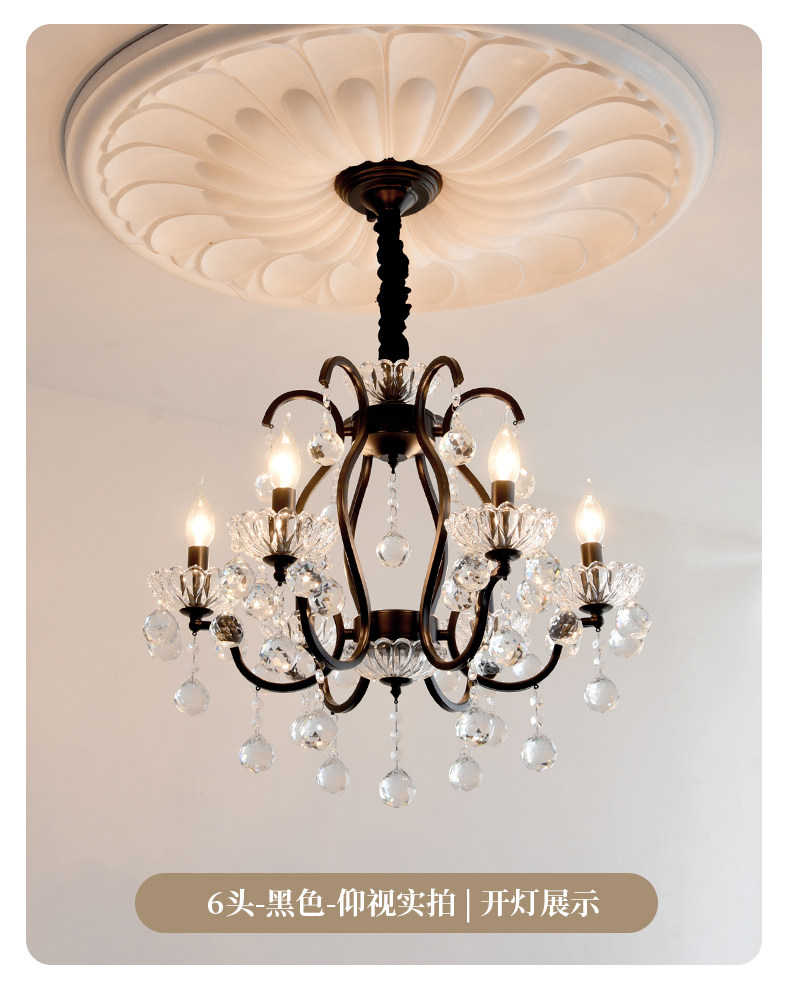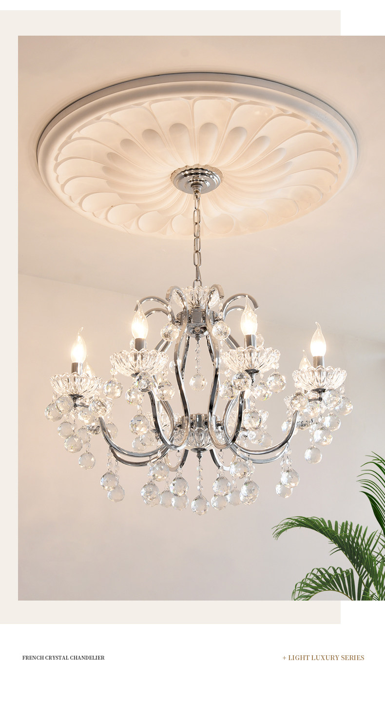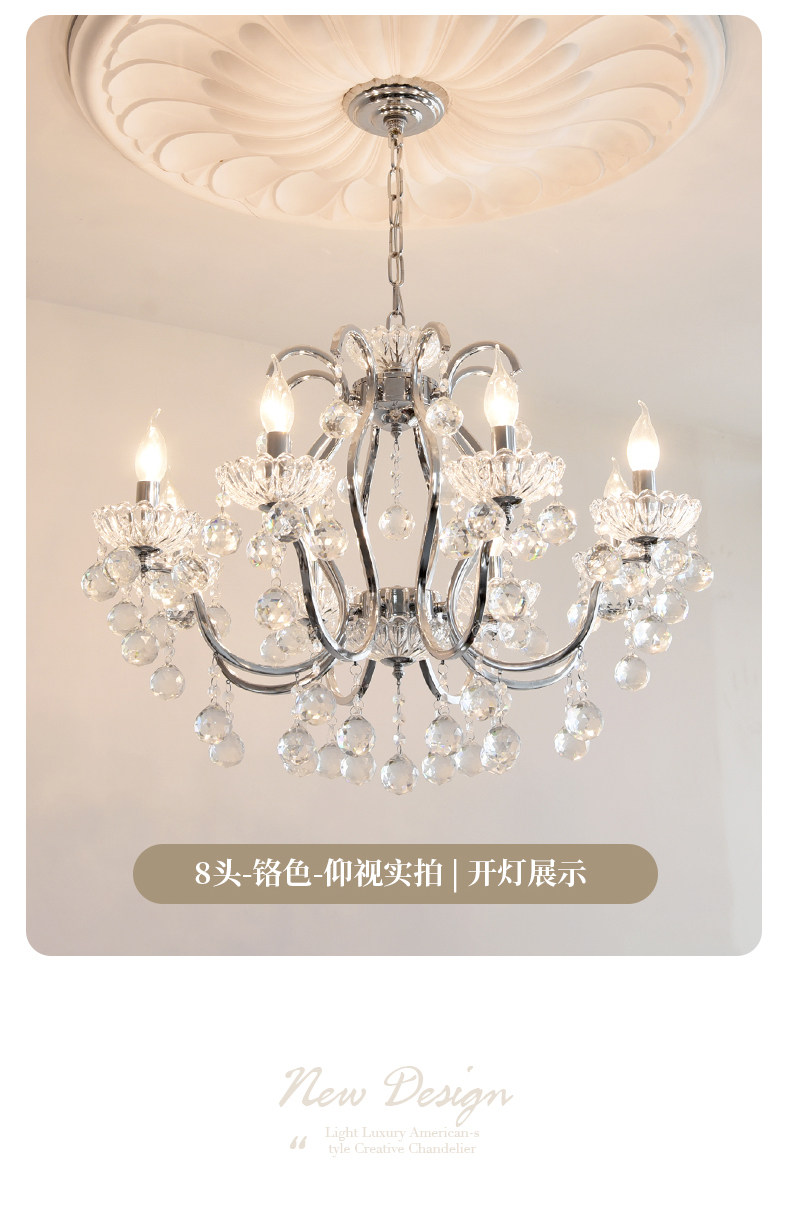 French-Style Light Luxury Crystal Chandelier for Living Room and Dining Room, Candle-Style, Vintage, Simple, Romantic, Luxurious, High-End Bedroom Lighting