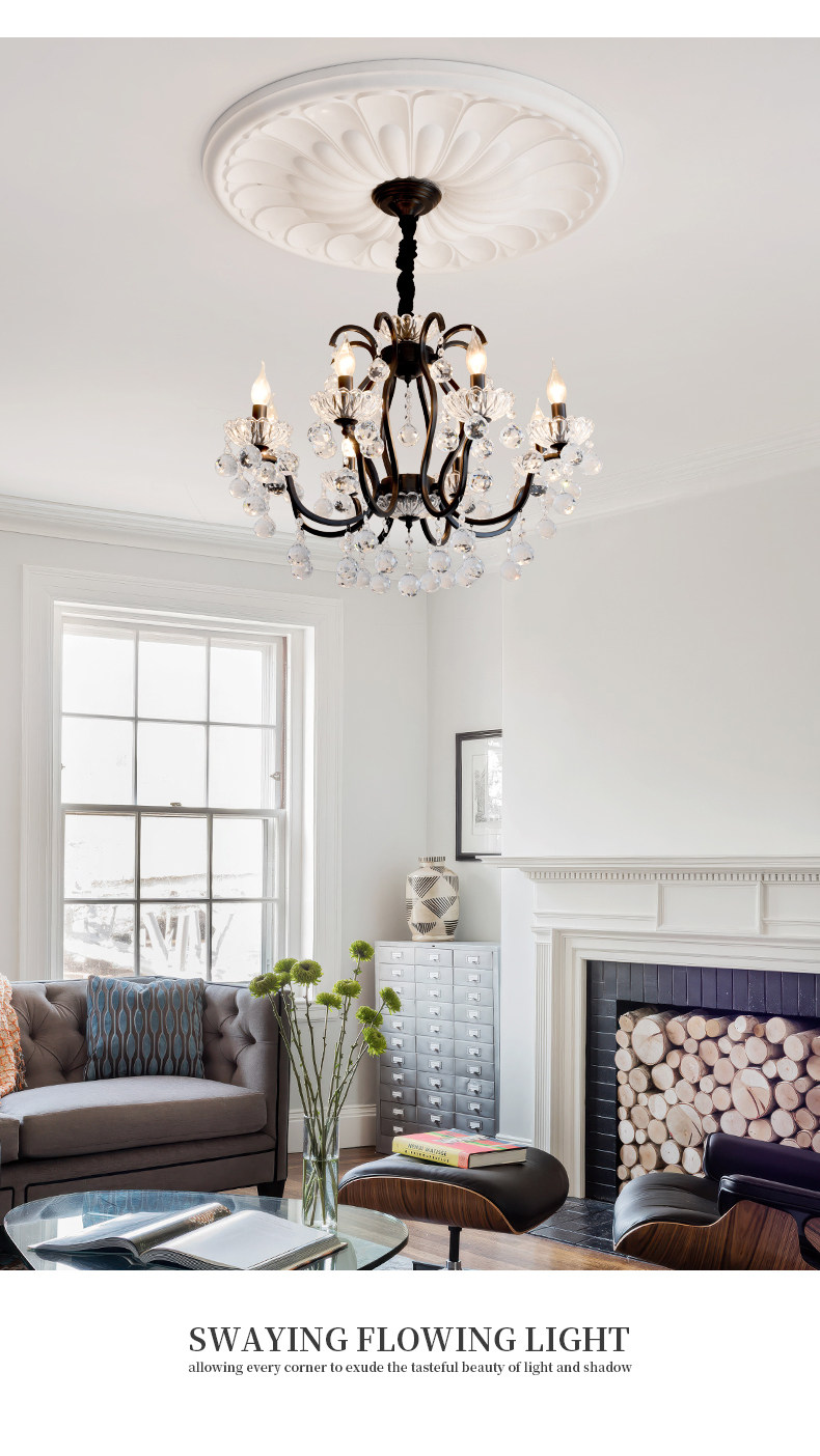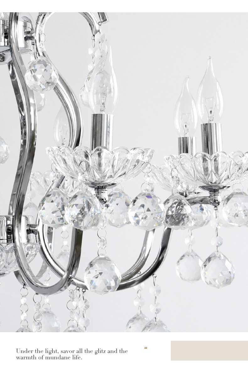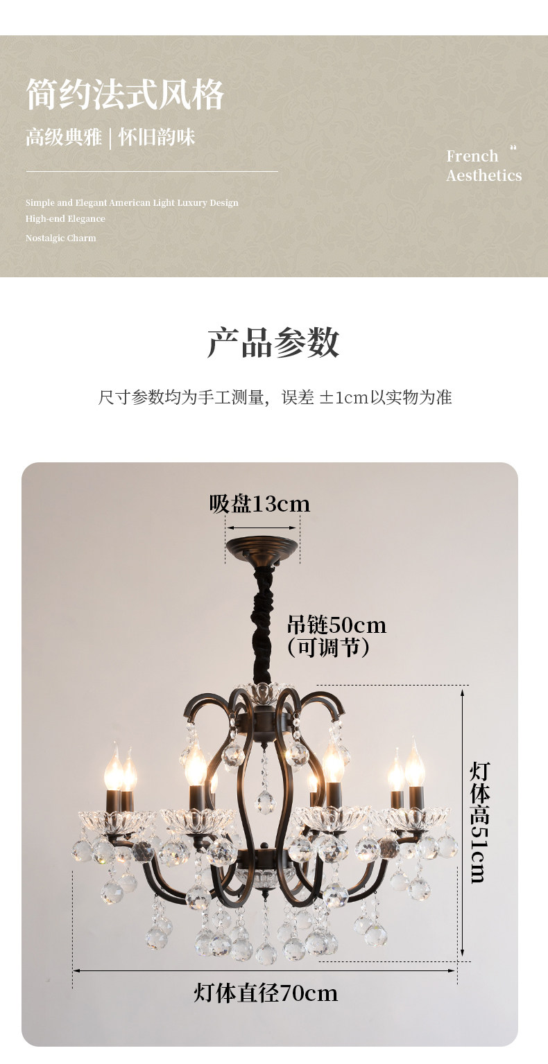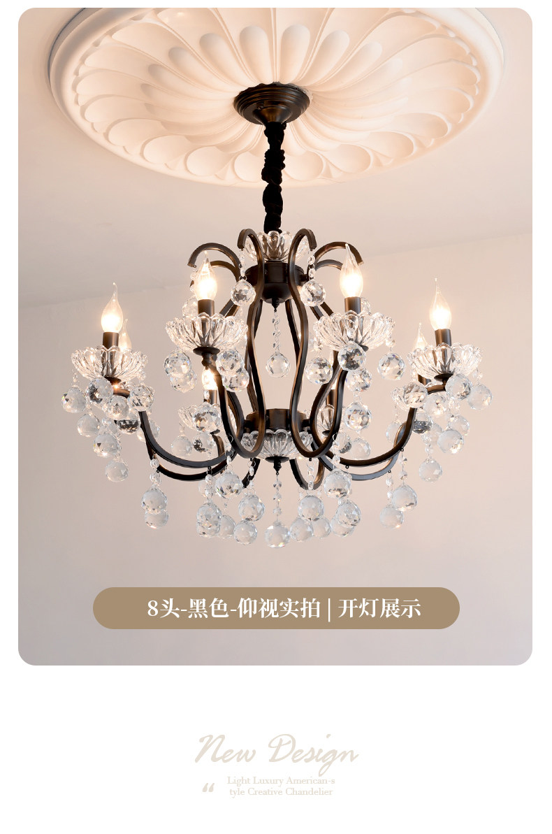 French-Style Light Luxury Crystal Chandelier for Living Room and Dining Room, Candle-Style, Vintage, Simple, Romantic, Luxurious, High-End Bedroom Lighting
