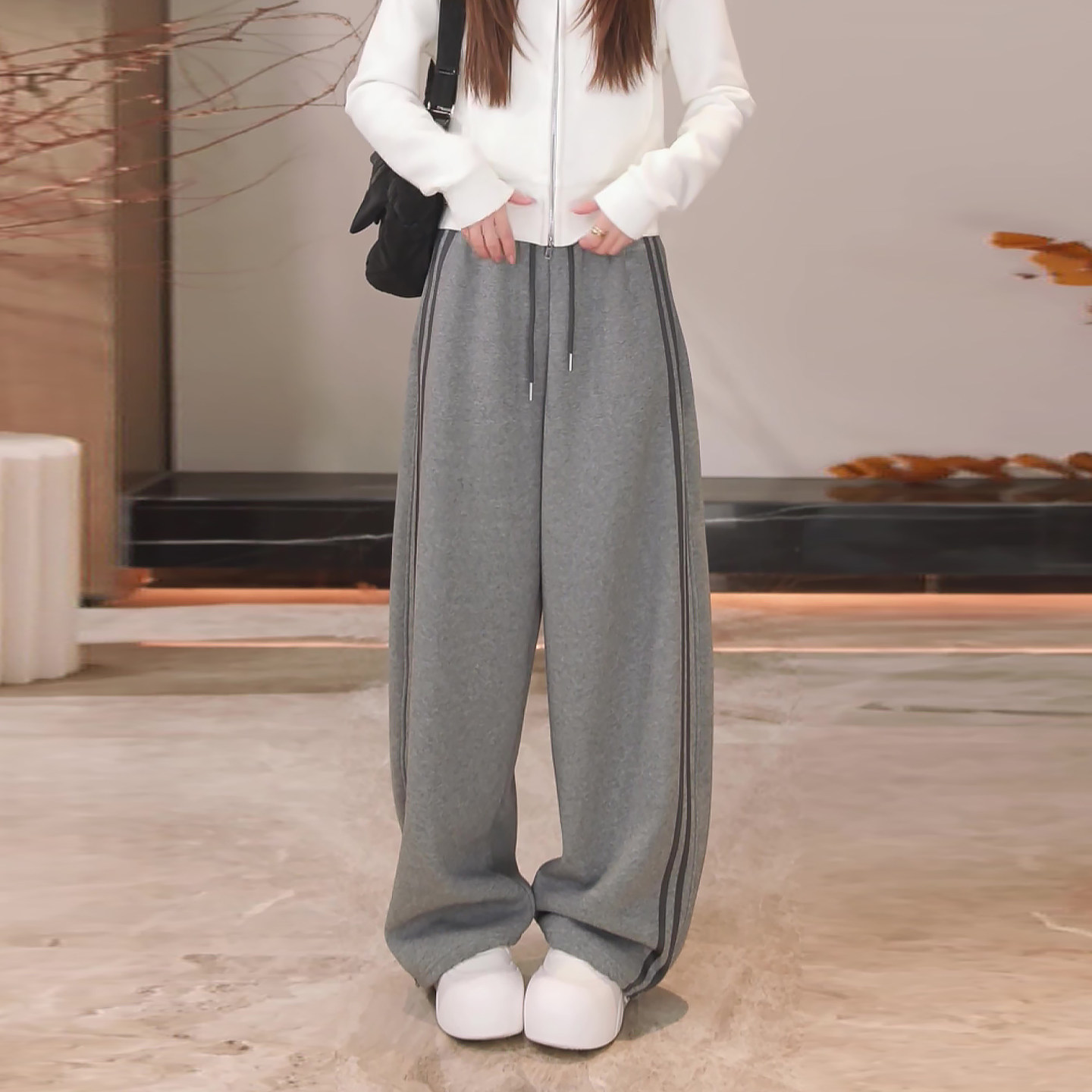 Super Stylish Drawstring Casual Sports Pants for Women, Spring 2026 New Style, Plus Size, Loose Fit, Slimming Wide-Leg Pants