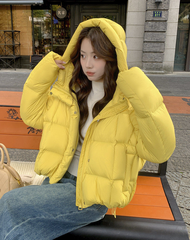 2025 new winter women's puff cloud down cotton coat short coat small turtle back hooded bread coat trendy