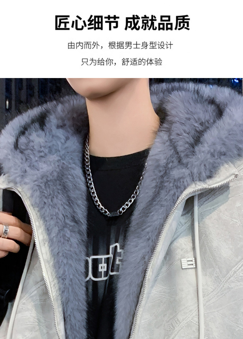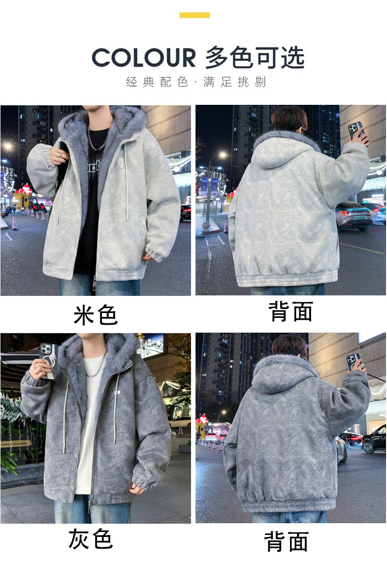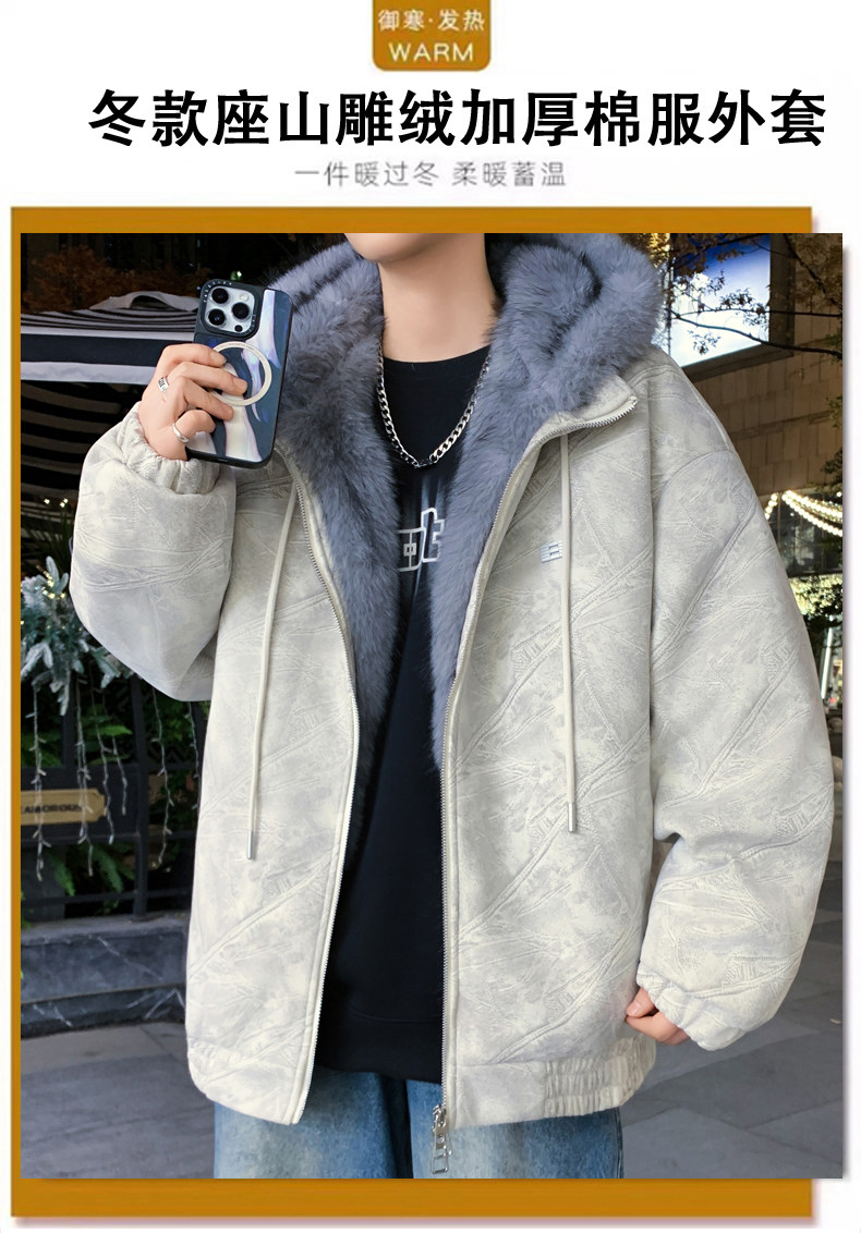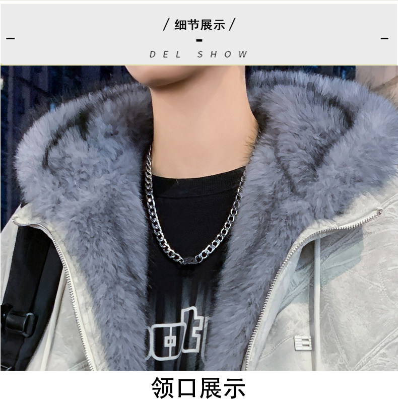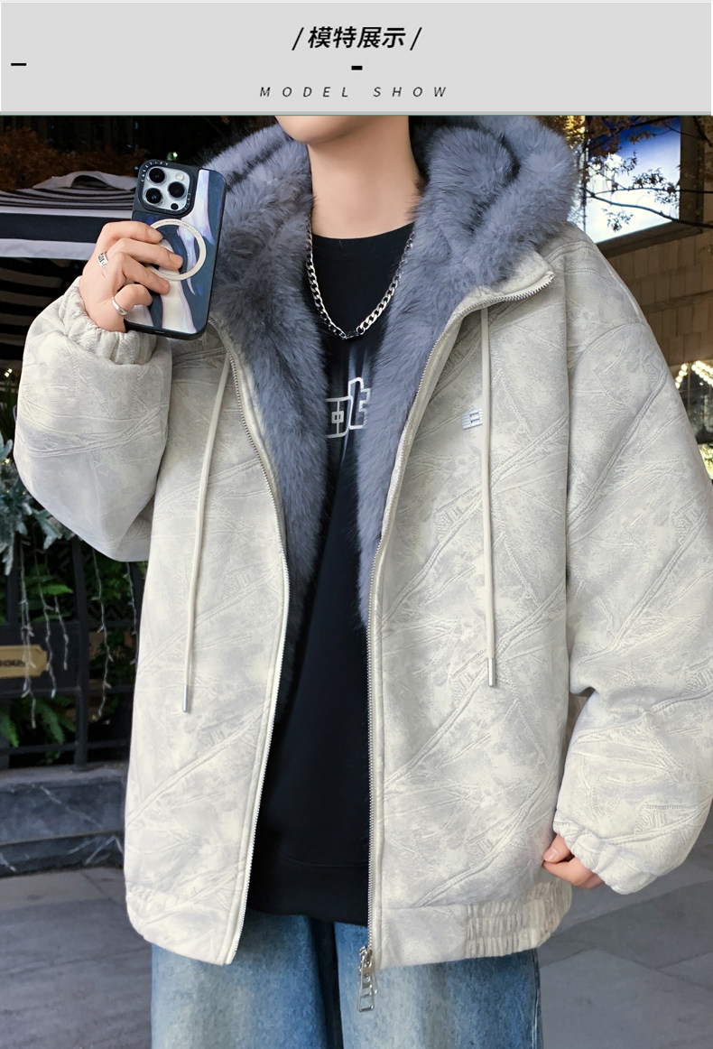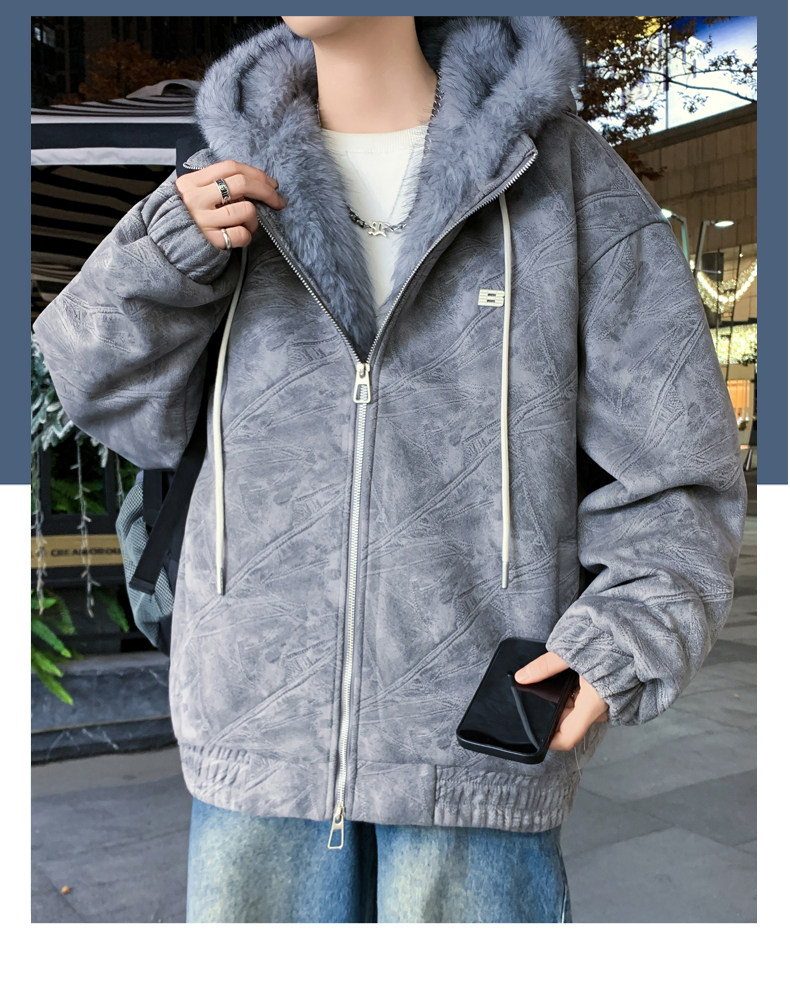 Deerskin fur collar hooded jacket men's winter velvet thickened loose jacket teenagers cold-proof warm jacket