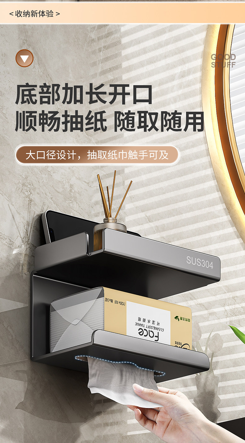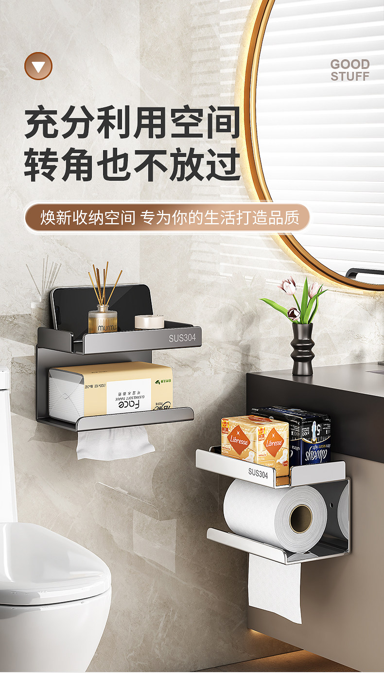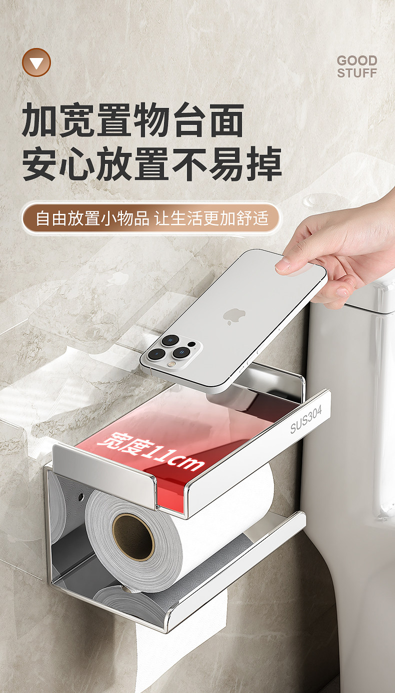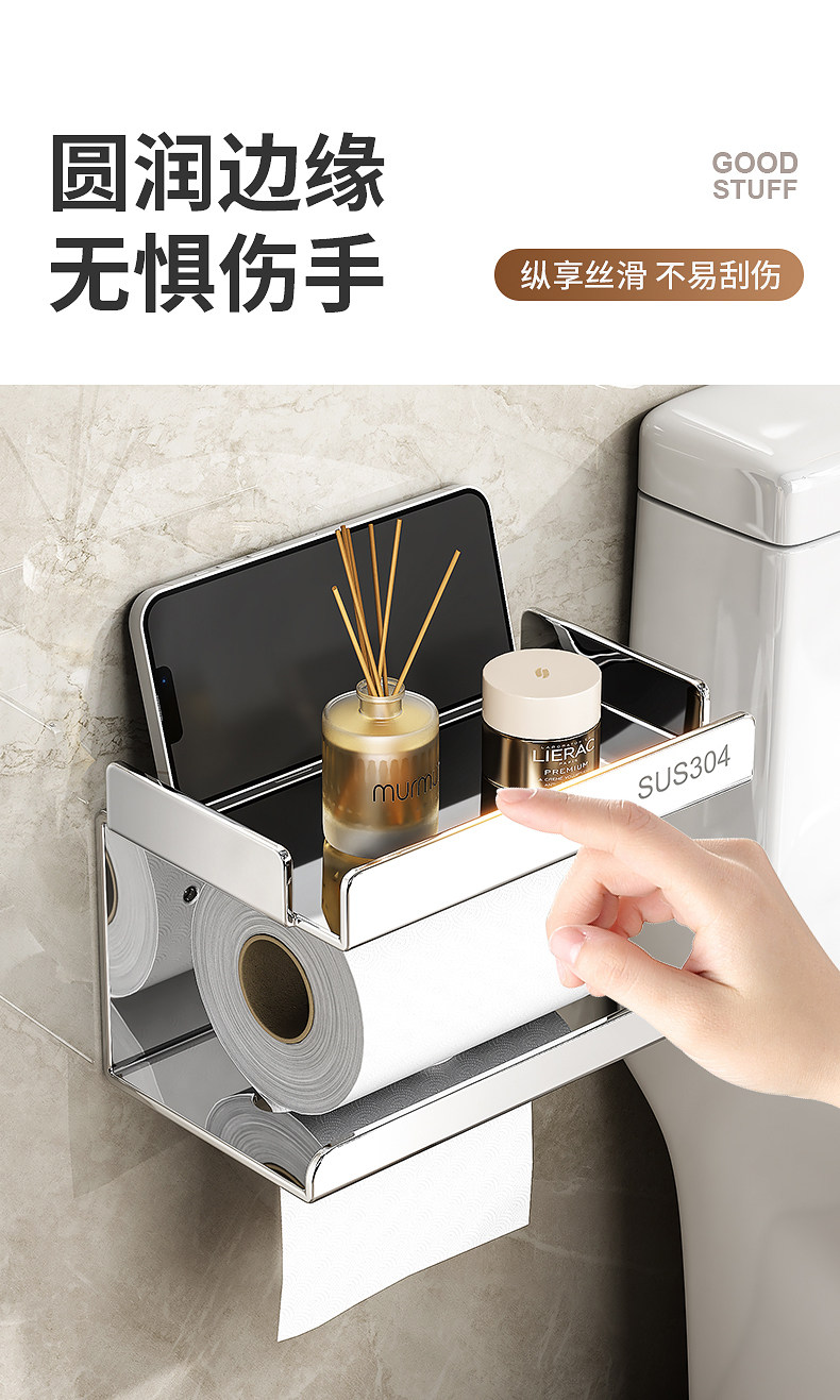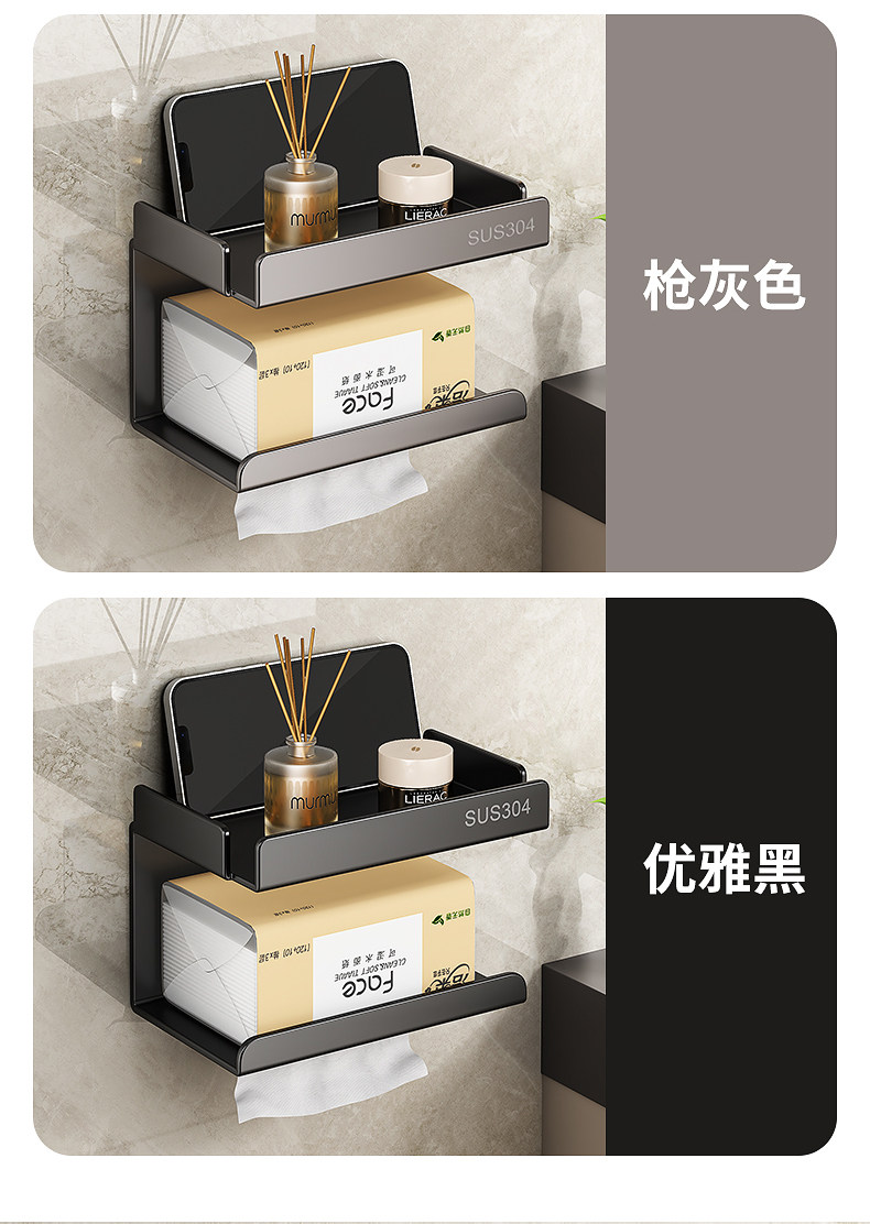 Bathroom stainless steel paper towel holder toilet paper box punch-free wall-mounted toilet paper toilet paper mobile phone storage rack