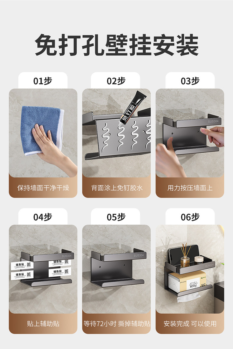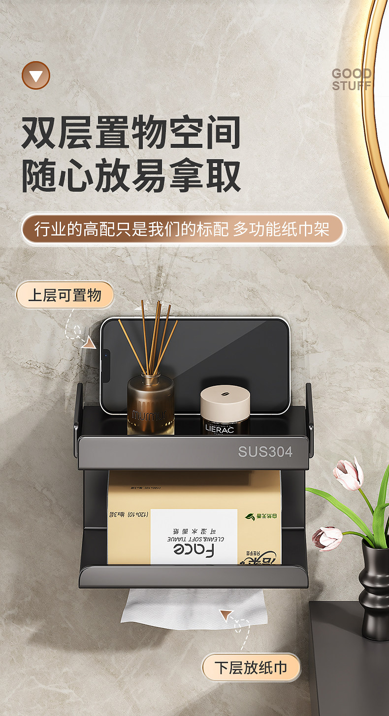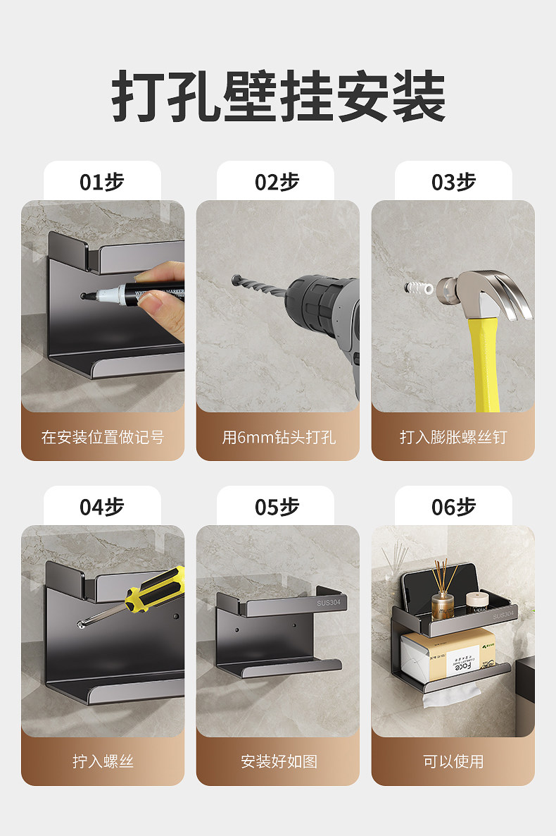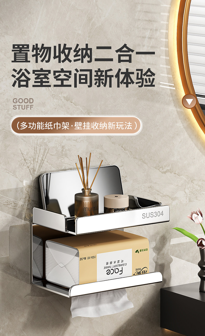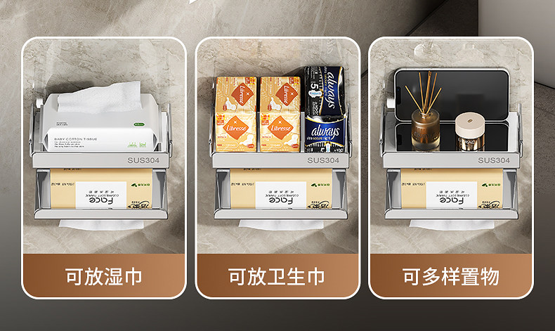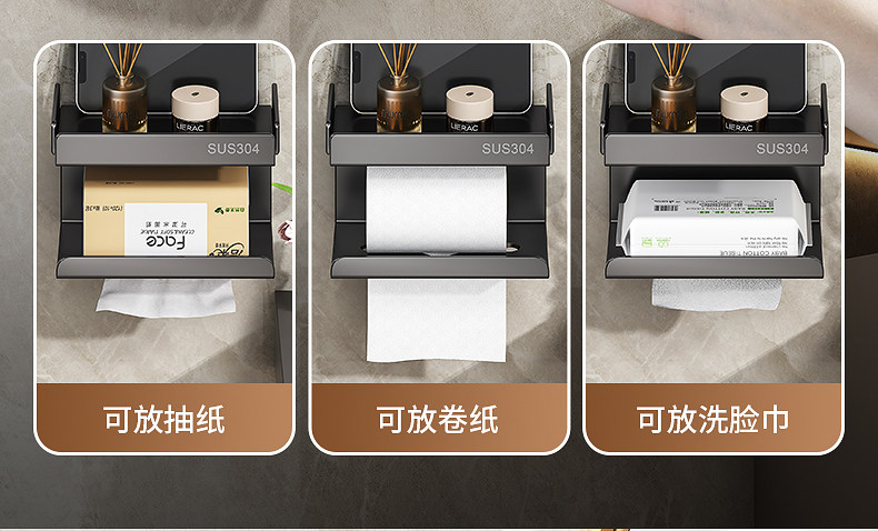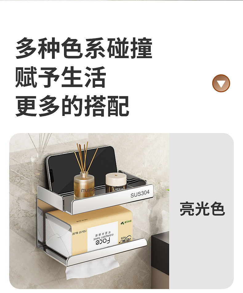 Bathroom stainless steel paper towel holder toilet paper box punch-free wall-mounted toilet paper toilet paper mobile phone storage rack